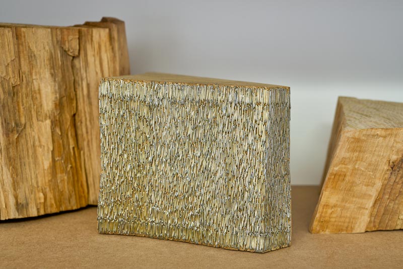 IF: Ao colocar as esculturas no chão, tive, de repente, a impressão de que um grupo de homens tinha estado ali segundos antes e que tinha saído à pressa, deixando para trás aquilo que tinham descoberto… O que parece estar fixo está, afinal, em movimento… Mas quando penso na mobilidade, tal como tu, penso sobretudo na peça Les témoins. Coloquei rodas por baixo dessa escultura porque queria falar da mobilidade das passagens. Essas rodas anunciam não apenas a mobilidade das pessoas, mas também a da própria paisagem, o dinamismo da natureza — mesmo que, no fundo, as testemunhas não sejam os migrantes, mas sim as montanhas. Foram elas que viram passar, e continuam a ver passar hoje, pessoas sem documentos. Claro que já não vêm de Portugal, mas são sempre as mesmas linhas que são atravessadas. Portanto, tens razão: há uma grande mobilidade nesta exposição, mas também no meu trabalho em geral. Mesmo quando as coisas parecem muito determinadas, há sempre algo que deixo acontecer. Coloco os elementos em conjunto, mas há sempre um momento que acontece sem mim. Eu preparo tudo, mas depois… [Isabelle faz um som que sugere o movimento] …aquilo parte. Não quero controlar tudo.
