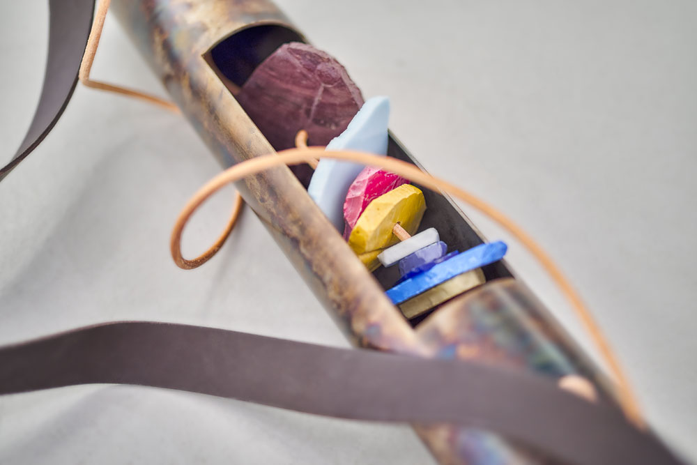 RG: A ideia de deslocação e portabilidade está muito presente na exposição. Penso nas peças Les deracinés (vasculum), inspiradas nos tubos usados por botânicos para transportar amostras, ou Les témois, essas formas monumentais sobre rodas. Podemos ler essa portabilidade como uma metáfora da vida dos migrantes — sempre em movimento, sempre entre dois lugares?
