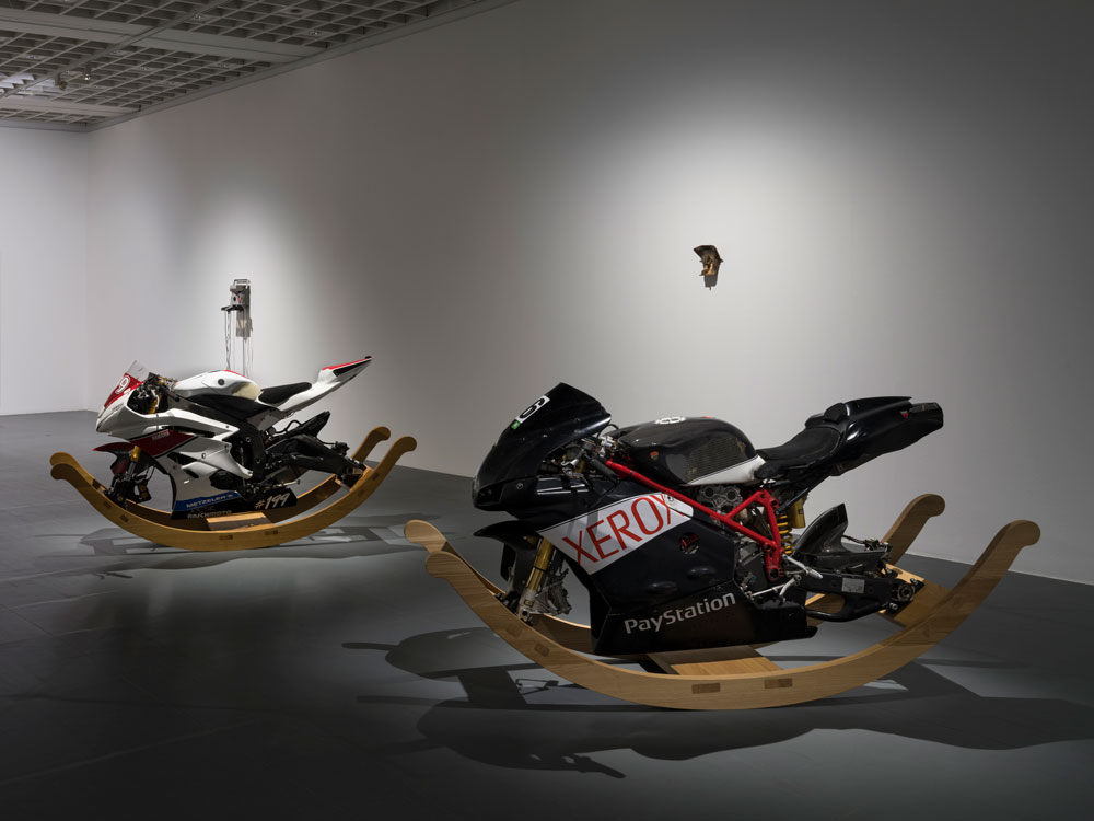AB: Acho que o lado positivo é que, ao contrário da maioria das pinturas, acho que as esculturas frequentemente são mais divertidas de se ver e falam a um número maior de espectadores. Ouço isso com frequência, até as crianças têm uma reação, enquanto talvez não tivessem uma reação se olhassem para uma pintura abstrata. Nesse sentido, não me importo muito com o que mais está a acontecer, desde que eu possa controlar como estou a montar a exposição. E isso é um trabalho árduo por causa dos obstáculos: a maneira como as instituições têm uma ideia de como as coisas devem ser. E é por isso que se passa muito tempo a tentar controlar isso. Mas nunca tive realmente uma experiência má. Quer dizer, às vezes tive uma experiência má com a programação que inventam para entreter as crianças em idade escolar. Inventam histórias tolas, e simplesmente acham que as crianças são idiotas. Mas isso é algo que acontece depois que eu vou embora. Então, vejo isso como uma espécie de forma de instalar, é quase como uma coreografia, tentar pensar no que fica bem, descobrir a iluminação nas primeiras salas, o holofote para realmente destacar os detalhes da obra, quase como em exposições de história da arte, onde muitas vezes se tem esse tipo de iluminação dramática.