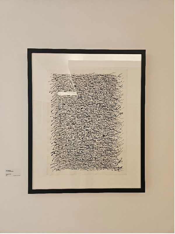 Robert Walser explica: eu quero falar, mas todas as palavras que me ocorrem, não me são suficientes, por isso devo calar-me [2]. Este silencio de Walser é eloquente, aliás, é extremamente profícuo na condução espacial da sua construção do Mikrogramme, uma autêntica travessia/errância do lápis na folha de papel (bleistiftspaziergang), inscrevendo, reinscrevendo e sobrescrevendo, as tessituras palimpsésticas do texto pictórico (o que não anda muito longe da obra em exposição de Miguel D’Alte, explorando as ténues micro-escritas desenhadas na liberdade espacial, tanto prezando a habitual horizontalidade da escrita, como prorrompendo por vertiginosas linhas verticais, proporcionando ao observador a confusão primigénia de uma automatização estética da escrita iterativa). O silêncio do texto palimpséstico é introduzido na obra plástica por intermédio de António Sena, dispondo do desacerto burilado do gesto, para explorar a plasticidade da superfície, numa intensificação da primordial e desenfreada canalização do gesto inábil, que na marcação por extravasamento de inscrições, de linhas, aproveita a aleatoriedade do dripping, numa anulação do logos a favor da caotização da escrita desautomatizada de sentido. Tudo na sua obra nos demonstra a polivalência volitiva do preenchimento, da saturação por incremento de texturas sobre texturas, aproveitando as zonas prévias de demarcação construtiva do plano (a existência de uma espécie de grelha preparatória) para fazer implodir as categoriais depurações estratégicas de uma respeitável formatação plástica. Tudo se dimensiona na aparência hipertrofiada da saturação como se estabiliza na destituição de claridade sígnica.
