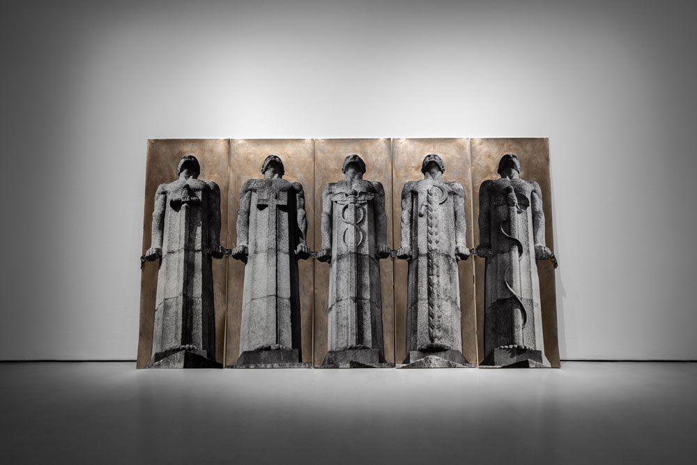 As pedras e as metáforas da dureza. Granito, basalto, jaspe, quartzo, arenito. O trabalho do escultor e o trabalho do martelo. Ao longe os rochedos e um silêncio primevo. A pedra, na sua mudez, fala tanto que se alonga. As pedras e as rochas guardam qualquer segredo da terra. Os monumentos, por sua vez, guardam a história da história. São o registro das coisas de longa duração. Se um dia vires que uma pedra te sorri, irás dizê-lo? Pergunta Guillevic. Na exposição Coisas Vivas [e o Desletramento Pela Pedra], esses interesses se reúnem em um conjunto fotográfico e visual que tem a pedra como elemento principal. Mas a pedra, como eu dizia, não é a pedra enquanto elemento. Da pedra só resta, aqui, a sua temporalidade tão longa, a sua permanência e resistência no tempo, diferente de outros elementos mais voláteis. A exposição na Cristina Guerra nos coloca diante dos monumentos coloniais, talhados em pedra, mas que transcendem a pedra. São os pelouros e o monumento ao esforço colonizador (Porto, 1934) que protagonizam uma exposição acompanhada por um trabalho com as letras e as palavras, bem como por outras imagens coloniais. Sob o olhar de Rennó, a pedra é ao mesmo tempo matéria prima e artefacto histórico, memória e história, letramento e desletramento. Isso porque a memória tem sempre uma tendência. A memória marca sempre a forma e o olhar de quem relembra. É por isso que Walter Benjamin dizia que era preciso escovar a história a contra-pelo - porque a história contada é a história dos vencedores - não a história dos vencidos. No caso da memória colonial, expressa nesses monumentos, a voz que se ouve é a voz de um só lado. Essa falta de dialética ou de sentido de contradição é também o que faz Walter Benjamin afirmar que todo o monumento histórico é também um monumento de Barbárie. A contradição fundamental do sistema económico é visível nas suas formas estéticas precisamente por aquilo que oculta. Não há monumento glorioso que não seja também, de alguma forma, um monumento de terror. O Pelouro, nesse sentido, traz consigo essa inscrição de oculta contradição, da mesma forma que o monumento do esforço colonizador. Que vozes jazem sob as pedras monumentais? De maneira pragmática, o pelourinho, essa peça urbana e histórica, consiste em uma torre pequena colocada em uma aldeia ou uma vila, que costumava cumprir a função de punir e castigar. O Pelourinho marca a passagem de um sistema económico feudal para o capitalismo, tendo assim as características próprias desse hibridismo - foi concedido a proprietários, bispos e donos de terras para punir os seus trabalhadores. Em Portugal, há uma série de pelouros; na Bahia, em Salvador, Pelourinho é o mais importante bairro da cidade. É um monumento muito presente no território brasileiro e profundamente relacionado ao período escravocrata. Trata-se de um monumento de expressão e de prática de poder, característico de um período económico híbrido e que expressa também a relação inextricável entre Brasil e Portugal, entre brancos e negros, entre crime e castigo, entre a casa grande e a senzala. O trabalho de Rennó, para observá-los, é fotográfico e plástico, literário, poético e visual. Isso porque os pelouros, em primeiro lugar, não estão só: inserem-se em um conjunto de obras que lhe oferecem guarida e companhia. Acompanhados e variados, no seu estilo e nos seus formatos, os Pelouros de Rennó são potencializados pela sua fotografia e seu trabalho de iluminação. Esse trabalho concede aos pelouros e ao espaço qualquer carácter fantasmagórico, aproximando essas figuras da nossa percepção por meio de uma iluminação obscura. Como uma luz que bruxuleia parca na memória, os objetos começam a tremer de forma a fazer-nos duvidar da sua própria consistência, da sua própria identidade, como se, loucos, falassem e fossem falados — e o que falassem também guardasse aquilo que calaram. Em outra peça emblemática, O Gabinete do Crime, Rennó une as figuras do monumento ao esforço colonizador, que estão no Porto, por meio de um feixe de aço e uma folha de ouro. As figuras, com mais de 2 metros de altura, no monumento original, no Porto, formam um círculo. No trabalho de Rennó, estão dispostos horizontalmente em uma fotografia. Em junho de 2018, as mãos dessas figuras foram pintadas de vermelho por uma ação civil que visava jogar luz - ou tinta - ao carácter sanguinário desse esforço. Rennó raptou essas figuras por meio da fotografia e deu-lhes nova forma e nova composição: atados entre si, seus peitos, de espada e médica serpente, dirigem-se aos céus e representam, não a glória do esforço colonizador, mas o seu terror e o seu crime. Outras obras compõe a exposição, que neste texto não vou exaurir. A artista revela em outra parte a sua proximidade com a literatura, o que está presente também no título da exposição. Os monumentos como coisas vivas; chamando-nos como tempo e como memória, mas sobretudo como uma história — e não outra. Que palavra esconde outra que se silencia mais atrás desta ainda? Há um poema de João Cabral de Melo Neto a que Rennó refere: A Educação pela Pedra. Poeta brasileiro que retratou, como ninguém, a vida sertaneja, empobrecida, sem água nem comida, João Cabral diz-nos, no seu poema, tanta coisa pela pedra. A pedra é a mudez primeva, a metáfora da dureza, o trabalho mais duro do artesão. A pedra nos ensina com o silêncio, chama-nos a frequentá-la mesmo que não nos diga nada. É resistente, não flui, não é maleável. É exemplo das coisas duradoura e persistentes, difíceis de romper. Tanta coisa construímos com pedra. Tanta coisa jaz, entretanto, por debaixo dela.