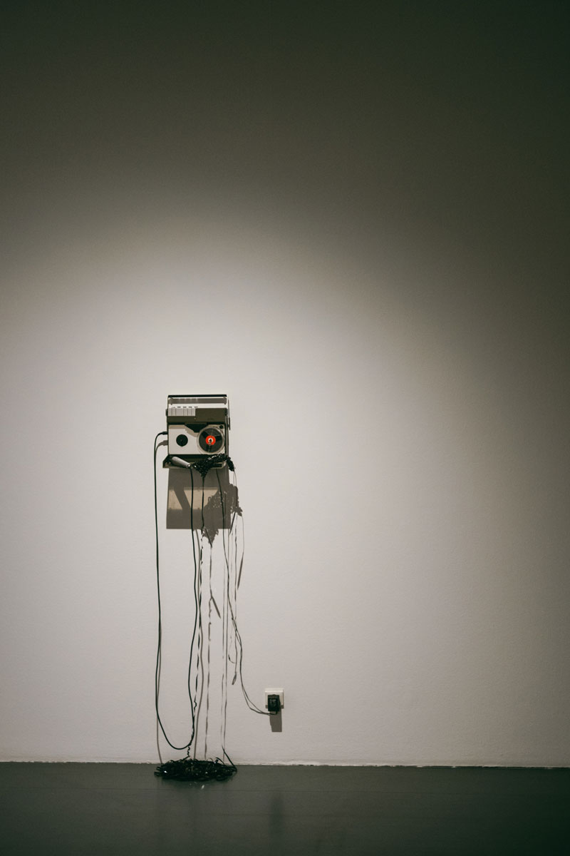É o caso, por exemplo, da referência à cultura da motocicleta. Vívida no imaginário coletivo, ao mesmo tempo como máquina e como perigo, como virilidade e como corporeidade híbrida, a sua estética é atualizada na exposição de forma que a vida e a morte, o ridículo e o poderoso, a cultura de massa e o seu deslocamento se coagulem numa familiar estranheza. É esse o grande poder do cubo branco, afinal: o de nos fazer estranhar o familiar. E nesse sentido, o trabalho de Bircken é expressivo, porque ao produzir obras que envenenam o nosso olhar domesticado, possibilita-nos estranhar o presente. Nas esculturas avessamente robóticas, vemos precisamente a força da configuração e da desconfiguração atearem-se juntas. Cabos que se misturam às peças artesanais e depois outros, de outro tipo ainda, geram não só novas e estranhas composições, como um certo sentido de contemporâneo, mas não naquilo que se apresenta aos nossos olhos no uso diário das tecnologias, ou seja, no seu carácter aparentemente asséptico; mas precisamente naquilo de que elas são feitas: conexões materiais por meio de fios. Essas composições convocam-nos um estranho sentido revolucionário. Quando as estruturas materiais dos nossos meios de comunicação aparecem, na sua desconfortante e caótica nudez, salta aos olhos um sentido de desconfiguração, não das letras, mas do próprio alfabeto. Como uma espécie de revolução do entendimento. Porque a escolha de Bircken não é pela tecnologia em si, e sim pelo que está atrás, na formação da tecnologia — a sua maquinaria.