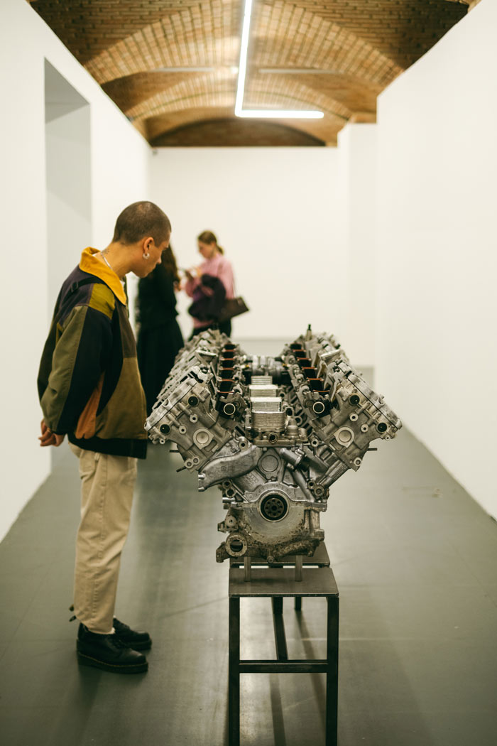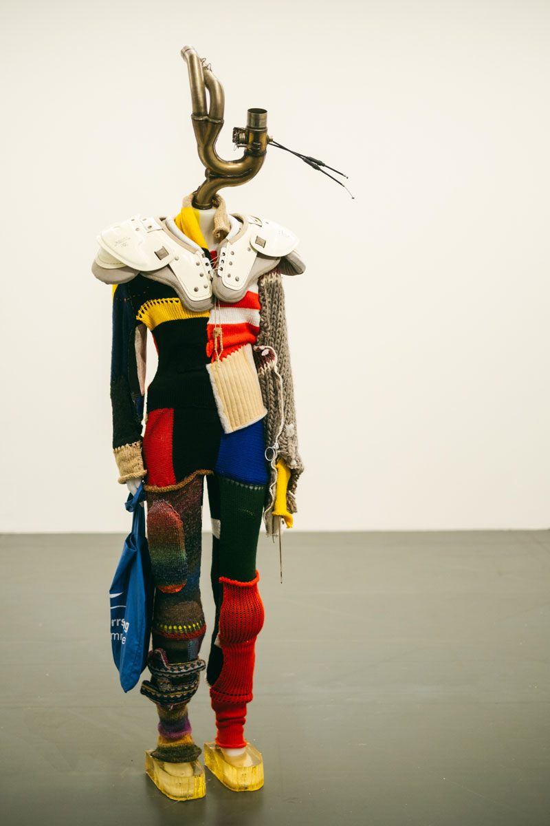 Alguns filósofos ressentem-se da perda da força e do sentido narrativo em um tempo histórico marcado pelo avassalamento de imagens contínuas em vetores descontínuos. Carente de sentido ou orientação, a própria experiência temporal do sujeito contemporâneo se desconfigura. A narrativa, substituída por uma espécie de assemblage existencial, perde a sua força de coesão e sentido de início, meio e final. Essa é, por exemplo, a crítica do filósofo germano-coreano Byung-Chul Han. Pensador de olhar afiado ao nosso tempo tão avassalador, Han destaca o papel que a tecnologia e a aceleração dela advinda cumprem na desestabilização do espírito humano, encontrado, talvez verdadeiramente, somente nas lentas experiências junto à terra, ao jardim e à natureza. Mas também outros diriam que é só dessa forma, caótica e desorganizada, que a história pode ser de facto apreendida. A história para Walter Benjamin, por exemplo, assemelha-se muito mais a uma espécie de vento que vem de uma floresta — uma imagem, uma rememoração que aparece como relâmpago à nossa frente fora de horas — do que à história contada por uma narrativa linear. Nesse sentido, a assemblage, o estranho enredamento de peças, a pluralidade de sentidos e um ir e voltar constante seria muito mais expressivo de um momento relevante do que a passagem temporal orientada. Principalmente em momentos de perigo, diz Benjamin, a memória e a história nos assaltam de forma a conectar subtil ou radicalmente pontos temporais aparentemente dispersos. Nesse ponto, é sobretudo a alegoria que se destaca como expressão e leitura de um mundo em decadência — aquilo que permite revelar as contradições e as feridas da história. Ao contrário do símbolo, que tende para a eternidade, a alegoria tende para o presente histórico, estendendo-se do presente para o passado como um corpo esticado. Dessa forma, a narrativa do presente como continuum é desconstruída — e se revela muito mais como um percalço, um descalabro, uma desestrutura. Essa forma estética-existencial traz consigo não a potência de um eventual sentido, mas a força que advém da montagem, da alegoria, da desconstrução, da dúvida e da sugestão. Sem dúvida, a verdade tem perdido o seu lugar estabilizante, unificador e definidor, processo já iniciado com a morte de Deus assinalada por Nietzsche, mas consolidado definitivamente no nosso século. Ela foi substituída pela sua maquinaria interna: um jogo de forças e potências constantes, em que verdade e mentira, força e fraqueza, interior e exterior, passado, presente e futuro se batalham e se cruzam numa panaceia de sentidos e vetores que, no mundo da arte, eventualmente encontram formas adequadas de serem expressas. É o caso de Alexandra Bircken, que se destaca no cenário artístico contemporâneo e apresenta a exposição SomaSemaSoma na Culturgest, com curadoria de Bruno Marchand e Selma Meuli. Depois de ter passado pela Kunsthaus Biel / Centre d’Art Bienne, na Suíça, SomaSemaSoma fica em Lisboa até fevereiro de 2026. Em companhia de biarritzzz e Carlos Nogueira, também em exposição na Culturgest este mês, Bircken mostra um trabalho denso, robótico e original, marcado pela sua trajetória no mundo do têxtil e da moda, mas já imerso na forma escultórica e na composição de grandes e médias estruturas. Bircken estudou Fashion Design na Central Saint Martins em Londres e, durante algum tempo, desenvolveu coleções de roupas experimentais. No fim dos anos 1990, começou a distanciar se do circuito comercial e a explorar o têxtil e o vestuário como linguagem escultórica. A questão aqui, pelo menos em início de conversa, é a costura, a reconfiguração das partes, a extensão do corpo por meio dos materiais e, posteriormente, a introdução de objetos mecânicos e industriais (capacetes, motores, estruturas metálicas) junto dos materiais têxteis e do espaço expositivo.