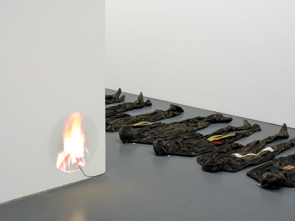 Ainda além disso, a exposição tem um tom sarcástico, quase tragicômico. Os corpos carbonizados, em vestes de proteção para motocicleta, dispostos enfileirados de frente a uma parede branca, aparecem não de forma dramática — não há aqui excesso de emoção – mas como facto ou evento; dispostos como motocicletas ou como cavalos de brincar; como parte de um todo que rasga o globo ocular da visão doméstica das coisas. Tudo tem peso e, ao mesmo tempo, ácida leveza. Talvez este seja o grande feito de Bircken, aquilo que a torna uma artista tão relevante no cenário contemporâneo europeu. Tudo é leve — mas tudo é bastante sério. E nesse equilíbrio, fabrica-se, como se fabricam têxteis e textos, a produção de Unheimlich, o estranho familiar. A questão aqui são proximidades e afastamentos; aquilo que está no passado e é revisto no presente; o que está acolá e, pela força de uma fronteira ou de uma linha, passa para cá. A questão é a costura das coisas. E as linhas. No final, cabe-nos sobretudo observar a força das alegorias advindas dessa composição.