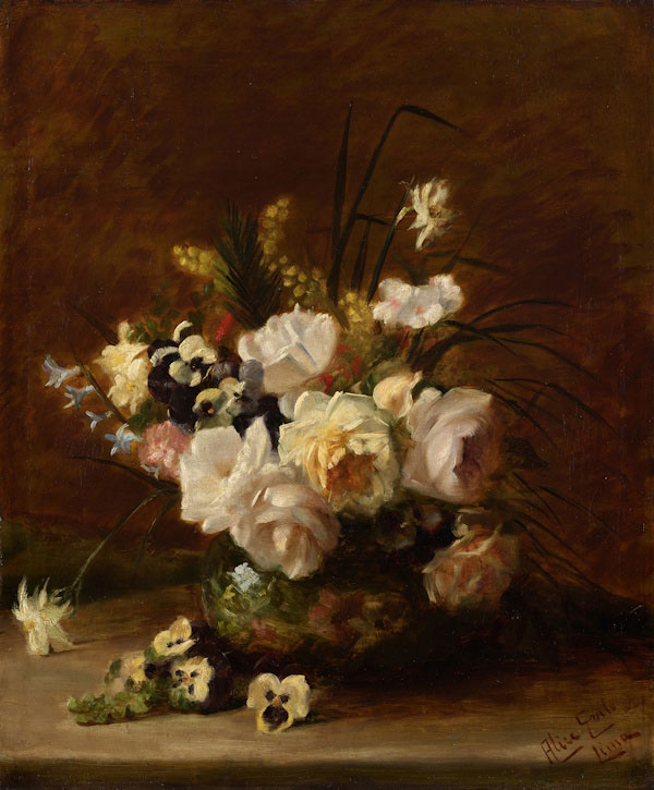Pois estas imagens são terrivelmente, irrevogavelmente sensuais. Os figos abertos, as pétalas das flores, as romãs a desabrochar, tudo aqui convida à carícia, tudo suscita o desejo. Certamente que estes frutos são simbólicos: a romã símbolo de união e de concórdia; a maçã de amizade; a pêra de doçura; a rosa de beleza; o pêssego de amor; o figo de sexualidade. Mas, para além destas alegorias, é a forma como a artista as observa e as trata que nos comove. Nem distância, nem reserva: para o conseguir, é necessário abandonar toda a frieza superficial para atingir verdades mais profundas, sejam elas melancólicas ou sensuais, é preciso expor-se, tornar-se vulnerável, entregar-se aqui como em nenhum outro lugar. Essa sensualidade é uma lufada de ar fresco aqui, pois, em outras partes deste museu, que por outro lado é de grande qualidade, ela parece ter sido banida (como aliás em muitos outros em Portugal). À parte uma medíocre e púdica tela de José Malhoa, A Ilha dos Amores (1908), a única pintura um pouco sensual de todo o museu, salvo erro, é Céfalo e Prócris de Marques de Oliveira (1879), a única que ousa mostrar um seio feminino (mas a legenda faz questão de salientar que este tipo de tema – mitológico – é muito raro em Portugal…). As galerias aqui contêm apenas paisagens, retratos e cenas de género (com alguns nus masculinos de Soares dos Reis), e, durante a minha visita anterior, no final de 2025, a anatomia feminina era exibida apenas sob a forma de desenhos anatómicos do médico Alberto Sousa. Para compensar esta secura é, pois, necessário apressar-se, antes de 18 de Maio, ir até ao fundo do museu e passear languidamente diante das paredes vermelhas desta exposição única…