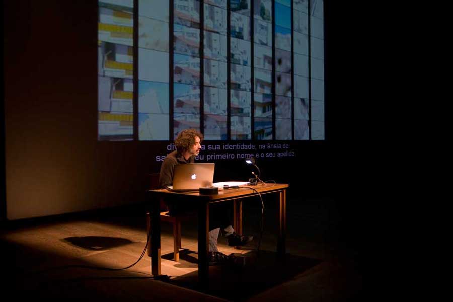 O AGORA QUE É LÁRITA XAVIER MONTEIRO2014-02-25É de longe, de muito longe que acompanhamos os nublosos conflitos do Médio Oriente. De longe, tão longe que o conhecimento mediado pelas imagens televisivas e os vídeos das redes sociais surgem casa dentro em situação quase ficcionada, quase inacessível. Como se os média perdessem precisamente essa justeza que é estar no meio. Entre a circunstância e o espetador. É de perto que o artista libanês Rabih Mroué acompanha a realidade da vizinha Síria. Mas é sobre a utilização, a narrativa e o poder dos instrumentos virtuais de comunicação que decide falar. A conferência-performance Pixelated Revolution [1] que apresentou em Serralves, exibe ao mesmo tempo que pensa os registos de acontecimentos em curso: a revolução Síria, os sírios, a morte. “Os Sírios estão a filmar a própria morte” Pixelated Revolution é uma palestra não-académica que estreou no P.S. 122 em Nova Iorque em 2012 e passou como projeto de instalação pela dOCUMENTA (13) de Kassel. Em Portugal, Mroué vem apresentando os seus trabalhos individuais e em dupla com Lina Saneh, desde Biokhraphia (2002), Who’s afraid of representation (2004), How Nancy wished that everything was an April Fool’s joke (2007), tendo também colaborado, em Yesterday’s Man (2007) [2], com Tiago Rodrigues para a companhia Mundo Perfeito. Todos se enquadram numa pesquisa sobre a representação do corpo-pátria libanês ou do corpo-estrangeiro em território de circunstâncias políticas problemáticas. A sua criação baseia-se na recolha de documentos e imagens pré-existentes, veiculadas pelos dispositivos de comunicação no espaço público. Talvez por isso tenha escolhido o discurso como modo eficaz de relatar essa experiência de reflexão. Mesa, cadeira, computador Apple MacBook, pequeno candeeiro, copo de água, folhas de papel impressas. Rabih Mroué entra de expressão séria no corpo descontraído. Senta-se na cadeira e inicia a leitura enquanto manipula as imagens e os vídeos projetados numa tela que ocupa todo o palco do auditório. Não deixa de ser curiosa esta desproporção entre a figura do intérprete-conferencista, ao canto, e a enorme tela que configura importância às ideias, imagens e vídeos comentados. E como se torna paradoxal que dos vídeos amadores que vai mostrando não restem senão caras pixelizadas, cuja identidade é diluída. Não identificada. A sangue-frio e com certa [e necessária] distanciação, o artista analisa o Facebook dos grupos revolucionários, incluindo vários vídeos amadores, tremidos e sem foque. É sobretudo “Double Shooting”, colocado online no Youtube, que nos obriga a ver. Frame a frame. Da habitual visualização rápida das plataformas sociais à análise exaustiva. Trata-se de um registo através da câmara de telemóvel de um homem que é atingido por um atirador quando percebe que está a ser filmado. Decerto não vemos o homem por detrás da câmara, embora possamos ouvir a sua voz. Anónimo. O olho da sua câmara viu o que depois se torna acessível à escala global na world wide web. O olho somos nós. Também não definimos os traços do assassino, ainda que todo o seu rosto – no frame super ampliado – se espalhe na tela gigantesca do auditório. Anónimo. No olho do furacão da civilização da imagem, estes vídeos destacam-se pelos seus elementos chocantes, perversos ou imprevisíveis. Muitas vezes tornam-se virais. Mroué quer tentar perceber, chegar à meta-narrativa. Portanto, recorre à metodologia dos cineastas dinamarqueses Vinterberg e von Trier que redigiram o Manifesto Dogma 95, colocando-o em paralelo com os modelos de filmagem dos revolucionários sírios: como filmar uma manifestação? Nesta guerra da imagem, ou guerra contra imagens, as câmaras móveis funcionam como armas de arremesso. Ainda que trémulas, permitem denunciar ao mundo fragmentos da violência praticada. Correm, errantes, são bípedes. Os homens e mulheres que as seguram testemunham a própria morte sem, no entanto, serem mártires. Sem que saibamos se o corpo-humano que está do lado invisível do corpo-máquina [implantado como prótese óptica, o telemóvel], sobrevive. Sabendo que alguém fez o upload daquele registo do corpo-máquina. Do outro lado, a estabilidade traduz-se nos tripés e nos aparelhos de alta resolução, símbolos da firmeza revestida do regime. Com momentos de uma lucidez crua, quanto incrivelmente irónicos [até cómicos, não fosse tudo tão trágico] a performance instiga mais do que esclarece. Aponta-se dos factos: a morte de mais de 130 mil sírios e milhões de refugiados, mantendo-se a guerra civil que mistura revolucionários com islâmicos fundamentalistas, iranianos, curdos, libaneses do Partido Hezbollah,…contra a milícia e o regime de Bashar al-Assad. Do olho da vítima ao olho da câmara, do olho do assassino ao olho da sniper há uma bala disparada. Faz um ricochete. Aponta-se diretamente ao espetador. “É muito provável que atrás desta janela estivesse sentado um snipper” Este agora de lá também se torna mais perto pelo que traz a exposição Preso por Fios [3] da artista tunisina Nadia Kaabi-Linke, com curadoria de Isabel Carlos e em exposição no CAM-Gulbenkian. Comovente e sofisticada na execução dos diversos suportes e materiais e na exploração do seu potencial teórico, a artista evoca perturbações do traçado histórico entre povos e culturas. Falando da simbologia dos israelitas e judeus escondida no belíssimo ready-made Smooth Criminal, do deslocamento imagético da instalação de vídeo Non e do apagamento da memória em Tunisian Americans. Neste contexto há uma obra recente que me prende a atenção. Snipers (2014) mostra a impressão de uma parede de Berlim – cidade onde a artista atualmente vive e trabalha. Marcada de balas, alude ao passado da II Guerra Mundial e simultaneamente enuncia a história recente da Tunísia. Na sinopse tam