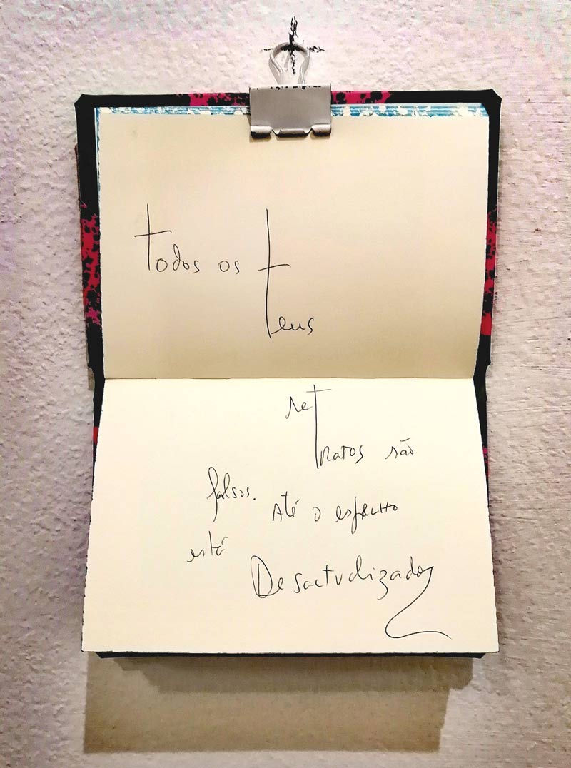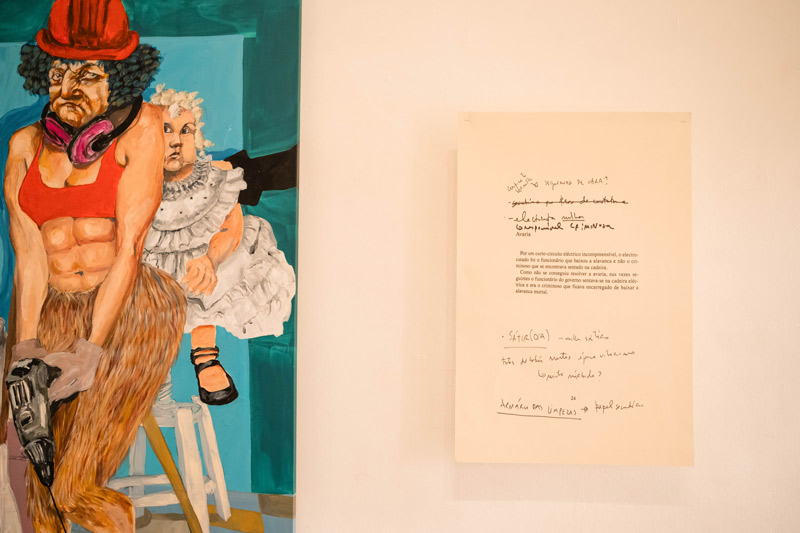 Quem pensava que o Bairro do Gonçalo M. Tavares era cul-de-sac, desengane-se. Existem, afinal, alter-nativas. Excepto ao meio-dia, altura em que a sombra é menor, segundo as indicações adicionais dos sinais de trânsito que se impõem tiranicamente às linhas de orientação do paradigmático urbanismo do escritor, transformando momentaneamente todas as ruas em becos sem saída. Os homens de sucesso, como O Senhor Brecht, são detentores de uma sombra muito longa ao início e final do dia — As pessoas sem sucesso também. É possível entrar e sair do Bairro pelas sombras d’O Senhor Brecht, que no entanto só escreve ao meio-dia, para nos poder sentenciar com maior precisão. Mas como a Inês Pargana é especialista em leitura dinâmica, desdobrou os textos do nascer ao pôr-do-sol, fixou todas as suas sombras com vigorosas linhas — inspirando-se no método de Dibutade, a primeira desenhadora — e transformou-as pela cor em pintura. Eis que o Bairro do Gonçalo assiste a um surpreendente acontecimento de alter-natividade. Nunca mais foi o mesmo. Até à data, a Inês não se quer responsabilizar por ter sobrepovoado o Bairro do Gonçalo com alter-nativas. Houve quem acreditasse que era uma estratégia de fixação, não de sombras, mas de cotas para senhoras, neste Bairro até então de senhores. Esta coisa de recalcar as sombras é, dizem os psicólogos e psicanalistas, muito mais complexa do que imaginamos; parece que acabamos sempre a projectarmo-nos uns nos outros. É sempre melhor exercitar calma e criativamente a auto-ironia, como o Agostinho da Silva aconselhava. Talvez por isso a Inês tenha deixado de projectar arquitetura. Compreendo-a, de resto, muito bem. Expõe[-se] na Casa da Avenida em Setúbal, mas ainda assim, diz que A narrativa são os outros… Afinal, todos sabemos, porém nem sempre, que as coisas da arte têm mais que ver com a alteridade e menos com a identidade. A ingerência do Outro (=alter) que habita o inconsciente, partilhando connosco o grande caldeirão da criação, é, inevitável — Nunca saberemos quando neste Bairro se dará o próximo assalto à mão armada, de pincel ou esferográfica…Há uma certa insegurança no ar, podemos até nos sentir vulneráveis, o que é preciso, e não só porque é preciso: É tão preciso que corta o ar à pincelada e pelo aforismo. Surgem então nesta exposição gloriosos atos falhados proporcionais ao sucesso do Senhor Brecht. O Gonçalo já nos avisa na contra-capa do seu livro “O senhor Brecht é um contador de histórias, histórias por vezes políticas, e com um certo humor negro. Tem sucesso e isso é um problema”. Os deslizes acontecem — embora não só — por via de erros e/ou supressões como a seguinte, que aqui assinalamos com parêntesis rectos, como manda a convenção: “na[rra]tiva”. Inês: Tu és uma alter-nativa; i.e., uma habitante outra do Bairro…Por favor, pára de culpar “os outros”! O gesto de apontar uma arma (pede-se ao leitor para fazer o gesto neste instante de modo a manter leitura dinâmica) implica-nos num ato falhado de dedos: Ao apontar o dedo indicador para o sentenciado, três apontam de volta. O polegar opositor é quem decide, como aliás desde sempre nos primatas — Os senhores que criaram os smartphones sabem o quão vantajoso é delegar a responsabilidade a este nosso ancestral decisor-opositor. Veja-se a arma-berbequim da Sátira pintada pela Inês, animal da cintura para baixo como o Gonçalo aponta, a partir de uma “Avaria” contada pelo Senhor Brecht, na qual o criminoso e o funcionário responsável pela sua execução trocam, literal e não figuradamente, de lugares. Mas o que vem a ser isto da leitura dinâmica? Não, não é essa leitura dinâmica. O leitor desinteressado pode encontrar um vasto leque de ofertas e serviços para — e é este o objetivo principal dessa outra leitura dinâmica — aumentar a sua velocidade de leitura. O que pressupõe, evidentemente, — ou se calhar não tão evidentemente — recalcar a Senhora Dona Anima que opera nas profundezas do Ser, numa voluptuosa colaboração criativa, e portanto de alteridade, com o Senhor Animus, segundo a concepção da psique humana do psicólogo Carl Jung. Com base na investigação destas duas instâncias, em A Poética do Devaneio, Gaston Bachelard defende a seguinte tese: “o devaneio está sob o signo da anima”. Por assim ser, “É nesse repouso feminino, longe das preocupações, das ambições, dos projetos, que vamos conhecer o repouso concreto, o repouso que descansa todo o nosso ser” — Ora esses outros leitores dinâmicos, não estão para tais devaneios. Uma das técnicas dessa outra leitura dinâmica, para ler até 10 vezes mais rápido, é evitar a subvocalização; i.e., mexer os lábios ou até — imaginem — as cordas vocais enquanto se lê. Num outro ensaio, A Poética do Espaço, Gaston Bachelard fala-nos de como aprendeu com um barítono, por sua vez informado por psicólogos experimentais, que não se pode pensar na vogal a, sem que as cordas vocais se mobilizem, o que faz com que pronunciar a palavra vasto, lentamente, tenha um efeito particularmente curativo em caso de depressão. A relação entre personagem e máscara vem do Teatro Grego; per sona, significa através do som, o som que passava através dos orifícios das máscaras dos actores. Felizmente a leitura dinâmica da Inês e do Gonçalo não é tapa-buracos; nesta exposição as personas e as sombras podem caminhar juntas e desvairadamente à solta — o que aliás nos devolve uma certa humanidade. As personagens femininas, masculinas ou transgénero que nos habitam podem, em A narrativa são os outros — não fosse esta uma exposição de personagens e sombras — usar livremente as nossas cordas vocais e lábios…E claro, o par romântico pode encontrar-se nas margens das páginas dos livros: O Animus da Inês, a instância psíquica mais ativa, ali deixou uma série de anotaçõ