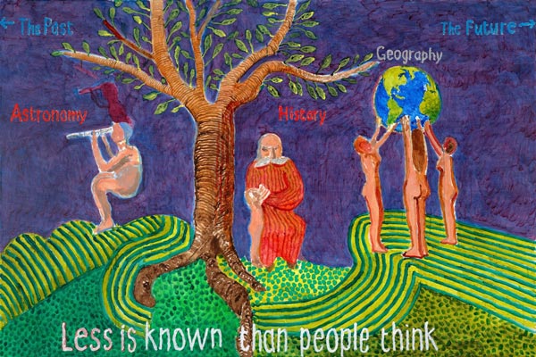 A representação da realidade que se vê diante de si num plano bidimensional, em qualquer medium, é por si só uma tarefa ‘impossível’, que convoca sempre dificuldades e dúvidas. É esse o encantamento da arte em Hockney, suponho, quando a dificuldade se transforma em alegria: “Art should be about joy”, proclama. Segundo ele, há artistas que o conseguiram e que ele faz questão de inserir no The Great Wall (2000), um mapa visual das suas referências de artistas que acredita terem utilizado os conceitos da óptica e mecanismos de projeção de imagens para produzir desenhos e pinturas em tempo real. Tal teve um peso tremendo na história das imagens e na forma como Hockney ainda aprende a ver e a criar arte, subscrevendo nas últimas duas pinturas da exposição a máxima de que “sabe-se menos do que as pessoas pensam” (After Munch/After Blake: Less is Known than People Think (2023-2024)). As imagens sabem mais e melhor que nós, não é verdade?