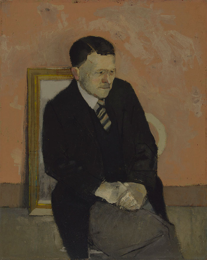 David Hockney, "Portrait of My Father", 1955. Oil on canvas, 50.8 x 40.6 cm. © David Hockney. Photo Credit: Richard Schmidt / The David Hockney Foundation