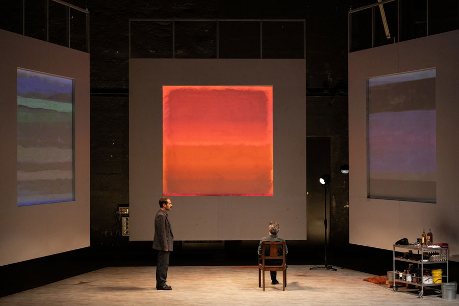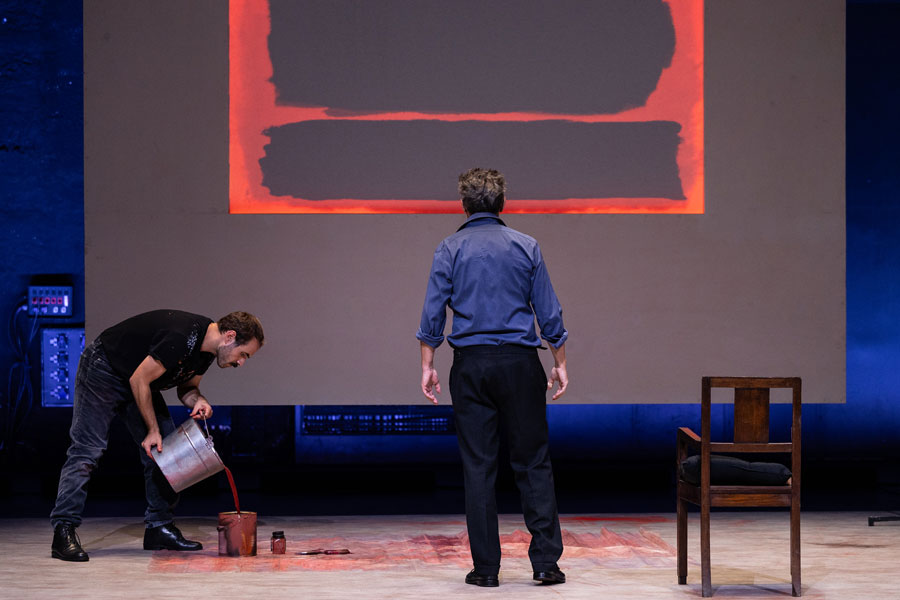 O texto de Logan reúne declarações do artista a partir de várias fontes, construindo uma versão de Rothko como um “homem furioso”, se quisermos citar John Fisher no artigo que escreveu para a Harper’s Magazine em 1970, ano da morte do artista. “Falar, como descobri mais tarde, era uma necessidade para ele, como respirar” [3]. A peça é a transcrição dessa necessidade vital: um jorro de fúria que se faz ouvir demasiado alto para a atmosfera “sagrada” e reverente do atelier. Esta sensação de discordância paira em todas as cenas: dada a conhecida dificuldade em descrever por palavras a sua pintura - escassa, senão nula, em elementos descritivos diretos -, a verborragia de um raciocínio irrepreensivelmente articulado e rápido que brota de ambas as personagens não parece condizer com a experiência muda da sua obra (seja ela emocionalmente arrebatadora ou vazia). Tal sensação imbui a peça de uma agilidade e densidade, por si só, notáveis.