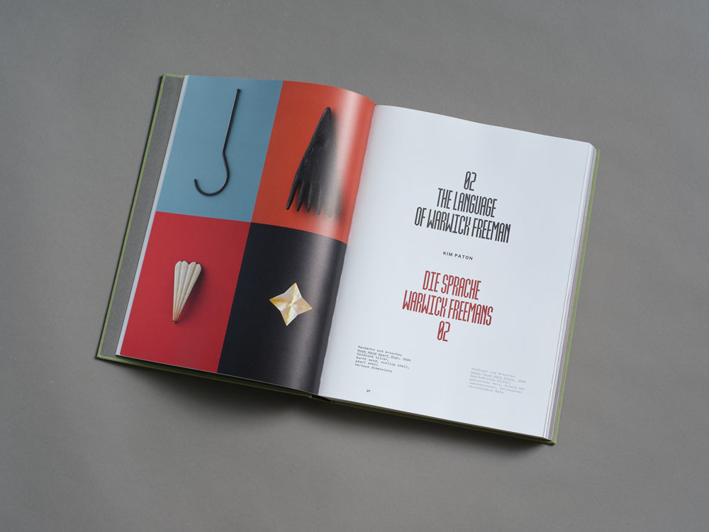 Referências bibliográficas About the Exhibition, Warwick Freeman. Hook Hand Head Star in www.pinakothek-der-moderne.de, consultado em 31 de agosto de 2025. Chapple, G., Chitham, K., Freeman, W., Hölscher, P., Lloyd, B., Nollert, A., Paton, K. (2025), Warwick Freeman. Hook Hand Heart Star, Die Neue Sammlung –– The Design Museum, Munique, Objectspace, Auckland, Aotearoa, arnoldsche Art Publishers, Estugarda. Ewington, J. (1995), «Owner’s Manual» in Freeman, Reynolds, Ewington, Owner’s Manual. Jewellery by Warwick Freeman, Nova Zelândia. Freeman, W. (1999), «The Novelty of Our Own Situation» in Given. Jewellery by Warwick Freeman, Starform, Auckland, 2004, pp. 67-75. Freeman, W.; Skinner, D. (2004), Given. Jewellery by Warwick Freeman, Starform, Auckland. Freeman, W. (2025), «The Workshop: A Memoir» in Chapple, G., Chitham, K., Freeman, W., Hölscher, P., Lloyd, B., Nollert, A., Paton, K. (2025), Warwick Freeman. Hook Hand Heart Star, Die Neue Sammlung –– The Design Museum, Munique, Objectspace, Auckland, Aotearoa, arnoldsche Art Publishers, Estugarda, pp. 70-69. Freeman, W.; Holscher, P.; Paton, K. (2025), «Squaring Up the Circle –– Warwick Freeman’s exhibition architecture» in Warwick Freeman Hook Hand Heart Star [folheto da exposição], p. 15. Hartnett, S. (2025), A Workshop Portrait in Chapple, G., Chitham, K., Freeman, W., Hölscher, P., Lloyd, B., Nollert, A., Paton, K. (2025), Warwick Freeman. Hook Hand Heart Star, Die Neue Sammlung –– The Design Museum, Munique, Objectspace, Auckland, Aotearoa, arnoldsche Art Publishers, Estugarda, pp. 290-297. Hölscher, P. (2025), «It Will Become the Life of an Artist» in Chapple, G., Chitham, K., Freeman, W., Hölscher, P., Lloyd, B., Nollert, A., Paton, K. (2025), Warwick Freeman. Hook Hand Heart Star, Die Neue Sammlung — The Design Museum, Munique, Objectspace, Auckland, Aotearoa, arnoldsche Art Publishers, Estugarda, pp. 10-25. Lloyd, B. (2025), «Freeman Days» in Chapple, G., Chitham, K., Freeman, W., Hölscher, P., Lloyd, B., Nollert, A., Paton, K. (2025), Warwick Freeman. Hook Hand Heart Star, Die Neue Sammlung –– The Design Museum, Munique, Objectspace, Auckland, Aotearoa, arnoldsche Art Publishers, Estugarda, pp. 275-289. Medieninformation, Warwick Freeman. Hook Hand Heart Star, Pinakothek der Moderne, Munique, 2025. Paton, K. (2025), «The Language of Warwick Freeman» in Chapple, G., Chitham, K., Freeman, W., Hölscher, P., Lloyd, B., Nollert, A., Paton, K. (2025), Warwick Freeman. Hook Hand Heart Star, Die Neue Sammlung — The Design Museum, Munique, Objectspace, Auckland, Aotearoa, arnoldsche Art Publishers, Estugarda, pp. 26-69. Skinner, D. (2004), «Weka» in Given. Jewellery by Warwick Freeman, Starform, Auckland, 2004, p. 2.
