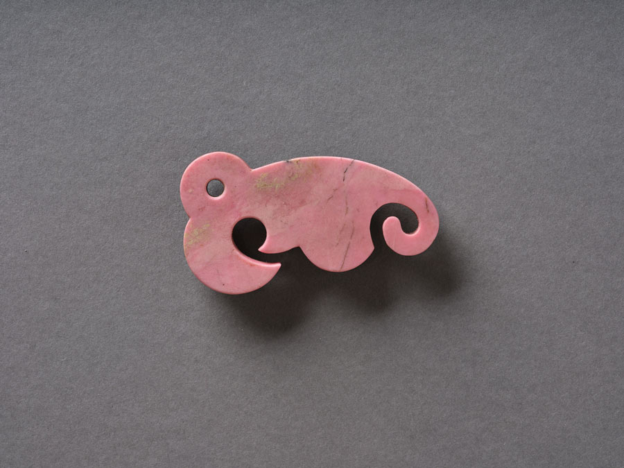 Este broche é um exemplo da fascinante capacidade de o cérebro humano tentar encontrar significado no que é, na verdade, uma coleção sem sentido de formas. De certo modo, esta peça está relacionada com o problema identificado pelo filósofo austríaco Ludwig Wittgenstein e com as suas reflexões sobre a famosa ilusão do coelho-pato. Wittgenstein interessava-se pela correlação entre ver e interpretar, bem como pela forma como atribuímos individualmente significado a um objeto ou imagem. Ele chamou a isto ‘perceção de aspeto’ e sugeriu que, embora possamos atribuir a mesma perceção a uma coisa, cada um de nós também traz um ‘aspeto’ diferente à sua leitura. Independentemente da influência ou intenção de Freeman na obra, são os preconceitos pessoais e as experiências de vida do espectador que ditam se este vê uma manaia feita de rodonita de Otago (a região está associada a muitas pinturas rupestres Maori antigas com várias formas semelhantes a pássaros) ou um pássaro-macaco rosa ou algo completamente diferente. (Chitham, 2025, pp. 103-104) [12]