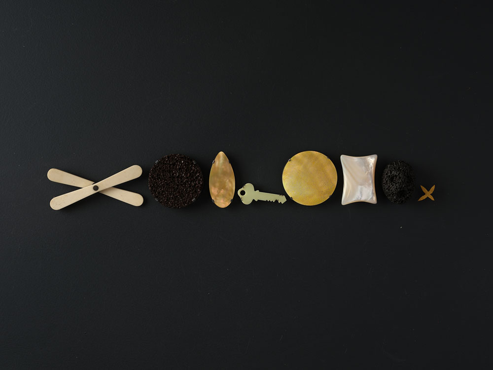 Uma ação fundamental como fazer um furo (como nos painéis em Dust) [imagem 16] é uma das primeiras competências técnicas que desenvolvemos. Essa ação simples, ao criar um ponto de suspensão, pode transformar qualquer material numa peça de joalharia. Esta técnica é provavelmente a razão pela qual a joalharia é tão proeminente na nossa cultura material primitiva. (Freeman, 2025, p. 84) [17]