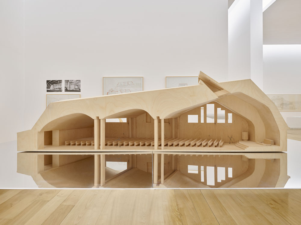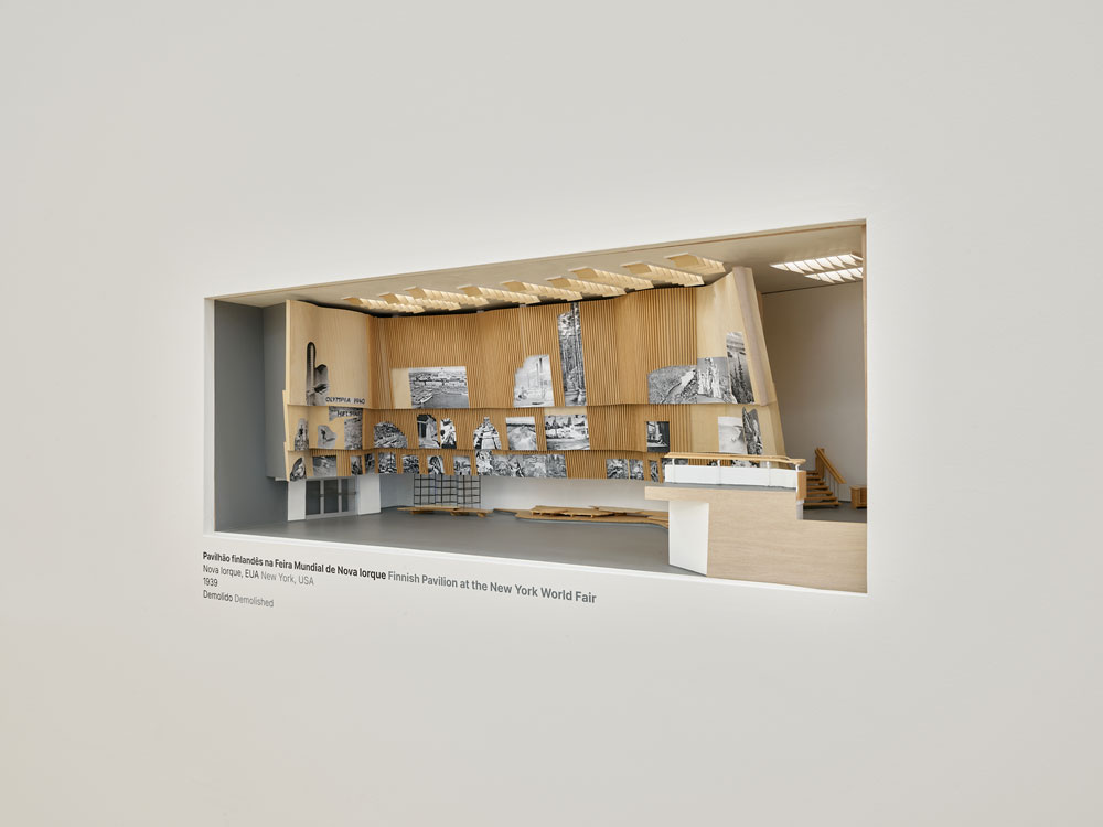 Recuemos, então, a 1920. A mostra está dividida em 15 salas, que apresentam 31 projectos do mestre finlandês, desenvolvidos em colaboração com ambas as companheiras. Cada sala é simbolicamente nomeada a partir de temas bíblicos, “enfatizando o impacto da fé luterana na sua obra” [2], e a narrativa progride cronologicamente até 1994, ano da morte de Elissa. Durante o percurso, exibem-se projectos, maquetas, objectos e documentos — entre eles, a própria revista L’Architecture d’Aujourd’hui que o jovem Siza comprou.