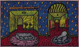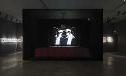 DAVID LYNCHThe air is on fireFONDATION CARTIER POUR L’ART CONTEMPORAIN 261, Boulevard Raspail 75014 Paris 03 MAR - 27 MAI 2007 The air is on fire!O ponto de vista de um verme na terra que, entre as ervas, observa a chegada de homens e mulheres que se comportam com a simplicidade americana, mas que podem, de um momento para o outro, atravessar paredes, pode ser a perspectiva ou focalização aspirante mais adequada para entrar no mundo de David Lynch. O cineasta está, neste momento, a ocupar Paris: “The air is on fire†é o nome da exposição patente na Fondation Cartier pour l’art contemporain. Consagrada “à s múltiplas facetas da sua obra plásticaâ€, a Galerie du Jour, de Agnès B., apresentou fotogramas seleccionados do novo filme de David Lynch, “Inland Empireâ€, que está ainda em exibição nas salas francesas. Os cineastas entraram definitivamente no museu. Desta vez e após “Voyages en Utopie(s)†de Jean-Luc Godard, no Centre National Georges Pompidou, a Fondation Cartier apresenta a obra plástica de David Lynch, no seguimento da exposição “L’île et elle†de Agnès Varda (2006). A exposição não está ligada ao filme, ou a personagens ou factos irreais, salvo por pura coincidência. No entanto, apresenta uma magnÃfica banda sonora, igualmente narcótica; no entanto, um décor de sala de estar é a instalação mais surpreendente; no entanto, um pequeno cinema ocupa a área central da cave da fundação; no entanto, as telas estão instaladas como os telões de um cenário: no entanto, o néon que anuncia e dá nome à exposição é um convite a entrar no seu universo, tal como “Fire walk with me†nos atraiu para a sempre viva, e sempre morta, Laura Palmer, de “Twin Peaks†(1992). O universo de David Lynch é a sua cabeça que cresceu para o cinema com “Eraserhead†em 1977. Os cerca de 500 desenhos em bloco-notas de hotéis, em guardanapos de papel e em post-its, que ocupam a primeira grande sala à direita da fundação, marcam o crescente interesse de Lynch pela geometria que domina os seus sonhos: a casa a arder, as pirâmides de chamas, os nomes de mulher; e as telas saturadas em múltiplos layers de pigmento presentes no centro deste espaço, executadas dentro de uma palete onde o cinza e o negro dominam, são quase sempre abstractas e não nos deslocam o olhar da metódica catalogação de pequenos croquis do cineasta, apresentados nas paredes. A grande sala à esquerda da entrada da Fundação apresenta as telas mais significativas de David Lynch: uma série dedicada ao personagem Bob e à sua aprendizagem (num mundo que não compreende) evidencia as inúmeras influências presentes na técnica mista utilizada pelo artista: desde as cores primárias e abertas da casa dos Simpson’s ao estilo de intervenção urbana de Basquiat, com obras onde a inserção de vestuário e colagem de fotografias se misturam num tornado de energia em que personagens sexuados vivem como principais sujeitos figurativos. É de salientar a série de fotografias que pode ser vista no andar inferior que evidencia a mestria do cineasta no plano da imagem argêntica. As temáticas exploradas são o nu feminino e a paisagem industrial. O discreto corredor que leva à s casas de banho, atapetado para a ocasião de alcatifa vermelha, é também intervencionado pelo artista com os famosos “Fish kits†ou “Chicken kitsâ€, concebidos por Lynch, nos anos 7O, durante as filmagens, como kits de montagem de maquetes de aviões, mas transformados em kits de animais esquartejados com as instruções para os recompor de novo. Todas as obras são expostas sem qualquer tabela que indique a sua cronologia, por expressa vontade do autor. A série “Distorted Nudes†é também apresentada na cave. Fruto da sua primeira experimentação no domÃnio da tecnologia numérica, é composta por fotomontagens de fotografias eróticas, de 1840 a 1940, da colecção de Uwe Scheid. David Lynch é um grande cineasta. A sua obra plástica não é comparável aos seus filmes, mas reflecte todo um trabalho criativo “satelitar†em relação à sua obra cinematográfica. A cenografia da exposição, assinada pelo autor, é a prova da ocupação dos espaços e funciona como um enorme set cinematográfico, alterando o percurso habitual das mostras na fundação (excepção feita à exposição “Ce qui arrive†de Paul Virilio, 2000). Todo o espaço da exposição é uma visita à cabeça de Lynch, um percurso num fairy ground perverso e “voyeurÃstico†dentro do bom esquema do multiparque de diversões americano. Na livraria, verificamos que o artista não foge ao sistema económico hollywoodiano: vendem-se t-shirts e embalagens de café orgânico autografadas pelo cineasta. Mas na exposição, como em todos os seus filmes, há sempre um qualquer perigo iminente que nos atrai inconscientemente como num sonho. Mesmo em filmes apaziaguadores como “Straight Story†(1999), a minha experiência é sempre perturbada pela irrealidade das situações: estava a assistir à estreia desse filme num festival, numa ilha perdida da Croácia, quando o relâmpago do filme se uniu ao raio que desencadeou uma tempestade, a qual varreu todos os espectadores da sessão ao ar livre; no edifÃcio da Fondation Cartier, o néon da entrada e os cabos eléctricos, que displicentemente corriam entre as obras e o exterior separado pela estrutura de vidro do edifÃcio, pareciam uma armadilha electrocutante, devido à chuva torrencial no dia da minha visita à exposição… Há sempre um convite entre as linhas perfuradas de um disco em vinil para entrarmos como súbditos no império de David Lynch.