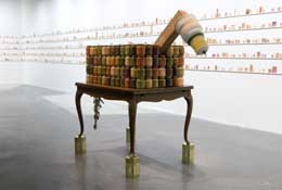 PATRICK VAN CAECKENBERGHLes BicoquesLA MAISON ROUGE - FONDATION ANTOINE DE GALBERT 10, boulevard de la Bastille 75012 Paris 01 JUN - 16 SET 2007 No “jardin clos†ou jardim fechado das delÃcias de Patrick Van CaeckenberghOs jardins fechados, universos dentro de muros, paraÃsos secretos, existem desde que os homens decidiram guardar uma parte da paisagem para seu deleite privado. Segundo a tradição cristã, Deus criou o primeiro Éden e a bem-amada Era, evocada nas canções medievais como um “jardin closâ€: “Tu és um jardim fechado, minha irmã, minha esposa, um jardim secreto, uma fonte protegida exalas o aroma do paraÃso das romãs, e dos frutos do pomar, do ligustro ao rosmaninho…†(BÃblia, Cântico dos Cânticos, Cântico, 4,3) Patrick Van Caeckenbergh, nascido em 1960 na Bélgica e compatriota de Wim Delvoye (1965), protege a sua liberdade criadora dentro da cerca de um jardim fechado e remete-nos para o imaginário dos livros de fadas e demónios caracterÃstico da cultura europeia do norte ocidental, particularmente da tradição flamenga. Este artista começou a sua carreira hibernando, literalmente, dentro de uma “Living Box†(1982), espécie de abrigo precário construÃdo a partir de tiras de madeira e cortinas. Viveu dentro deste habitat, simultaneamente sedentário e móvel, entre 1980 e 1984. Este habitáculo que adquiriu o estatuto de obra de arte em 1982 é uma espécie de casa “sobre†as costas como possuem certos animais, como o caracol, a tartaruga as ostras e os mexilhões. O termo que dá tÃtulo a esta sua primeira retrospectiva em França, “Les bicoquesâ€, pode ser traduzido por conchas ou baiucas. A Maison Rouge, onde está patente a exposição, foi criada por Antoine de Galbert, e caracteriza-se por uma selecção de mostras bastante personalizada, que concilia retrospectivas de artistas de renome internacional, como Ann Hamilton ( “Phoraâ€, 2005), com artistas do meio parisiense como é Denise Aubertin (“Les livres cuitsâ€, 2006) que estão ausentes da bolsa de valores da arte contemporânea internacional. Existe neste espaço uma programação que privilegia a divulgação de colecções privadas e denota a preferência dada pelo seu fundador à arte bruta e contemporânea na sua expressão primitiva e sexuada. As quatro exposições deste Verão patentes na Maison Rouge são denominadores comuns desta escolha pessoal: Flavio Favelli concebe uma esplanada para o café da instituição sob a aura dos “Poémes Saturniens†de Paul Verlaine, com mesas e cadeiras lacadas a preto cobertas de borracha preta e com uma iluminação que se faz através de lustres. Felice Varini pinta uma das áreas da Maison Rouge criando uma intervenção cinética que funciona em anamorfose com a perspectiva do espectador, evoluindo com a sua deslocação no espaço. O Pavillon Seroussi foi fruto de um concurso de arquitectura promovido com a finalidade de conceber a casa para o coleccionador privado dos nossos dias, em que participaram 6 agências de arquitectura. E é neste núcleo expositivo dedicado à s arquitecturas que se insere Patrick Van Caeckenbergh. A partir do longo corredor de acesso à principal área expositiva da Fundação avistamos uma cerca de jardim em metal - o portão está aberto e na parede aparecem duas imagens representando o Sagrado Coração de Jesus, com a respectiva coroa de espinhos e a frase incrita “Jardins Clos. Quando se entra no interior do gradeamento vê-se uma série de redomas de vidro, dispostas umas dentro das outras à semelhança das matrioskas russas (“Les oubliettesâ€). Sinto-me dentro de um cabinet de curiosités, que é afinal uma “Collection de peaux†disposta em dois dos muros da Maison Rouge. São amostras de 5000 variedades de epidermes que, para meu espanto, produzem um misto de prazer, como aquele que sinto ao presenciar o deleite de João César Monteiro ao guardar mais um exemplar na sua colecção de pêlos púbicos femininos (em as “Bodas de Deusâ€, 1999), a par da amarga lembrança das experiências nazis. Os crâneos de uma série de esqueletos juntam as mãos numa prece desconhecida em “La couronne des dieux suppliantsâ€, os corpos estão cobertos pela saia em veludo de um menino de coro e são os deuses que se ajoelham pelos homens. Esta obra encontra-se ladeada pelas amostras de pele que descobri serem colagens de revistas pornográficas. Por vezes as criações de Caeckenbergh possuem uma vertente marcadamente primitiva, com influências Dada; apresentam visÃveis as marcas de manufactura do seu autor e a inerente sujidade ou imperfeição que resulta da prática de bricolage. A arte feita à mão. Existe uma dicotomia sempre visÃvel na arte: por um lado, a escolha de certos artistas em encarnar as próprias obras, tocando-as de finitude, libertando ficções individuais. Por outro, os que criam dentro da epopeia tecnológica e digital, num universo em que a perfeição formal é uma exigência. Para estes últimos as ficções de um universo pessoal são apresentadas de uma forma quase totalitária, como um sonho de futuro que todos deverÃamos partilhar, como acontece, por exemplo, em “The Creammaster Cycle†de Matthew Barney. Um paravento (“Le paraventâ€) em madeira ocupa a área central da sala e esconde uma mesa longa de piquenique que revela, nos pratos deixados vazios, alguns restos da receita “velouté du potager au homard fin†(sopa de legumes com lagostins) de Patrick Van Caeckenbergh. Os copos vazios e as flores permanecerão até à proxima refeição que será partilhada com o artista que convida o seu público a comer e a conviver dentro do espaço expositivo. A próxima será no dia 13 de Setembro, à s 19 horas. Uma porta iluminada de 20 centÃmetros abre-se por detrás do paravento. É a porta da casa do rato (“Le trou de sourisâ€). Se espreitarmos não vemos o seu habitante mas somos remetidos, uma vez mais, para as históri
