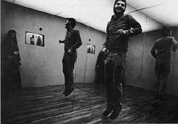 COLECTIVACentre Pompidou Novos Media 1965-2005MNAC - MUSEU DO CHIADO Rua Serpa Pinto, 4 1200-444 Lisboa 19 OUT - 06 JAN 2008 A compreensão das principais caracterÃsticas evolutivas das artes plásticas e visuais contemporâneas implica, invariavelmente, um olhar aos últimos quarenta anos de produção artÃstica e, consequentemente, a verificação da importância dos cruzamentos de géneros e hibridez dos media e suas linguagens. Compreender o panorama artÃstico actual e, nomeadamente, as condições técnicas e tecnológicas que favoreceram ou condicionaram e experimentação de determinadas soluções de materialização estética, conduz-nos a um território de reflexão que tem por epicentro a assimilação, pelas artes, do vÃdeo, enquanto media especÃfico de produção artÃstica. Para essa reflexão contribuÃram certamente as utilizações pioneiras do vÃdeo enquanto metodologia de registo de performances, em que os artistas gladiavam os limites de abordagem do próprio corpo, quer o seu, enquanto emissário da experiência, quer o do espectador, agora submetido a condições de experiência que, não só impunham novas categorias de fisicalidade e recepção, como definiam ainda novas possibilidades de construção narrativa. Obras cujo processo de fruição se encontra armadilhado pela relação arbitrária da fisicalidade do espectador são, invariavelmente, designadas de Instalação e, neste caso concreto, de Instalação vÃdeo e uma das particularidades distintivas de uma outra forma de utilização do vÃdeo pelas artes é a cumplicidade com a individualidade espacial do espectador e sua liberdade de construção narrativa. Numa outra acepção, a linearidade narrativa da utilização do vÃdeo pelas artes interpõe-se a uma lógica de recepção cinemática e o tipo de relação espacio-temporal estabelecido é substancialmente diferente. Em ambos os casos, a utilização do vÃdeo pelos artistas tem constituido um dispositivo de autocrÃtica e reflexão tecnológica do/no suporte em que o mesmo é produzido. Até Janeiro, o Museu do Chiado–MNAC apresenta um conjunto de trabalhos que permite revisitar alguns dos artistas que mais significativamente problematizaram essa relação conturbada e desafiante entre a arte e os novos meios tecnológicos de produção e exibição, relação essa cujo inÃcio remonta à s décadas de sessenta e setenta. Christine Assche, curadora-chefe do departamento dos novos media do Centre Pompidou de Paris, organizou a exposição “Centre Pompidou, Novos Media†a partir de uma colecção iniciada pelo Centre Pompidou em 1976, com o objectivo de reunir, precisamente, um universo significativo de obras que reflectissem as novas linguagens artÃsticas e tecnológicas que desde então passavam a ser também ferramente de trabalho e forma de expressão das artes plásticas e visuais. Dessa colecção, que conta actualmente com mais de 1200 trabalhos, foi concebida uma mostra que traz a Portugal nomes como Bill Viola, Bruce Nauman, Chris Marker, Dan Graham, Dara Birnbaum, Douglas Gordon, Gary Hil, Jean-Luc Godard, Marcel Odenbach, Martial Raysse, Matthieu Laurette, Nam June Paik, Peter Campus, Pierre Huyghe, Samuel Beckett, Stan Douglas, Tony Oursler, Valie Export e Vito Acconci. Apenas 19 os artistas no MNAC e apenas 23 as obras mostradas, mas a importância deste conjunto para a compreensão do vÃdeo (e instalação vÃdeo) enquanto capÃtulo recente da História da Arte é inquestionável. O percurso expositivo desenvolve-se segundo quatro blocos temáticos principais (“Para uma televisão imagináriaâ€, “Questões de identidadeâ€, “Do vÃdeo à instalação†e “Pós-cinemaâ€) e esta, sendo uma divisão simplificada, permite enunciar questões centrais de um debate sobre esses “novos mediaâ€, enriquecido pelo contributo de áreas aparentemente distintas como o teatro, o cinema ou as artes plásticas. De resto, e considerando a exiguidade do espaço expositivo do Museu do Chiado e a especificidade que a instalação deste tipo de obras sempre acarreta, seria difÃcil conceber um formato muito diferente do adoptado, sem que para tal não se sacrificassem algumas das obras expostas; sendo itinerante, o conjunto de possibilidades combinatórias da actual exposição estaria, à partida, salvaguardado. Ainda assim, e face ao tempo de exibição/recepção que algumas obras impõem, alguns pontos estratégicos da circulação requerem uma disponibilidade (fÃsica) acrescida, superada pela avidez de descobrir ou revisitar trabalhos fundamentais para uma história crÃtica dos “novos mediaâ€.
