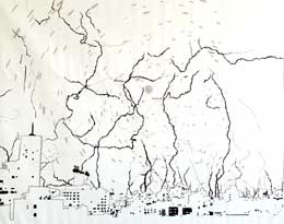CARLOS ROQUEStratocasterGALERIA PRESENÇA (LISBOA) Rua de Santo Amaro, 47 1200-801 Lisboa 19 JAN - 01 MAR 2008 Na sequência de “Mixtape Series Vol.2â€, Carlos Roque regressa a Portugal com uma nova exposição individual intitulada “Stratocasterâ€, em apresentação na Galeria Presença, em Lisboa. A par das suas passagens pontuais por Portugal, Roque tem exposto com regularidade, nomeadamente nos EUA onde actualmente vive e trabalha. Pertencente a uma geração de artistas que se afirmou na segunda metade da década de 1990, Carlos Roque tem desenvolvido, desde então, um trabalho centrado em torno da cultura urbana, onde a presença de signos decorrentes da banda desenhada ou da música rock se fazem sentir de forma sistemática, não sendo de estranhar dada a sua participação em diferentes projectos musicais, entre os quais se encontram Tone Scientists, formado em 1996 também por Rui Toscano e Rui Valério. A aproximação das artes visuais à música não constitui, no entanto, nenhum dado novo e ao longo de todo o século XX é possÃvel identificar diversos casos que realçam esse mesmo contacto, apesar das propopostas estéticas entre si não serem necessariamente partilháveis. Assim, destacam-se os filmes sonoros de técnica cut-and-paste de Kurt Schwitters, as gravações sonoras em tempo real de Pierre Schaeffer, as pinturas de Oskar Fischinger, os concertos de Exploding Plastic Inevitable/Velvet Underground organizados por Andy Warhol ou os seus retratos de cantores famosos, os happenings musicais de Nam June Paik, os trabalhos de Dan Graham ou, mais recentemente, os desenhos de Raymond Pettibon. Os exemplos são inesgotáveis, mas talvez o que importa aqui perceber é o modo como Carlos Roque participa nesta arqueologia visual e sonora. Se, por um lado, estamos perante um trabalho que repõe a articulação entre estas duas linguagens, por outro essa repetição parece existir para a partir dela se produzir uma diferença. Carlos Roque não se limita a representar elementos pertencentes ao universo da música rock, nem o seu trabalho é apenas resultado de uma influência desse mesmo universo. As guitarras, os amplificadores ou as colunas aparecem antes como material e objecto de produção do seu trabalho, sendo utilizados em complexas instalações sonoras que, ao incorporarem diversos dispositivos mecânicos, funcionam autonomamente em relação ao sujeito. Prática esta que antecipou parte da produção artÃstica desta última década e, em particular, o trabalho de Marc Bijl ou Banks Violette que, ao lado de outros, recuperam o legado do death metal. “Stratocaster†a obra central da exposição, consiste numa instalação de dois painéis contendo ambos duas fenders strats incorporadas, instrumento aliás que tem ocupado um lugar central nos seus trabalhos. Ao entrarmos na sala, ouvimos um acorde continuado sem sair de afinação produzido pela acção de onze ventoÃnhas instaladas no painel prateado e que, por sua vez, é emitido pelas dez colunas que se encontram no painel vermelho. A presença do amplificador à frente deste último painel, provoca, como se advinha, um efeito de feedback intenso. No entanto, e apesar das guitarras estarem integradas nos paineis, as respectivas cordas estão à superfÃcie e o acaso pode a qualquer momento surgir com a interacção do observador. Carlos Roque criar aqui um estimulante sistema de trocas no seio de regimes de signos provenientes de campos distintos e que, ao serem fundidos nesta instalação produzem um deslocamento constante do sentido e simultaneamente uma destituição da fronteira entre os media. Nesse sentido, podemos identificar na sua obra uma experiência da redistribuição indicidÃvel das formas e dos tempos, das imagens e dos signos que Rancière fala. A exposição apresenta ainda duas pinturas intituladas “Voyager#8†e “Voyager#9†onde delas surgem paisagens urbanas predominante gráficas que nos rementem para uma linguagem da banda desenhada e nos transportam para um curioso universo ficcional.