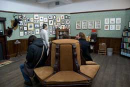 MARK DIONThe Octogon RoomTANYA BONAKDAR GALLERY 521 West 21st Street New York, NY 10011 16 FEV - 15 MAR 2008 Uma perspectiva ecológicaQuando se entra no piso térreo da galeria Tanya Bonakdar, em Chelsea, o visitante é confrontado com uma presença escultórica onde a perspectiva é dominante. O “Octogon Room†remete-nos à Florença de Brunelleschi e ao seu Batistério de San Giovanni – um dos marcos da perspectiva Renascentista (também octogonal). Porém, não existe nada de sagrado aqui e isso é comprovado pelos inúmeros sacos de areia que transpõem a construção para uma vertente quase militar, que delimitam a única entrada existente. As questões levantadas são nomeadamente o que há de tão importante a proteger no seu interior? Entramos. Contrastando com a frieza geométrica do seu exterior desvenda-se um interior confortável: inúmeras cadeiras gastas pelo tempo e pelo uso; as “amostras†outrora vivas e agora conservadas em formol, gavetas com mais amostras por catalogar, notas e urnas recriam uma história e movimentos de trabalho metódico e naturalista. A paisagem é para este artista uma natureza morta, mas cientificamente catalogada. Mark Dion é um biólogo de formação, mas foi na arte que encontrou a sua forma de se apropriar do mundo e de o partilhar com os seus contemporâneos. O visitante é também confrontado com a presença de um vigilante da galeria, que simpaticamente convida os visitantes a interagir com a obra. Todas as gavetas, caixas, blocos de notas podem ser abertos ou lidos cuidadosamente. Entende-se então o porquê dos assentos de veludo gasto. O visitante é convidado a demorar-se nesta obra-memória, que levou 8 anos a ser concretizada. O mixed media é a Historia da Ciência – neste caso a biologia e a geometria exterior divide o espaço interior, também meticulosamente dividido: a entrada com a parte das arrumações – inúmeras ferramentas de campo e fatos de trabalho de um lado (o lado prático) e na aresta oposta, molduras com retratos de pessoas que se induz que admire (destaco Freud e Edgar Allan Poe – que transmitem um contexto entre o subsconsciente e o fantástico, e a curiosidade humana; um efeito que a Natureza normalmente induz na Natureza Humana e que ultrapassa a contemplação); outra aresta com as suas amostras outrora vivas e agora conservadas em formol de peixes, répteis e insectos e em cima animais em vias de extinção “conservados†em fotografias. A “maré negra†– um detalhe que recorda o ecologismo, é tambem invocada nas esculturas taxidérmicas, à s quais são adicionados objectos inúteis e que normalmente perdemos ou deixamos perder, como botões, moedas, pregos; ou então nos troféus de caça na parede oposta à da entrada e sobre a lareira com o acesso obstruÃdo. A chávena de chá ainda está presente sobre a secretária onde se presume que o trabalho tenha sido criado. O artista deixa assim a potencialidade em poder aparecer e voltar ao trabalho a qualquer instante. Entre mapas, desenhos de campo, fotografias antigas, enfim, na atmosfera museológica criada pela mobÃlia disposta junto à s paredes, destaca-se um assento estrategicamente colocado no centro da sala-escritório. É aqui que os visitantes se podem sentar e demorar-se em cada uma das arestas; ou consultar a documentação deixada pelo artista acerca do seu trabalho de campo. Para lá do que é deixado propositadamente visÃvel percebe-se então o que o exterior tem a intenção de proteger – a própria Natureza, enquanto linguagem artÃstica e um pouco a História das Ciências da Vida enquanto área de construção de conhecimento sobre o mundo que nos rodeia. Contudo, tudo isto sob o olhar presente do investigador-explorador-artista– não se tratasse o “Octogon Room†do seu espaço privado, onde desenvolve o seu trabalho (e da sua postura, diga-se Renascentista). Do ser humano que analisa metodicamente o ambiente à sua volta e que o tenta infrutiferamente conservar, coleccionando-o. SaÃmos. “Octogon Room†é um trabalho que marca o visitante. Qualquer pessoa que o visita, de certa forma vive as memórias do seu criador, tornando-se parte do imaginário por ele criado.
