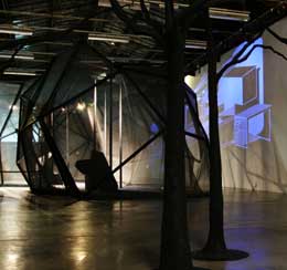 LORIS GRÉAUDCellar DoorPALAIS DE TOKYO - SITE DE CREATION CONTEMPORAINE 13, Avenue du Prèsident Wilson 75 116 Paris 14 FEV - 27 ABR 2008 Bolinhas de sabãoExposição que se apresenta como um projecto de atelier-máquina-desejante autonomizado e com vontade própria, mais próximo de uma “fábrica que sonha” do que de uma “fábrica de sonhos”, como “uma cadeia de montagem mais estratosférica do que o feijão mágico de Jack” e “mais deformante do que o espelho de Alice”, como um “gigantesco organismo gerado por uma partitura que se estende pelo tempo e pelo espaço”, como ponto de partida para alguma coisa e não como um resultado, como um work in progress e não como uma proposição acabada, como um complexo espacio-temporal descontínuo e não-cartesiano, como “um objecto delirante, dotado de pensamento e de palavra, que se reinventa em permanência”, como um terrain-de-jeu “onde as regras estão por inventar”, como uma ópera, como um lugar “onde gigantescos fogos de artifício são atirados para debaixo da terra”, “onde as perspectivas se dobram sobre elas próprias como bolas de papel”, “onde as estrelas formam desenhos intergalácticos que se medem em anos-luz”, “onde as falhas espacio-temporais se abrem sob os pés”, “onde as esculturas se formam sob os olhos”, uma exposição que é como uma “entrada no imaginário delirante de um atelier onde cada pensamento é uma metáfora [que outra coisa poderia ser?] que desenha em cruz a sua ambição e o seu devir”, como “um objecto proteiforme”, como “uma marioneta gigante” pilotada em tempo real por um “estúdio antecâmara” – só lamentamos que esta exposição não seja também um magnífico pudim de ovos com cobertura de caramelo –, “Cellar Door”, primeira grande mostra individual do jovem artista francês Loris Gréaud, é, além de tudo isto, um lamentável espectáculo de mistificações várias, a primeira das quais, a própria mistificação do espectáculo que assim se quer montar (e que sem querer, assim se desmonta – aproveitemos, nós também, o primarismo antinómico em que se estrutura tão paradoxal proposta). Tão sobrecarregada de meios como de referências e alusões mais ou menos cifradas – a autores como Buckminster Fuller (geometria analítica), Kurt Schitters (Merzbau), Wagner (Gesamtkunstwerk), Yves Klein (IKB); correntes artísticas como o minimalismo, a arte conceptual, o abstraccionismo, a Gestalt; a áreas de investigação como a electroscopia, a arquitectura virtual, a “tecnognosis”, o paranormal, a mecânica quântica, o espiritismo, a astrofísica, a mediunidade, a psicologia (déja-vu, telepatia, “sonho magnético”, hipnose); a técnicas tão obscuras como a “dinamistografia”, a psicometria, a electroterapia ou a electroacústica – a exposição só não é barroca (no sentido pós-moderno do termo) por ser um grotesco vazio, caro e aparatoso. O espectáculo, que quer mostrar-se hiper-codificado, hermético e votado a coisas muito difíceis de entender (a estratégia, tão antiga como a alegoria), é suficientemente anódino para não ofender ninguém, enche o olho – melhor, o olho, o olfacto (numa sala tenta reconstituir-se o possível cheiro de Marte), o paladar (por 2 euros podem adquirir-se na exposição pequenos sacos de “Cellador”, uns rebuçados coloridos que têm a particularidade de serem destituídos de sabor), o ouvido (ao virar de cada esquina o espectador depara-se com inquietantes interferências sonoras), o tacto (num corredor proporciona-se a experiência de uma corrente de ar, mais à frente, uma sala com a temperatura mais elevada, etc...) –, é engraçado (e variado), grande, polémico (um espaço onde se pode jogar paintball remete para cenários de guerra – uma guerra imaterial e televisiva), não sendo particularmente colorido, tem imensas luzes que acendem e apagam, uns ruídos misteriosos aqui e acolá. Leia-se nas entrelinhas a prosperidade da jovem arte contemporânea francesa. À contra-luz, a negação de Lautréamont: não uma criação feita por todos, mas apenas uma exposição com todos os meios. À transparência, a opressão pelo dinheiro. Visto ao contrário, talvez não tenhamos percebido nada, afinal. A única certeza: a exposição é, no sentido mais corriqueiro da expressão, um espectáculo!