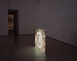 ALEXANDRE ESTRELAPutting Fear in its PlaceFIDELIDADE ARTE Largo do Chiado, 8 1249-125 Lisboa 24 MAI - 15 JUL 2008 “Putting Fear in its Place†é o tÃtulo da nova exposição individual de Alexandre Estrela, em apresentação no Espaço Chiado 8, em Lisboa, integrada no programa comissariado por Ricardo Nicolau. Pertencente à geração de artistas que se afirmou no decurso da década de 1990, Estrela tem, desde então, desenvolvido um vasto e consistente trabalho marcado por uma profunda reflexão sobre os procedimentos de produção da imagem e a sua recepção. Longe de reiterar um entendimento essencialista dos media a que recorre ou as suas configurações tradicionais, Estrela procura gerar situações inesperadas e crÃticas, decorrentes da exploração das possibilidades e limites de cada medium, promovendo com isso um questionamento sobre a experiência da percepção. Assim, identificamos em muitas das suas obras diversas operações, como efeitos de estereoscopia ou de feedback, que não só dão lugar a dissonâncias visuais e sonoras, como também apontam para uma destituição da ideia de estabilidade que se queira atribuir à relação entre sujeito e objecto. Ora é justamente a tensão que preside sempre a esta relação que Alexandre Estrela procura de novo pensar, encontrando no medo ou aquilo que extravasa o controlo, um ponto de partida. De acordo com o artista, a obra que abre a exposição podia até ser um videoclip dos Sunburned Hand of a Man. Não só rouba o tÃtulo a uma das músicas da banda, como também o respectivo som. Mas estamos muito para além de um mero exercÃcio de apropriação. E, apesar da sua desarmante simplicidade, é provavelmente a peça mais complexa do núcleo aqui apresentado. “The overt statuetteâ€, trata-se de uma projecção vÃdeo, constituÃda por duas imagens com perspectivas ligeiramente diferentes de um tronco cortado envolto de relva e que se sucedem uma à outra em loop, criando um efeito estereoscópico 3D. Paralelamente, vemos sair da parede uma vara de madeira que suspende o ecrã no chão da sala e atravessa-o, terminando no ponto focal de uma perspectiva materializada e imóvel, manifestando-se, por isso, contrária à s perspectivas virtuais que produzem um movimento contÃnuo, devolvendo a ilusão de um espaço tridimensional. Entre o actual e o virtual se define este trabalho e de resto toda a problemática da exposição. Esta peça conduz-nos a uma segunda projecção intitulada “Um homem entre quatro paredesâ€. Para além do tÃtulo ir de encontro à nossa condição de observador, traduz o que simbolicamente representa a tatuagem de cinco pontos que muitos presidiários partilham. É a imagem de uma destas tatuagens que vemos ser projectada em grande plano, de forma a que os seus 4 pontos coincidam com os cantos da parede. Será então do ponto central da imagem, que corresponde ao quinto ponto da tatuagem, e, em última instância, ao lugar do sujeito, que vemos emergir repetida e sucessivamente a mesma imagem num pulsar progressivo acompanhado por uma frequência de sons graves muito intensos que interferem com o nosso corpo. Ao criar esta sobreposição de imagens, Estrela expande virtualmente o espaço de um modo vertiginoso, estabelecendo uma relação entre o ponto de fuga e o desejo de fuga do sujeito. O último trabalho da exposição é uma escultura de quatro paredes que dá lugar a um espaço não ortogonal, despistando qualquer expectativa do observador. Ao entrarmos neste espaço, reparamos que os cantos foram arredondados, não sendo possÃvel distinguir a concordância entre o interior e o exterior do volume. Paralelamente, esta arquitectura lembra-nos de imediato o tÃtulo intrigante da peça, “O cancro esconde-se nos cantosâ€, que não só nos remete para uma crença médica do século XIX que dizia que a doença se alojava nas arestas, como também para o então modelo de arquitectura do New York Cancer Hospital que, eliminando os cantos, preveniria o seu combate. Mas será que alguma coisa se esconde atrás dos cantos da escultura? Apesar de nada se ver, o artista confirma que num deles colou uma imagem da esquina do hospital St. Louis, que dá para a Rua da Rosa. Se repetirmos esta acção num canto qualquer com a mesma imagem (oferecida na brochura da exposição), um efeito de ambiguidade óptica acontece e subitamente a orientação desta esquina entra num movimento alternado, ora côncavo ora convexo. A existência desta fotografia colocada e escondida aponta então para uma latência da virtualidade como uma ameaça recalcada da condição de observador, mesmo quando este está no centro da sala e confirma o momento extremo de actualidade do processo de observação. De regresso somos levados pelo percurso em sentido inverso, e a progressão para uma dimensão virtual, que quase exclui a actualidade, tal como acontecia em “The overt statuetteâ€, cria uma polaridade oposta nesta experiência sobre a percepção.