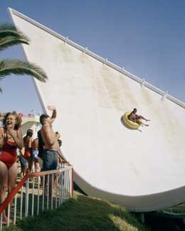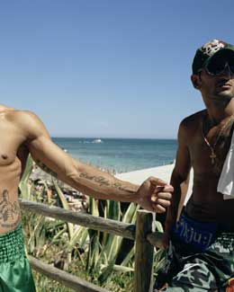 PATRÍCIA ALMEIDAPortobelloZDB - GALERIA ZÉ DOS BOIS Rua da Barroca, 59 1200-049 Lisboa 11 SET - 15 NOV 2008 A ficção do lazer em tempo de solO turismo é um tema bom para pensar os lugares onde vivemos. E também aqueles que visitamos ocasionalmente, onde na maior parte dos casos se perpetua, ainda que involuntariamente, uma dicotomia entre tempo de lazer e tempo de trabalho, a partir da qual o Verão ganha contornos de El Dorado anual. Em Portobello, Patrícia Almeida (Lisboa, 1970) transporta-nos para um Algarve conhecido de todos: o Algarve do turismo de massa, das praias, das discotecas, do bronzeador, do engate, do postal ilustrado, da fotografia de grupo, do inglês como língua dominante, do corpo enquanto expoente máximo do ser, dos engarrafamentos, dos “bifes” e das “bifas” (para utilizar a gíria local), da restauração inflacionada, mas acima de tudo o Algarve do Verão, porque sabemo-lo de antemão: o Algarve não é igual todo o ano. Mas se o Algarve estival que nos mostra Patrícia Almeida se apresenta como a outra face da moeda de um Algarve que não é contemplado pela sazonalidade do lazer, aqueles dos algarvios e das localidades fantasma, não há aqui um lado falso e outro verdadeiro, nem um bom e um mau, nem tão-pouco um “autêntico” e outro “descaracterizado”. Pelo contrário, a premissa de que devemos partir para compreender Portobello, é a de que todo este Algarve é “genuíno”, todo ele é “típico” e que o turismo faz já, ele próprio, parte do Algarve “tradicional”. Na verdade, no Algarve como em muitos outros lugares, o boom do turismo veio transformar as paisagens físicas e sociais em outras paisagens não menos autênticas do que aquelas sustentadas pelas memórias e pelos vestígios de um passado “genuíno”, intocado e autóctone. Mas obviamente não terá sido intenção de Patrícia Almeida produzir um retrato social do Algarve dos dias de hoje, nem tão-pouco apresentar duas realidades complementares e antagónicas entre o espaço turistificado (“plástico” e “galvanizado”) e o espaço autóctone (“genuíno” e “tradicional”). O que aqui nos interessa, e que terá porventura interessado também a Patrícia Almeida, é o Algarve enquanto ethnoscape (cf. Appadurai), enquanto lugar de identificação culturalmente construído, lugar esse que não tem forçosamente de coincidir com a sua localização física, nem com uma ideia de cultura espacialmente produzida e circunscrita. Mais do que a artificialização e a simulação dos lugares, e da recriação de identidades locais, temos nas imagens de Portobello a encarnação dos três “s” associados ao fenómeno turístico: sea, sex and sun, onde o culto do corpo aparece interligado com uma ideia de consumo de um lazer instantâneo, pré-fabricado e descartável. Assim, as fotografias presentes em Portobello assumem a função de “testemunhos”, tal como a clássica fotografia de férias, que demonstram e provam que se esteve e que se experenciou o lugar. Aí a pose, em grupo ou individualmente, é a performance ritualizada, mimetizada, daquilo que é a imagem mais que repetida da ideia de lazer, e que é explorada por Patrícia Almeida enquanto tal. Aqui o lugar perde a sua “localidade” e ganha contornos de cenário ou de acessório, como um pano de fundo despojado e desterritorializado. Mas este Algarve, se bem que “ (…) poderia ser a costa espanhola, ou grega, ou brasileira”, é também um “lugar” onde o corpo ganha expressão máxima, tal como nos revelam as imagens de Portobello. O corpo bronzeado e sexualizado, o corpo da praia e da discoteca, o corpo dos “locais” e o corpo dos “estrangeiros”, de onde a ideia de exotismo adquire dialecticamente todo o seu poder, de uns corpos para os outros, e do fascínio e do deslumbramento que a dimensão “exótica” provoca em tempo de lazer. Em Portobello estão presentes todos os clichés do Verão, e desse pacote fazem também parte a encenação e recriação dos lugares. Assim, a uniformização é a chave para a felicidade do turista, para que este se sinta sempre em casa, sem grandes choques identitários e culturais, feliz no usufruto dos “não-lugares” turistificados e produtores de significados pacificadores e inócuos. Mas o “percurso” de Portobello leva-nos a transitar da experiência macro para a experiência micro, do público para o semi-privado, dos grandes enquadramentos para os detalhes do corpo e dos códigos de sedução. Entrar em Portobello é também fazer a trajectória do dia para a noite, das pequenas aproximações até ao desenlace final: das fotografias de grupo na praia, na piscina ou nos escorregas aquáticos, dos casais, das amigas e dos amigos, das famílias, o dia acaba por ser a antecâmara da noite, onde tudo acontece. E aí, Patrícia Almeida deixa-nos vislumbrar os pequenos momentos da preparação da noite e das suas personagens principais, para depois nos conduzir a uma sala onde a projecção vídeo em loop de uma bola de espelhos silenciosa, nos revela a dimensão impúdica da noite algarvia, onde a linguagem corporal substitui definitivamente a palavra, e o lazer adquire, tanto quanto possível, um significado “físico”. E felizmente, entre o dia e a noite, a praia e a discoteca, Portobello não faz parte de um roteiro nostálgico que procura ou lamenta a “autenticidade” perdida de um Algarve imaginário.