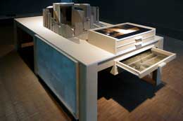 EDUARDO MATOSMesaGALERIA QUADRADO AZUL (ANTIGO ESPAÇO EM LISBOA) Largo dos Stephens, 4 1200-457 Lisboa 19 MAR - 30 ABR 2009 A Arqueologia das cidades utópicasA mesa enquanto objecto do quotidiano está longe de exercer o fascÃnio fetichista que é protagonizado por outras peças que povoam a nossa vivência diária. Apesar de eventuais complementaridades com a mesa, a cadeira foi sendo sempre mais autonomizada enquanto corpo, capitalizando em si a representação e o experimentalismo da arquitectura e do design, dos quais alguns exemplos nos povoam a memória. Basta pensar em Alvar Aalto, Gerrit Thomas Rietveld, Warhol e a série “Electric Chairâ€, Kosuth (“One and Three Chairsâ€, 1965), e até mesmo em Joseph Beuys e a “Fat Chair†ou nas inúmeras cadeiras de Van Gogh. Eduardo Matos (n.1972) veio devolver protagonismo à mesa, na Galeria Quadrado Azul em Lisboa, onde nos apresenta entre outras peças “Mesa II – Jardim†que assume a centralidade do espaço fÃsico, revelando-se enquanto campo e corpo magnético que agrega em si desenho, vÃdeo, escultura e fotografia. Juntos, estes parecem evocar os vestÃgios de uma grande cidade onde as imagens projectadas em loop sobre acrÃlico escuro rodeado de madeira poderiam fazer parte de um exercÃcio de arqueologia onÃrica que remete para as cidades futuristas de Enki Bilal, ou para um cenário de caducidade progressiva e inevitável que é recorrente no trabalho de Eduardo Matos. O discurso visual de Eduardo Matos privilegia a ideia de simulacro na ambiguidade encontrada e fabricada entre autenticidade e ficção, onde a preocupação com o rigor cénico e técnico parece ficar por breves momentos em segundo plano face à relação longa, demorada e intimista que mantém com os seus objectos, e o cuidado em estudá-los e observá-los detalhadamente. Quando em “Expediçãoâ€, diaporama em dupla projecção de slides, nos damos conta que as imagens que vemos são a consequência da estadia e observação prolongada num terreno baldio na cidade do Porto, quase que nos arriscamos a comparar o modus operandi de Eduardo Matos com a da metodologia etnográfica. No entanto o seu discurso estará mais próximo, e novamente, de uma arqueologia das cidades de agora e dos seus despojos mais ou menos recentes, das quais Eduardo Matos vai subtraindo as camadas que nos dará a ver. Em “Mesa†temos presente dois tipos de lugares. Os lugares de “Expediçãoâ€, “O planoâ€, “Longos dias numa viagem†que se caracterizam por um registo mais documental e quasi etnográfico, lugares à margem das grandes cidades e dos seus centros, e temos também “Mesa II – Jardimâ€, ilusão de cidade, proposta ou manifesto urbano. Ao mesmo tempo a cor e o som fazem também parte de “Mesaâ€, num bricolage cuidado, onde o ritmo mecânico de algumas peças é gerido minuciosamente e a presença da cor é-nos dada através de estudos do corpo do artista, dos elementos que o rodeiam, entre a pele, a mesa, o jardim e a galeria. Mas voltemos à metodologia de trabalho de Eduardo Matos. Nela podemos encontrar algumas pistas que nos levam a inverter o conceito de “site-specificâ€, e pensar o seu trabalho não a partir de peças concebidas em função de um lugar, mas de lugares que dão origem a peças, onde a partir da observação dos mesmos a peça se vai construindo e adquirindo corpo. Podemos então falar de um trabalho que tem uma relação privilegiada com os espaços e com os tempos, tomando-os com centralidade total, e representando-os através das leituras intimistas que o artista mantém com os sÃtios que escolhe observar: “Uma notÃcia de jornal dava conta de um terreno baldio, existente na cidade, um espaço encravado entre edifÃcios urbanos e uma via rápida de automóveis, falava de um lago e de uma intensa flora que tinha crescido espontaneamente à sua volta; arbustos, plantas e flores que formavam uma espécie de barreira ao exterior e que dava a ideia de se tratar de um micro-ambiente. Curioso com o local, por lá fui passando e, sem guião e sem pressas, por lá estive à espera que desse trabalho surgisse então o trabalho.†(1) É a partir de parcelas da realidade que Eduardo Matos constrói algo que se pode assemelhar a uma utopia urbana, utilizando fragmentos das cidades, desterritorializando os lugares, erigindo ruÃnas e vacilando entre o caos e a tranquilidade subterrânea das metrópoles: ora somos bombardeados com a omnipresença excessiva das imagens, ora nos deparamos imersos no silêncio fantasmagórico de um túnel. Ao mesmo tempo, está omnipresente a procura de lugares de limbo, longe no entanto dos “não-lugares†de Marc Auge (2), que Eduardo Matos procura “preservar†através do seu trabalho. É desta forma que a sua obra adquire uma certa propensão documental, que encontramos também na prática arqueológica: registar e representar os lugares de hoje de forma mais ou menos distorcida ou ficcionada para que no futuro nos possamos questionar sobre a sua veracidade ou autenticidade. É no fundo um falso documentarismo, assente no discurso e no pressuposto do simulacro. Se os consumidores do espaço contemporâneo são solicitados a contentar-se com palavras, felizmente Eduardo Matos dá-nos as imagens. NOTAS (1) in www.localworlds.org/pt/participantes/eduardo-matos/ (2) AUGÉ, Marc (1994), Não-lugares: introdução a uma antropologia da sobremodernidade. Bertrand Editora.