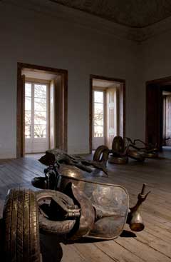 COLECTIVATerceiro Ciclo de ExposiçõesCARPE DIEM ARTE E PESQUISA Rua do Século, 79 Bairro Alto 1200-433 Lisboa 11 DEZ - 06 MAR 2010 O terceiro programa de exposições patente no Carpe Diem – Arte e Pesquisa, até 20 de Fevereiro, vem confirmar a solidez e a pertinência de um projecto não comercial, alternativo e ambicioso. No Palácio Pombal (Rua do Século, Lisboa) podem ser usufruídas um conjunto de obras em diferentes media da autoria de sete artistas de nacionalidades distintas: Fernando Sánchez Castillo (Espanha), José Spaniol (Brasil), Mariana Viegas (Portugal), Rui Horta Pereira (Portugal), Joana da Conceição (Portugal), João Serra (Portugal), Liene Bosquê (Brasil) e Miguel Pacheco (Portugal). Lourenço Egreja, Paulo Reis e Rachel Korman, coordenadores do projecto, voltam a assumir o comissariado conjunto deste ciclo. Agrupar discursivamente as obras que se encontram dispersas pelo espaço numa temática comum e aglutinadora não tem sido um dos objectivos delineado pelo Carpe Diem – Arte e Pesquisa na estruturação do seu programa expositivo. No entanto, nas propostas agora apresentadas, e à semelhança das anteriores, predominam peças de natureza site-specific que, materializadas em diferentes suportes, privilegiam a relação com a impositiva arquitectura do palácio, bem como o recurso pontual a materiais disponíveis que são reutilizados (como acontece nas propostas de José Spaniol ou Rui Horta Pereira). A diversidade da proveniência geográfica dos artistas e uma preponderância de trabalhos que, de forma mais ou menos explícita, pressupõem reflexões contestatárias de ordem social e política, historicamente contextualizadas e perspectivadas, podem ser apontadas como tendências óbvias. A disponibilização de algumas salas num formato que se assemelha a residências artísticas é outros dos pontos fortes distintivos do projecto. As propostas assinadas por Joana da Conceição, João Serra, Liene Bosquê e Miguel Pacheco, vencedores de algumas das anteriores edições do Prémio Anteciparte, abordam a temática da arquitectura como espaço de representação e simbolismo e agregam uma das propensões que tende a ser enfatizada pela maioria dos artistas emergentes que desfrutam de experiências curriculares no estrangeiro: reflexões em torno da estranheza potenciada pela originalidade das especificidades geográficas e sociais com que se confrontam. As instalações de Joana da Conceição, dispersas pelo interior e exterior do edifício (remetendo para a land art), agregando desenho e escultura, aludem à Austrália, enquanto a proposta de João Serra, materializada numa instalação em torno da fotografia, remete para a sua passagem pela Rússia. Também Mariana Viegas apresenta um vídeo filmado no antigo jardim zoológico de Berlim Leste. Numa exposição que agrupa uma diversidade tão evidente de autores e propostas é inevitável que algumas assumam protagonismo sem que, no entanto, essa contestação coloque em causa a qualidade e pertinência da generalidade das obras que compõem este terceiro ciclo expositivo. Um dos desenhos de grandes dimensões que Miguel Pacheco instalou na monumental escadaria do palácio, a grande escultura em madeira com que Rui Horta Pereira nos recebe na primeira sala, as propostas de Joana da Conceição e, definitivamente, o fabuloso vídeo “Pegasus Dance”, coreografia para caminhões anti-motim de Fernando Sánchez Castillo, são estrelas maiores numa contestação que ilumina.