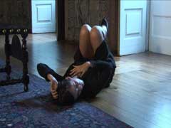ANA RITOMelancoliaCAPC - CÃRCULO DE ARTES PLÃSTICAS - SEREIA Piso Térreo do EdÃficio da Biblioteca Municipal Parque de Santa Cruz, rnJardim da Sereia 3001-401 Coimbra 20 MAI - 30 JUN 2006 Ana Rito apresenta três novos projectos no espaço do CAPC. Dois vÃdeos e uma instalação que inclui escultura e fotografia. “On Stage†e “Melancolia†foram ambos filmados na Sala das Batalhas do Palácio do Marquês de Fronteira. No primeiro, ensaia-se a construção de um corpo que foi intencionalmente encenado para apresentar uma narrativa que não é linear. Não conta uma história, pelo contrário, coloca o espectador perante momentos distintos: um corpo melancólico, suicida, em vertigem, um corpo em espera, em perda ou um corpo em lamento. A complexidade da expressão é da ordem do non sense, do absurdo. A narrativa, a existir, será fruto de um exercÃcio externo que apenas pode ser potenciado por quem visione o vÃdeo. No dia da inauguração, e no espaço de projecção desta vÃdeo-instalação, foi realizada uma performance pela actriz Maria Gil. Em “Deliriaâ€, tÃtulo da performance, não é a acção que potencia o corpo que se desenvolve no tempo; antes, trata-se de um corpo possuidor de toda e qualquer possibilidade de acção que vemos arrastar-se pelas paredes da sala estabelecendo uma relação de continuidade e/ou confronto com as imagens projectadas. Durante os oito minutos da performance, os mesmos da duração do vÃdeo, as alegorias bélicas sugeridas pela Sala das Batalhas do Palácio de Fronteira foram absorvidas pela performer que se debate corporalmente, primeiro em vertigem, depois em lamento numa permanente contrariedade entre o que é percepcionado no vÃdeo e o que é fisicamente visionado, sentido ou saboreado no sal oferecido aos espectadores na sala. A esquizofrenia dos contrastes é evidente. O silêncio frio das imagens do vÃdeo, os movimentos fechados, contidos, vestidos e medidos pela actriz Sara de Castro confrontam-se numa virulência quase muda com os murmúrios, os lamentos, as frases soltas, os segredos, os olhares invasores da performer, as citações de AlBerto – tempo branco, tempo de nenhuma paixão –, a nudez que se oferece ao olhar… Defrontam-se formas corporais, corporizam-se emoções e estabelecem-se relações de intimidade entre espaço e corpo, entre o corpo e a arquitectura, entre estes e o observador, construindo-se, como sublinha a artista, “uma acomodação para a quietude que não existe em mais nenhum lugar, pois tudo o resto lá fora tende a escapar à s implicações silenciosas do aquiâ€. O confronto que se desenha entre “On Stage†e “Deliria†pressente-se igualmente nos outros dois projectos. “Parachute†é uma instalação que integra duas enormes sombrinhas de sol produzidas com napas, fitas de cetim e que foram suspensas a diferentes alturas no tecto da primeira sala do CAPC. No mesmo espaço, colocadas axialmente, duas fotografias da Sala das Batalhas que apresentam duas personagens – as actrizes Sara de Castro e Maria Gil corporalizam as personagens. Uma de negro, outra de branco, ambas em posição invertida despidas da cintura para baixo revelando a sua sexualidade. O mesmo espaço, a mesma arquitectura, dois corpos, dois opostos, uma só identidade. A antinomia mantém-se quando se relacionam as duas fotografias com as sombrinhas. Sexualidade versus santidade é um tema recorrente nos projectos da autora (“Verónica†e “Muteâ€), e em “Parachute†mantém-se actual o interesse por ambos os conceitos. ExplÃcita a sexualidade e implÃcita a santidade, “Parachute†assume formalmente o desenho dos baldaquinos, construções que referenciavam a distinção religiosa, e cuja suspensão revela a ascese investigada pela artista. Também em “Melancolia†o espectador é confrontado com uma identidade que se transmuta, com um corpo sem invólucro. “(…) Nasci sem pele (…) por acaso sabem vocês o que é ser tocado por um ser humano?†diz o texto de Anaïs Nin retirado de “Casa do Incesto†e recitado por uma personagem andrógina que, de pé sobre uma cadeira colocada no centro da Sala das Batalhas, lê pausadamente o texto. Mais uma vez, o carácter bélico das dicotomias: corpo vestido, corpo sem pele, masculino versus feminino… A objectualização emotiva do corpo, a obsessão pela identidade, a sexualidade e a santidade são os conceitos centrais explorados por Ana Rito nesta exposição.
