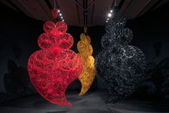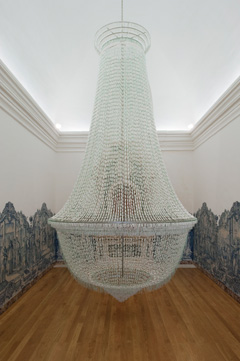 JOANA VASCONCELOSSem RedeMUSEU COLEÇÃO BERARDO Praça do Império 1499-003 Lisboa 01 MAR - 18 MAI 2010 Joana Vasconcelos é uma artista que não reúne consensos mas ainda assim, tem agora no Museu Berardo uma exposição retrospectiva. Esta exposição é invulgar, porque Joana Vasconcelos tem 16 anos de carreira e 38 de vida, e estes não são os tempos comuns para um artista ter uma retrospectiva. Mas também não é comum uma artista portuguesa de 38 anos ter obras à venda na Christie’s. Poderemos também questionar se o facto de estar representada nesta empresa de leilões faz de Joana Vasconcelos uma artista de um valor artÃstico excepcional ou apenas de um excepcional valor comercial. Em todo o caso Joana Vasconcelos é uma artista profÃcua e trabalhadora, que desenvolveu um conceito inovador e o explora, esperemos, até à exaustão. Esta antologia no Museu Berardo, com comissariado de Miguel Amado, tem a vantagem de nos mostrar um conjunto de obras de Joana Vasconcelos que vão desde as mais famosas, como a peça “Marilyn†(2009), até obras mais recentes, mas também nos mostra obras menos conhecidas e quiçá, menos comerciais, mas que não deixam por isso de contribuir para a sua coerência artÃstica. Joana Vasconcelos bebe tanto de Marcel Duchamp e dos seus ready-made como do artesanato português ou apropria-se simplesmente de objectos kitsch do dia-a-dia transformando-os e dando-lhes uma nova leitura, normalmente mordaz e irónica. As obras de Joana Vasconcelos têm esse poder: o de nos pôr a olhar para nós portugueses com um sorriso amarelo. Mas pelo peso da sua carreira internacional, parece que é um sentimento bastante universal. “Contaminação†(2008-2010) introduz-nos na exposição de uma forma quase brincalhona, obrigando-nos a saltar por cima dos enchimentos coloridos que compõem uma estrutura excessiva e carnavalesca de cor, tecidos e rendas. Encontramos aqui ecos de Annette Messager e dos seus “Articulated Disarticulatedâ€, 2001-2002. Também há um claro paralelo entre os trabalhos de uma e de outra quando se debruçam sobre a condição feminina. Há por vezes artistas femininas que não utilizam o seu género. São artistas, apenas. Joana Vasconcelos adopta a postura de uma artista de género feminino, o que não faz dela uma artista feminista. Podemos vê-lo em “Marylinâ€, um sapato que podia ser o da Cinderela, apanágio do amor perfeito, mas construÃdo com tachos; em “Burka†(2002), uma burka com cabeça de mulher que é suspensa e atirada a toda a velocidade para o chão com uma brutalidade à qual não conseguimos ficar indiferentes. Já o recurso à utilização de objectos (neste caso) exclusivamente femininos, em “A Noiva†(2005), é muito mais um recurso estético ou estilÃstico do que um statement feminino ou feminista. Há duas obras surpreendentes nesta antologia: “Passarelle†(2005) e “Jardim do Éden†(2009) ambas pela interacção que pedem ao visitante e pela surpresa que lhe provocam. Em “Passarelleâ€, uma estrutura mecânica suspende cães de faiança pelo pescoço com coleiras de couro. Esta estrutura desloca-se lentamente se o visitante carregar num pedal, mas até parece que é a grande velocidade, tal é a agressividade do dispositivo. Com a deslocação os cães chocam uns contra os outros e vão-se partindo, numa espécie de metáfora de matança do piroso. Em “Jardim do Éden†entramos numa sala com um labirinto digno de Minotauro, povoado por flores plásticas fluorescentes, cuja única luz vem precisamente das flores. Estas flores emitem também um ruÃdo de fundo que nos traz à memória o barulho de cigarras nas noites quentes de verão. É pena que este ambiente não seja melhor preservado de ruÃdo externos. Antes desta obra temos os três “Coração Independente†com a música da Amália, que não está confinada à quele espaço e polui a sonoridade do “Jardim do Édenâ€. Joana Vasconcelos tem para uns, o mundo a seus pés, para outros não é mais do que uma artista com uma grande capacidade de auto-promoção que lhe permitiu entrar nos circuitos certos. É contudo, inegável que é neste momento um nome incontornável da arte portuguesa. Como só tem 38 anos e uma capacidade imensa de trabalho, veremos como será o futuro.