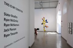 COLECTIVAThis is my ConditionGALERIA FILOMENA SOARES Rua da Manutenção, 80 1900-321 Lisboa 24 ABR - 11 SET 2010 Numa altura em que já não cremos em meta narrativas (ou talvez sim) e já depois do choque inicial com aquilo que se pode denominar de modos culturais dominantes, a Galeria Filomena Soares apresenta uma exposição que vive e apresenta um tipo de pós existência que é o contexto em que questionamos valores absolutos mas em que sabemos não ser possÃvel viver totalmente sem os mesmos. A exposição intitula-se “This is my Condition†e é uma colectiva com os artistas Slater Bradley, Ryan McGinley, Ryan McNamara, Jack Pierson e Ryan Trecartin, com curadoria de Alexandre Melo. A mostra divide-se em dois momentos. Na primeira sala apresenta uma enorme blackbox com um vÃdeo de Slater Bradley que é antecedido por fotografias sobre as quais o artista interveio graficamente e na segunda sala expõem-se vários trabalhos de McGinley, McNamara, Pierson e Trecartin e também de Slater. A blackbox que suporta o vÃdeo de Slater Bradley é imensa, o resultado coincidentemente espectacular, ou seja, o excesso da peça tem um paralelo na sua apresentação formal; de contemplativa, a peça torna-se emocional, romântica e no entanto eficaz; esta podia ser uma mostra por si só. O vÃdeo “Boullevard of Broken Dreams†é uma encenação nas ruas de Nova Iorque protagonizada pelo seu actor-fetiche e de alguma forma o seu alter-ego Benjamin Brock. Um trabalho melancólico no qual o autor se auto retrata (pela similitude com o actor) num desprezo pelo que o rodeia, ou melhor pelos valores que o rodeiam, desde a passagem frente à loja da Cartier, Versace e Emporio Armani até ao “confronto†com um transeunte que entra numa limousine protegido pelo seu motorista. A roupa de Brock a referenciar um James Dean que puxa de um maço de tabaco é aqui e neste contexto quase um acto polÃtico. Bradley (Brock) procura um nada através de um olhar vazio e desinteressado como se observasse o que o rodeia envolto num manto de invisibilidade, o mais próximo é a indiferença ou num extremo o desrespeito. Não anda longe do adolescente incompreendido. O conteúdo da sala principal parece pertencer a um mesmo artista que na polimorfia da sua abordagem toca diferentes abordagens ao mesmo tema. Ou diferentes temas dentro de um “meta temaâ€. Desde a criação de novos sentidos a partir de sÃmbolos já batidos e estoirados até à candura das imagens que abordam sempre uma sexualidade que parecendo evidente se torna pouco importante, transformando corpos em pessoas em ambientes desprovidos de marcas da sociedade, tal como os intérpretes estão despidos das suas roupas que nos permitiriam enquadrá-los em termos sociais, intelectuais, etc. Ou será que a falta de roupas nos permite enquadrá-los de forma mais directa? Se sim, enquadramo-los no paradigma do jovem que renega tudo o que lhe é ideologicamente dado e anterior. O jovem que nega tudo a não ser a companhia (mais do que presença) de outros jovens (seus pares) que são o suporte para uma vivência fora do “alcance do radar†ainda que só e apenas por alguns momentos. São momentos que, mais do que encenados parecem de liberdade. É desconcertante o vÃdeo de Ryan McNamara, cujo tÃtulo se refere à s últimas palavras ditas por Christine Chubbuck: repórter televisiva que cometeu suicÃdio durante uma emissão em directo. É uma performance realizada pelo próprio que configura segundo o autor uma catarse sobre o facto de não se ter tornado, como era seu sonho de criança, num apresentador de programa de variedades. O tom crÃtico da peça tem algo de solene na forma como a citação serve de enquadramento, apesar do tom cómico da mesma, criando um paradoxo próximo de um grito abafado. As peças tridimensionais de Jack Pierson operam a partir da memória mas configuram novos sentidos sobretudo perante um público europeu que conhece estes sÃmbolos sobretudo a partir do cinema e não por experiência própria. É uma mistura inesperada entre um mundo ocidental decadente e outras civilizações já desaparecidas como o Império Azteca referenciado pelo tÃtulo de uma das peças. As esculturas são de uma beleza surpreendente que reflecte uma decadência histórica que não é necessariamente negativa, em objectos usados e envelhecidos que em civilizações orientais têm um valor intrÃnseco pelo facto de serem isso mesmo: portadores das marcas que o próprio tempo lhes conferiu. Trecartin faz-se representar por um dos seus primeiros vÃdeos: “Tommy Chat just emailed meâ€. É um objecto que deriva mais de uma encenação barata “postada†na internet pejada de efeitos do que uma referência ao cinema. Apesar da palete de cores relembrar trabalhos dos anos 80 filmados analogicamente, os temas remontam a uma geração internet e prenunciam as redes sociais que já começavam a mostrar o seu impacto. O trabalho é frenético e quase insuportável. É interessante também por isso. Mas é sobre o trabalho de Slater Bradley que cai dir-se-ia quase obrigatoriamente a atenção do visitante tanto pela potência dos trabalhos como pela clara importância que lhe é dada pelo curador da mostra. É uma exposição com trabalhos de artistas que embora da maior importância para uma reflexão da produção na actualidade não seria de outra forma fácil de presenciar em território nacional. Não é um tema “confortávelâ€, sobretudo na conjuntura actual e em especial no contexto de uma galeria comercial e por isso mesmo merece uma especial referência. A exposição é melancólica e aborda problemáticas actuais de uma forma quase adolescente, no entanto há um certo nÃvel de energia aqui que parece não poder ser obtido de outra forma. Ao excesso de um grito jovem sobrepõe-se uma reflexão sobre esperança numa Era que teima em não se definir, fazendo disso a sua definição.