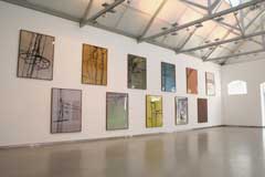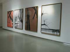 JOÃO PENALVAJoão PenalvaGALERIA FILOMENA SOARES Rua da Manutenção, 80 1900-321 Lisboa 11 MAI - 16 JUN 2006 De novo o JapãoO trabalho artístico de João Penalva sempre se revelou atento aos cruzamentos entre texto e imagem, visão e linguagem. As narrativas desse modo subtilmente sugeridas, envolvendo uma estreita ligação entre o cuidado formalista e uma muito particular dimensão conceptual, têm promovido uma das obras mais singulares do panorama artístico português contemporâneo. Na Galeria Filomena Soares, João Penalva apresenta agora duas séries distintas que confirmam o apelo pluridisciplinar do seu universo criativo. Na primeira sala, numa montagem de rigor e equilíbrio, é apresentado um conjunto de fotografias de grande escala que povoam a verticalidade das enormes paredes desse espaço expositivo. “Olhando para Cima em Osaka”, remete-nos para uma leitura poética sobre o encontro simultaneamente formal e informe que nos é dado pelo intrincado dos cabos de electricidade que invariavelmente se acumulam no topo dos postes de Osaka, mas que podiam muito bem ser de qualquer outra cidade nipónica. O Japão é, aliás, uma referência recorrente no imaginário deste artista, que já noutras ocasiões desenvolveu projectos no país do sol nascente, nomeadamente em 1997, em Hiroshima. Desta vez, recorrendo a filtros de cor que exploram o contraste gráfico próprio dessas imagens, João Penalva olhou para cima e captou a linearidade orgânica desses cabos que parecem desenvolver uma bizarra dimensão abstracta de algo que é hoje essencial à comunicação entre os seres humanos. Essa acumulação de cabos de linhas telefónicas ou de electricidade não obedece no Japão a qualquer programa planeado, antes evolui ao sabor circunstancial das necessidades entretanto reveladas. Assim, a omnipresença visual desses postes confirma uma espécie de metáfora sobre a paradoxal (in)comunicabilidade e isolamento crescentes da idade contemporânea. Por outro lado, a condição destas imagens fotográficas remete-nos sobretudo para uma dimensão puramente estética e visual, de qualidade eminentemente pictórica, sublinhada ainda pela extraordinária dimensão do seu formato, bem como pelo seu aparato de apresentação em série, de que a presente exposição constitui apenas uma pequena amostra, num universo de 300 trabalhos elaborados em torno do mesmo tema. Por contraste, na segunda sala, somos confrontados com a dimensão processual mais comum em João Penalva, ou seja, o pequeno formato de trabalhos compostos por texto e imagem. Esta segunda série, intitulada “Kaki” e constituída por um conjunto de polípticos de distintas dimensões, mostra-nos, em tons suaves e texturados, diversas imagens de flores e objectos a elas associados, como jarras ou vasos. Estas imagens são acompanhadas de elementos narrativos e biográficos de algumas das pessoas que se dedicam à cultura floral japonesa do Ikebana. Entre as técnicas dessa arte e a elaboração de pequenas histórias que emprestam a estes trabalhos uma subtil mas pregnante espiritualidade, João Penalva evoca, uma vez mais, alguns aspectos particulares desse modo de existir há muito enraizado na civilização japonesa.
