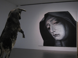 SANTIAGO IDÁÑEZSem TítuloCENTRO DE ARTE CONTEMPORÂNEA GRAÇA MORAIS Rua Abílio Beça 105 5300–011 Bragança 23 OUT - 23 JAN 2011 Que há de comum entre crescer em Luetjenburg, Alemanhã, perto de Kiel e tornar-se músico e escritor, como o alemão Rocko Schamoni, e crescer em Jaén, Espanha, perto de Granada, e tornar-se artista plástico, como o espanhol Santiago Ydáñez? Podemos começar por procurar o sentido em Small Town de Lou Reed e John Cale. Algumas evidências biográficas de autores actuais sugerem, com o conteúdo da sua produção, que “there is only one good use for a small town, (…) one good thing about small town, you know that you want to get out” (1) pode ter apenas sido uma afirmação em proximidade simulada à adolescência. Small Town fazia, no álbum Songs for Drella, parte dum grupo de temas apresentado em nome de Warhol, na primeira pessoa. A representação que faz da importância da small town pode estar menos no que foi dito e mais no facto de ter, de todo, sido escrita. Songs for Drella foi composto precisamente numa cidade, Nova Iorque. Para Andy Warhol no rescaldo duma época que, no prolongamento da radicalidade conceptual dos anos sessenta, desviou irreversivelmente o que é relevante ser considerado na produção artística bem como, mais além, aquilo que merece ser considerado na realidade ela mesma. No tema glorificam a cidade mas a necessidade duma referência à vila num álbum dedicado ao Pittsburguense - “there’s no Michelangelo coming from Pittsburgh” (2) - Warhol continha elementos cuja extensão total não poderiam avaliar. Dorfpunks (punks de aldeia), romance de Rocko Schamoni editado em 2004, revisita a sua experiência adolescente numa vila de província e as vicissitudes do seu percurso punk. Trata-se duma novela autobiográfica, mas o que está em protagonismo é não a sua adolescência, mas a verdadeira sede da cultura urbana ocidental, neste caso o punk. A mostra “Santiago Ydáñez – Sem Título”, comissariada por Jorge da Costa para o Centro de Arte Contemporânea Graça Morais, em Bragança, do qual também é director, é aquela a que se acede quando alcançado Trás-os-Montes. Grande parte são trabalhos emergentes do contexto de Bragança, resultantes duma investigação concreta realizada na região, centrada maioritariamente na iconografia e festividades católicas e pagãs. Contudo, acedemos ao complexo museológico desenhado pelo arquitecto Souto de Moura não necessariamente a partir da Serra do Marão ou atravessado o Douro mas antes através de um site acedível em raios concêntricos a partir de diversas proveniências, Munique, Granada, Valência, Alicante, Berlim, cidades nas quais Ydáñez também recentemente trabalhou e que participam cumulativamente no seu trabalho (3). Os cerca de trinta trabalhos expostos incluem pintura, instalação e desenho. Esta mostra explora para Bragança preocupações artísticas anteriores do autor, alojadas num patamar antropológico para o qual a singularidade de cada uma daquelas localidades é sobreponível. A comprovar, a sua filiação artística “reconfigura, no espaço bidimensional, fragmentos de todo o expressionismo europeu, desde Ergon Schiele, Kätie Kollwitz, Edward Munch, Ernst Ludwig Kirchner, Oskar Kokoska, Willem de Kooning, Francis Bacon, Lucien Freud, Georg Baselitz, até à tradição espanhola dos retratos no seu período barroco (...)” (4). À entrada no Centro de Arte Contemporânea Graça Morais, na primeira sala da mostra, a antecipar a subida à zona principal da exposição, um auto-retrato de Santiago Ydáñez é a peça que nos encontra frontalmente. O retrato é um formato central no seu trabalho, com um núcleo de entendimento alagável aos restantes formatos. Recuando cinco anos, em “Paintings”, mostra individual na galeria Invaliden 1, Berlim, Ydáñez apresentou “Sem título” (5), uma peça a partir do seu próprio rosto na qual retomava o tema católico da Ressurreição de Diógenes, a partir da obra do pintor barroco Juan Sánchez Cotán (6), sobre a fundação da congregação dos Cartuxos. Em antecipação, o convite da mostra alargava o sentido desse mesmo trabalho, central na exposição. Reproduzia a fotografia dum homem debruçado sobre a margem nevada dum lago, bebendo directamente na superfície da água. A sua pessoa é identificável mas o seu rosto apresenta-se irreconhecível. Sob uma cobertura uniforme branca apenas a abertura dos olhos é disponibilizada. A imagem fotográfica com carácter eminentemente performativo anunciava uma exposição muito diferente: a representação pictórica, em dois por três metros, da emersão da figura dum homem que, conforme à lenda de Diógenes, afasta as vestes do seu corpo no momento da ressurreição. O retrato avança repetidamente no trabalho de Santiago Ydáñez através dum conceito performativo, evoluindo em elementos auto-referenciais. Estes sugerem repetidamente um papel de ordenadores antropológicos do universo. Transposto da esfera pessoal para a esfera sociocultural colectiva, esse mundo partilha as preocupações procuradas pela história e teoria da arte na recente produção artística, sequente à homogeneização acelerada, no rastro do capitalismo global. Exactamente aquele universo em que “a singularidade, e aquilo que a suporta como o que é elevado, isto é, os ombros do gigante de onde ela conquista amplitude e a extensão da sua visão, é aquilo que, saindo do vulgar, é, nesse sentido, literalmente extra-ordinário” (7) conforme Bernard Stiegler se refere precisamente à relação entre cultura e economia na definição de Otium e Negotium (8). Uma cadência dinâmica de antónimos é perceptível ao longo da mostra. Disso é exemplo a oposição de retratos de rapazes e outros de homens adultos, sérios e carregados. Os rapazes são protagonistas de festas iniciáticas. Os homens são toureiros que Ydáñez considera terem tido uma 
