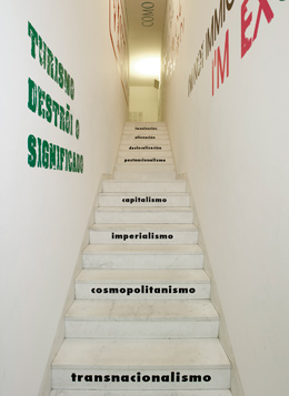 COLECTIVAÀs Artes, Cidadãos!MUSEU DE SERRALVES - MUSEU DE ARTE CONTEMPORÂNEA Rua D. João de Castro, 210 4150-417 Porto 22 NOV - 13 MAR 2011 O convite surgiu da Comissão para as Comemorações do Centenário da República Portuguesa: ao Museu de Serralves era lançado o desafio de organizar uma exposição em torno das relações entre a arte e a política. A João Fernandes, director do Museu, juntou-se Óscar Faria como comissário convidado, crítico de arte já ligado à organização de exposições de cariz semelhante como “Quartel – Arte, Trabalho, Revolução”, em 1999 e 2004. “Às Artes, Cidadãos!” apresenta propostas de 30 artistas e colectivos de vários pontos do globo seleccionados pelos comissários quer pelo teor do seu trabalho, quer por pertencerem à geração pós-Muro de Berlim, ou seja, todos nascidos a partir do ano da sua construção, 1961. Recuperando a verso da Marselhesa, o hino francês que dá o mote à Revolução Francesa e, consequentemente, à república e à política contemporânea – “Aux armes, citoyens!” – “Às Artes, Cidadãos!” como que reconduz a leitura dessa noção de intervenção social e política original para um entendimento da arte enquanto ‘arma’ de alerta para as consequências das linhas políticas das sociedades contemporâneas sobre si próprias. Embora os comissários rejeitem a filiação das obras que integram a exposição com arte política, a exposição levanta questões sobre uma arte comprometidamente política na intenção, sobre uma linha de trabalhos artísticos claramente empenhados em desafiar quer o pensamento crítico sobre a sociedade contemporânea, quer as formas que a arte pode assumir numa vertente de activismo político e social. E se bem que não possamos falar de uma ‘arte política’, no sentido de uma arte comprometida com uma determinada ideologia e/ou ao serviço de um sistema político, é possível entrever uma preocupação que atravessa toda a exposição: o desafiar desse mesmo conceito. O conjunto de obras que integram “Às Artes, Cidadãos!” – no Museu de Serralves e nalguns pontos espalhados pela cidade do Porto – resulta assim num grupo heterogéneo mas bastante coerente na apresentação de um discurso expositivo que sobre as actuais abordagens da arte ao político. Esta heterogeneidade faz-se notar não só pela diversidade de práticas – da fotografia e do vídeo à instalação, da performance ao site-specific, entre outras – mas também pelas preocupações múltiplas que atravessam os discursos dos autores, e os modos como as resolvem. São abordadas questões como a emigração, a exclusão, a opressão ou os conflitos. E a partir de pontos de vista tão diversos como o historicista, o sociológico, o antropológico ou o documentalista. Dos trabalhos dos artistas portugueses – entre os quais André Romão, António de Sousa, João Sousa Cardoso, Mariana Silva – destaca-se a obra de Rigo, Fátima na Ribeira Seca. Um trabalho que não só critica um episódio recente na ilha da Madeira, de onde o artista é natural, relacionado com a marginalização do pároco local pela igreja e da sua defesa pela população, como revela uma cumplicidade activista na extensão da peça a uma tela afixada numa parede cega na zona da Ribeira do Porto com uma frase utilizada pela reacção popular de então: Isto, o Povo Não Esquece. Numa abordagem à questão da emigração, a colombiana Carolina Caycedo convidou trabalhadores da área da cultura emigrados em Portugal a desenvolverem consigo um projecto a partir da leitura e discussão em conjunto de textos e questões individuais relacionadas com a sua própria deslocação e da noção de fronteira e estrangeiro. Daí resultou uma selecção de frases posteriormente afixadas pelas paredes, chão e tecto das escadas que conduzem ao piso inferior do museu. O australiano Tom Nicholson, num projecto assumidamente activista, oferece aos visitantes um livro constituído pelas primeiras páginas dos livros que ele próprio ofereceu a bibliotecas de Díli, em Timor, pedindo em troca que deixem um exemplar de uma obra de referência que o artista fará depois chegar a Timor. A palestiniana Ahlam Shibli apresenta um projecto fotográfico particularmente interessante do ponto de vista da consciência e reconstituição histórica sobre a população de Tulle, cidade francesa. Retrata-se aqui eloquentemente a perversidade da guerra e dos conflitos humanos, através de registos e testemunhos pessoais e comunitários de uma população que tanto foi alvo de massacre pelas tropas nazis no final da II Guerra Mundial, como, anos mais tarde, se tornou ela própria parte do opressor nas lutas pela independência na Indochina e na Algéria. Ainda que na perspectiva dos comissários esta seja uma exposição do ponto de vista dos vencidos e não dos vencedores, este é um dos trabalhos que mais directamente questiona essa postura de unilateralidade: os papéis de vencido e de vencedor com alguma facilidade e frequência se invertem nos lugares da história.
