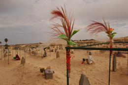 PRÓXIMO FUTUROFronteiras. Encontros de Fotografia de BamakoFUNDAÇÃO CALOUSTE GULBENKIAN Av. de Berna, 45 A 1067-001 Lisboa 14 MAI - 28 AGO 2011 “Fronteiras” - Encontros de Fotografia de Bamako mostra-nos as contradições da ideia de globalização, revelando como ao mesmo tempo “se pratica o esbatimento das fronteiras mas por outro se erguem muros destinados a protegê-las” (1). Nesta exposição, a existência de fronteiras não se extingue nas relações territoriais mas pode ser aportada a uma multiplicidade de vertentes sociais e políticas, religiosas e ideológicas, culturais e identitárias. Entre a cultura ocidental e não ocidental poder-se-á falar numa proximidade negociada, pela vinculação a um conjunto de interesses que vêm de estruturas de poder que sedimenta, sem atenuar, as desigualdades e as assimetrias. Novas conjunturas e representações envolveram um renovado entendimento sobre a ideia de globalização onde já não se pode “ignorar a história, política, social e cultural não-ocidental e também o papel do império na construção das economias ocidentais” (2). Para este entendimento muito contribuiu a Documenta XI comissariada por Okwui Enwezor que, entre outras conclusões e desmistificações, fez ver “como a realidade da globalização transformou o mundo moderno, incluindo a produção e exposição, onde artistas inevitavelmente começaram a usar o seu trabalho para reflectir estas mudanças profundas” (3). Os dípticos da série “Geração”, 2004, de Arwa Abouon introduzem a ideia de identidade ao pretender aferir do sentido da representação geracional e a dimensão da sua importância na tradição e cultura libanesa. No díptico “Sem Título (pai e filho)” denota-se um sentido mais solene e sacrificial e tomada de consciência do peso da família na passagem de uma herança, que pode ser entendida como um princípio de controlo e ausência de liberdade. Ismail Bahri enuncia os vários momentos do vídeo “Ressonâncias” através de todo um sistema referencial não abstracto e naturalizado: “película ensombrada da noite; película perturba o horizonte” verificando-se um universo de discursos não ocidentalizados. Tal como a linguagem, a identidade vincada nas expressões do imaginário, que é um tema visível nos trabalhos de Zac Ové constituem fortes barreiras ideológicas. “Os Malianos de Paris” de Mohamed Camara mostra um enquadramento familiar construído de apropriações culturais formados a partir de contextos de origem e de vivência, sublinhando que uma identidade pode ser feita de múltiplas identidades. “Miss D’Vine” é uma série de fotografias de Zanele Muholi que espelha o deslumbramento com o Ocidente e toda a sua cultura pop e de espectáculo. Os trabalhos estão envolvidos numa teatralidade executada num cenário árido, infértil que nos remete para um aprisionamento. A partir desta representação poder-se-á estabelecer uma comparação com a própria condição de homossexualidade que pressupõe em determinados casos o medo da rejeição pelo confronto social. Andrew Esiebro trata também desta dupla noção de fronteira através de uma confissão personalizada dos traços de marginalização homossexual em relação ao seu próprio território familiar e ao seu contexto vivencial. Também Seydou Camara fala de uma dupla estigmatização na série “Bibianaé”, 2009 ao fotografar africanos albinos, remetendo para superstições e simbolismo relacionados com estes. Emeka Okereke, em “Bagamoyo”, 2008 reflecte sobre a economia doméstica, não massificada, produzida a partir de uma ausência de recursos onde têm lugar a criatividade e o empreendedorismo e um forte sentido de resistência individual. Em “Sudão” de Ali Mohamed Osman são fotografados lugares onde são efectuadas as trocas comerciais colocando em contraste uma produção massificada e um mundo rural e doméstico onde as dinâmicas da economia se adaptam à dimensão humana e não o inverso. A economia segue os ritmos próprios do humano e insere-se dentro de uma experiência do tempo própria daquele lugar. As obras alternam entre a imagem de um largo grupo de animais ou de contentores industriais, em tudo similares à prática produtiva no Ocidente, mas que movimento do antes e depois dessa situação, mostra-nos um tipo de produção doméstica, artesanal e familiar. As múltiplas representações da palavra “divisão” são incluídas numa sequência narrativa, com leituras de causa consequência, das condições dos povos africanos no que concerne ao direito à educação, às lutas territoriais, à emigração, à pobreza no conjunto de fotografias de Nestor Da. Os títulos das obras de Myriam Abdelaziz são denúncias acerca das fronteiras no interior de África e a situação dos “Darfunianos do Cairo”: “A maior parte das crianças do Darfur não recebe qualquer instrução”. A pobreza extrema e alienada, que é tratada também em “Kivu” de Alain Wandimoyi, está fechada entre a expectativa de melhores condições de sobrevivência num contexto vivencial de rejeição e a incapacidade de retorno ao país de origem. Nesta clausura ao mesmo tempo forçada e não forçada os darfunianos vivem a condição eterna de estrangeiros, ou de “sem-lugar”. No vídeo de Mohamed Konaté “Eldorado” de 2008 é reproduzida uma metáfora que envolve dois lados divididos em cores branca e preta e onde a linha que os separa está bem vincada. Num dos lados, as esferas estão imóveis, à espera, e quando uma destas esferas se move com velocidade é destruída. Estas ideias de transitoriedade, de espera, de expectativa e de transgressão são tratadas também pelos trabalhos de Aboubacar Traoré “O lado ilegal da Fronteira”, Lebohang Mashiloane ou “Rochers Carrés” de Kader Attia, 2009. “Hoje em dia é o dever dos africanos se consciencializarem que os países que imitamos estão atravessan