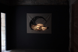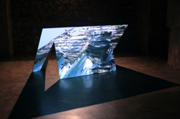 ALEXANDRE ESTRELAWall Against The SeaSOLAR - GALERIA DE ARTE CINEMÃTICA Solar de S. Roque Rua do Lidador Vila do Conde 24 SET - 13 NOV 2011 A Solar – Galeria de Arte Cinemática de Vila do Conde acolhe as obras de um modo bastante sui generis. A pedra em bruto acolhe o espectador de um espaço que, em tempos, terá sido um solar. Os meandros estreitos e os tectos altos cunham a galeria com uma atmosfera muito peculiar que, inevitavelmente, contamina as obras. Alexandre Estrela tem vindo a desenvolver um trabalho de cariz experimental sobretudo através do vÃdeo. Na exposição Wall Against The Sea as obras remetem para um pensar das estruturas formais e do modo como estas se podem relacionar com o movimento e com a sonoridade. A interdisciplinaridade é explorada com uma subtileza que complexifica as obras, tornando-as enigmáticas e visionárias, evidenciando o esforço de aproximação ao espectador que o artista desenvolve, explorando a percepção de um modo exaustivo. As três primeiras obras têm como forma basilar uma estrutura em metal que aparenta uma certa fragilidade, como se se tratassem de estruturas em papel. Em Ad Nauseum podemos ver o visor de relógio digital, aparentemente desligado, numa filmagem em loop. O vÃdeo, projectado sobre uma estrutura em ferro, apresenta uma fractura que divide o elemento projectado, como se a imagem se encontrasse quebrada. Acompanhando a projecção podemos ouvir o contÃnuo bater de um relógio antigo, cujo som ecoa pelas salas da galeria, marcando um compasso interminável. A temporalidade medida pelo som contrasta, de modo directo, com o visor do relógio digital, que, vazio, permanece indiferente à s horas, aos minutos, aos segundos. Estamos condenados a habitar o Tempo, ainda que o não possamos mensurar, ele corre, implacável, até desabarmos dentro dele. Keystones parece ocupar o ponto originário do projecto, o material de partida para as explorações que se seguem. Uma simples estrutura em metal, de traços geométricos e simples, ocupa o centro da sala, sob um foco de luz que dão continuidade à peça, através de sombras e ângulos que se desenham num constante conflito luz/sombra. Wall Against The Sea ocupa um lugar central na exposição de Alexandre Estrela, não apenas pelo tÃtulo da obra, que dá nome à exposição, mas por se destacar na intensidade com que explora as possibilidades do objecto-suporte e no modo como este se funde com os elementos som, movimento, imagem e materialidade. A relação que a fluidez da água estabelece com a imobilidade da pedra é explorada num vÃdeo de uma alta arriba, sobre a qual, incessantemente, as ondas embatem. A continuidade compassada do movimento das ondas é reforçada pelo loop em que o vÃdeo é projectado. A colisão é sonora e visual: está viva e em movimento. No entanto, a obra parece ambicionar ir mais longe. A colisão entre a rocha e a onda constitui uma unidade que por sua vez entra em choque com a estrutura plana e metálica sobre a qual está a ser projectada. A moldura é sempre uma forma de ocultamento, ela impõe limites, em tamanho e em profundidade. O momento contÃnuo de afastamento/aproximação em que a filmagem se estrutura confere ao espectador a movimentação da onda, como se, ainda que querendo, estivéssemos condenados a regredir, a colidir com a totalidade que se nos apresenta, para voltarmos ao ponto inicial. A circularidade do movimento, como que convertida numa imobilidade, pois que não saÃmos do mesmo lugar, é evidente e parece estar na base conceptual da exposição. A obra O Dia da Marmota, isolada espacialmente relativamente à s outras, é uma obra cujo tÃtulo remete directamente para o filme realizado pelo norte-americano Harold Ramis em 1993, Groundhog Day, que nos conta a história de um indivÃduo que repete o mesmo dia vezes sem conta. A obra, uma projecção em loop, de um peixe mordendo a sua própria cauda, numa figura circular que se move incessantemente em cÃrculos, sobre uma serigrafia do mesmo animal, na mesma posição. A obra tem um efeito surpreendente e parece dar forma ao princÃpio conceptual que está na base da exposição: um movimento contÃnuo, permanente e incansável que, pela ausência de descontinuidade, nos coloca permanentemente no mesmo ponto. Uma unidade contÃnua e múltipla que desvela, no mesmo momento espácio-temporal, a sua multiplicidade infinita e a sua unidade eterna e limitada. A estaticidade na qual a continuidade do movimento sempre deflagra. Um dos hábitos curatoriais da Galeria de Arte Cinemática de Vila do Conde é a proposta, ao artista a expor, de convidar um outro artista com cuja obra de certo modo se identifique, enriquecendo e complementando assim a exposição. Alexandre Estrela escolheu Carlos Godinho, que apresenta a obra A place where the unknown past and the emergent future meet in a vibrating soundless hum. Também aqui o movimento parece estar inserido numa atmosfera a-temporal, ainda que explorado a diferentes ritmos e velocidades. O elemento central é uma árvore, epicentro de uma exploração visual incessante e sempre circular, que se vai afastando e aproximando da mesma, oferecendo ao espectador diferentes detalhes. Em certos momentos a velocidade da câmara torna-se frenética, perdemos o discernimento do objecto observado, vendo apenas formas, ranhuras e cores que deambulam pela tela. O loop é aqui também palavra de ordem e mecanismo ao serviço de um conceito de repetição. Mais uma vez regressamos ao mesmo ponto, se é que alguma vez dele saÃmos, na ilusora permanência em-movimento.