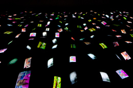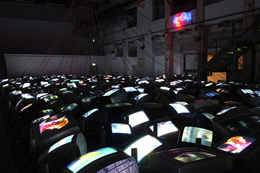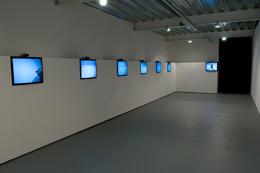 DAVID HALLEnd Piece...AMBIKA P3 University of Westminster, 35 Marylebone Rd London NW1 5LS 16 MAR - 22 ABR 2012 A exposição de David Hall assinala a passagem no Reino Unido para a transmissão televisiva de sinal digital. O tÃtulo dramático reflete o evento importante, mas, principalmente, anuncia a teatralidade caracterÃstica da sua obra, onde a análise do media serve como instrumento para uma profunda investigação do lugar do espetador. O nome da exposição tem origem em 1001 TV Sets (End Piece) (2012), instalação constituÃda por mil e um televisores que transmitem em simultâneo os canais de sinal analógico do paÃs e ocupam por completo o espaço central da Ambika P3. Este interesse no objeto e na sua disposição espacial relaciona-se com a formação do artista como escultor. Hall participa, por exemplo, na exposição Primary Structures, momento seminal da arte minimalista nos Estados Unidos que acontece no Jewish Museum de Nova Iorque em 1966. Em 1001 TV Sets (End Piece) os aparelhos de televisão acompanham a mudança tecnológica e progressivamente passam a emitir o ruÃdo, visual e sonoro, caracterÃstico da ausência de sinal, mas que aqui marca a interrupção permanente da transmissão analógica. A partir de dia 18 de Abril todos os aparelhos emitem este ruÃdo e a instalação ganha a sua forma final, que é apresentada durante os últimos quatro dias da exposição. End Piece... inclui ainda sete TV Interruptions (1971), Progressive Recession (1972) e Stooky Bill TV (1990), um grupo de trabalhos que se encontra unido pelo interesse no universo da televisão, interpretado como media e objeto. 1001 TV Sets (End Piece) questiona a relação do espetador com a televisão e o mundo exterior. A televisão, embora seja uma presença habitual no espaço público, em salas de espera e cafés por exemplo, encontra-se extremamente relacionada com o espaço privado da sala de estar. É esse sentimento de familiaridade que se promove com a inserção do aparelho em espaços públicos, tornando-os, presumidamente, mais Ãntimos e agradáveis. Esta oposição encontra-se também no interior do próprio media que se apresenta como um retrato do mundo produzido de forma industrial para consumo privado, individual e/ou familiar. 1001 TV Sets (End Piece) representa uma mudança tecnológica com consequências económicas e sociais. O novo formato de transmissão quebra o monopólio das emissoras televisivas e assinala uma mudança em termos de consumo. Este nova tipologia de receção expande exponencialmente as possibilidades do formato cabo mas, principalmente, aproxima-se do formato da internet, que absorve o media mais antigo na sua linguagem. A realidade fictÃcia da televisão homogénea termina com a suposta democratização do consumo, e é esta transformação que Hall encena em 1001 TV Sets (End Piece). A peça é, ainda, uma reformulação de 101 TV Sets (1972-75), que foi apresentada pela primeira vez utilizando 60 televisores em 1972. Este lado volátil na estrutura e simbologia da obra, e o facto de constituir uma actualização do passado, torna a obra num monumento à passagem do tempo que inclui o próprio devir, um hÃbrido de luto e celebração. Stooky Bill TV, que recria a primeira transmissão televisiva do mundo, realizada por John Logie Baird em Londres, encontra-se no interior de 1001 TV Sets (End Piece), rodeada por televisores que emitem a programação de vários canais. Stooky Bill TV constitui uma interpretação pessoal da experiência de 1926. A conversa original entre o ventrÃloquo e Stooky Bill, o boneco, torna-se, aqui, uma discussão sobre a função da televisão no futuro-presente da época em que Hall constrói o trabalho, que se tornou passado do contexto actual. Stooky Bill prevê que a televisão se irá tornar um mundo de fantasia, enquanto que a voz humana opõe a vontade de ver o mundo real. A figura do duplo torna-se elemento central em Stooky Bill TV. Para além do eixo ventrÃloquo-boneco, a conversa descreve a dicotomia realidade-fantasia que domina o media, visÃvel, por exemplo, nos constantes diretos dos telejornais e na produção de um mundo fictÃcio através da sua programação e publicidade. Em oposição a Hollywood, onde o cinema é fábrica de sonhos, a televisão nasce como uma máquina de realidades construÃdas. A própria composição visual do trabalho, onde Stooky Bill aparece isolado, lembra os programas de talking heads, onde convidados reais difundem as suas narrativas subjectivas. A inclusão desta peça no interior de 1001 TV Sets (End Piece) sublinha o lado fúnebre-celebratório e de reformulação de toda a exposição: de dia 18 a dia 22 os únicos aparelhos que continuam a emitir mostram exclusivamente Stooky Bill TV, a primeira emissão televisiva. O conjunto TV Interruptions é produzido para a televisão escocesa, que transmite, entre Agosto e Setembro de 1971, as dez interrupções sem qualquer tipo de mediação. Esta utilização do contexto televisivo como uma plataforma de experimentação artÃstica era novidade no Reino Unido, mas tem antecedentes na Alemanha e nos Estados Unidos, onde a Boston Public Television WGBH é exemplo importante. As TV Interruptions foram criadas para um contexto televisivo e Hall sublinha, à época, a necessidade da televisão (media e aparelho) como local de exibição e testemunho destas obras. No entanto, a apresentação em End Piece... é justificada pelo facto das interrupções incluÃrem a referida análise sobre o posicionamento do espetador, tema central da exposição. A mudança de significações inerente a este novo contexto parece de certa forma ter paralelo na reformulação de 1001 TV Sets (End Piece) e Stooky Bill TV. Aqui, as TV Interruptions são instaladas em sete televisores colocados em plintos negros. Cada aparelho emite, em ordens diferentes, as sete interrupções que se sobrepõem e, de certa forma, se interrompem, ecoando, novamente, 
