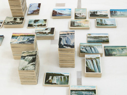ZOE LEONARDObservation PointCAMDEN ARTS CENTRE Arkwright Road London NW3 6DG 31 MAR - 24 JUN 2012 O trabalho de Zoe Leonard utiliza a fotografia como ferramenta privilegiada para questionar a perceção humana. Em Observation Point o medium é analisado de uma forma aparentemente simples, investigando os processos de construção da imagem e a influência desses mecanismos no significado das representações produzidas. Os três conjuntos da exposição exploram diferentes modalidades de perceção, questionando ainda o papel da galeria como ferramenta de regulação sensorial. O primeiro conjunto, Available Light, apresenta uma série de fotografias a preto e branco que retratam o sol. O título de cada fotografia corresponde ao dia em que a imagem foi produzida e à sua ordem na sequência de imagens. Ao representar o elemento fotográfico primordial, a luz, Available Light formula uma meta-reflexão sobre o funcionamento do medium. Esta meditação sobre a natureza da fotografia contém ainda uma contradição que se torna extremamente relevante no contexto da exposição. As imagens desfocadas e pouco definidas caracterizam o medium como uma ferramenta imperfeita (visível na inclusão do enquadramento na própria imagem - o frame negro), que não permite um retrato exato do objeto, embora crie uma representação muito próxima do visível. O espelho entre mecanismo de representação e objeto representado encontra um novo elemento no paralelismo criado entre o medium e sujeito observador, que partilham uma perceção alterada. Leonard parece também ter interesse em sublinhar a existência da sala de exibição. As imagens são pregadas diretamente na parede sem qualquer moldura. Esta materialidade da imagem como objeto no espaço também apresenta ecos do tema retratado. A sala é constituída por uma série de janelas, que, a partir do teto, introduzem luz natural no interior da galeria. A flutuação da luminosidade exterior e, consequentemente, interior, altera as fotografias, criando um diálogo entre a imagem representada, o objeto físico, e o seu espaço de apresentação. A sala seguinte apresenta You see I am here after all, instalação constituída por uma coleção de cartões postais, que, à exceção de dois elementos pregados à parede, são colocados numa mesa no centro do espaço. A mesa apresenta diferentes vistas das cataratas do Niagara. Os diversos tipos de coloração dos postais lembram as diferentes modalidades de luz das imagens de Available Light. You see I am here after all também inclui o interesse demonstrado em Available Light na materialidade da imagem. Para além da inserção direta na parede de dois postais, os restantes elementos são colocados em pilhas de diferentes dimensões, criando uma topografia de perceções que obedece a uma perspetiva impossível do espaço das cataratas. Estes conjuntos funcionam como índex do olhar dos visitantes e, em simultâneo, da negação desta multiplicidade pela representação normativa que cada postal recria. Esta regulação cultural de um espaço natural é assinalada diretamente nos dois postais de parede que retratam um ponto de observação do Grand Canyon, enquadrando e recriando a vista ideal. You see I am here after all torna concreta a dimensão política da materialidade da imagem que se encontrava latente em Available Light. A terceira galeria apresenta Camera Obscura, uma reconstituição do dispositivo óptico que antecede a fotografia e o cinema. Este trabalho parece funcionar como súmula de Available Light e You see I am here after all reposicionando questões relacionadas com a normatividade visual e o relacionamento com o espaço de exibição. Leonard transforma por completo esta sala do Camden Arts Centre caracterizada por grandes janelas sobre Finchley Road. Camera Obscura reconfigura o espaço ao esconder as janelas embora continue a mostrar a vista que é reconstituída na parede oposta. O funcionamento do dispositivo leva a que a imagem apareça invertida, reconstituindo a cena banal e quotidiana, enquanto que estimula uma análise cuidada das suas partes constituintes através da novidade visual desta representação. Em Camera Obscura, para além do exame ao mecanismo fotográfico e da demonstração dos seus processos, Leonard também questiona a utilização contemporânea deste dispositivo óptico, utilizado, entre outros, em contextos turísticos onde é apresentada uma vista panorâmica, como acontece, por exemplo, no Castelo de São Jorge. Neste ponto Camera Obscura apresenta várias ligações com You see I am here after all, especificamente no que diz respeito à regulamentação do olhar através da definição/imposição de uma perspetiva. A recriação visual de Camera Obscura não é contida numa única superfície de representação, contrariando a utilização habitual deste dispositivo. O espaço da sala é completamente ocupado pela imagem, que se expande, em diferentes graus de concentração, do centro para as extremidades. O jogo de luz e sombra, o sublinhar dos limites representacionais do mecanismo e o interesse na materialidade da imagem (visível também na inclusão das características arquitetónicas da sala no seu interior), lembram ainda os processos de Available Light em termos do relacionamento com o espaço de apresentação. Em Camera Obscura, Leonard cria um espaço onde mecanismo e representação (processo e resultado) ocupam um mesmo espaço e tempo, questionando a imagem artificial enquanto constrói um locus ilusório a partir dessa mesma realidade mediada, assinalando a ação da galeria e do museu na representação de qualquer trabalho. Esta é a primeira exposição individual de Zoe Leonard em Londres. O seu percurso inclui a seleção para o prémio Deutsche Borse Photography em 2010, participações na Documenta 9 (1992), Documenta 12 (2007), e na Bienal Whitney em 1993 e 1997. O seu trabalho foi ainda apresentado em retrospetivas no