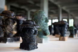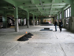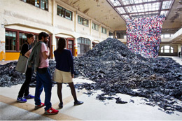 MANIFESTA 9The Deep of the ModernKOOLMIJN VAN WATERSCHEI-GENK André Dumontlaan 67 3600 Genk 02 JUN - 30 SET 2012 Baseada na história social e económica da Europa pós-industrial, a Manifesta 9 – sediada em Genk, na região belga de Limburg – é fortemente inspirada na história da antiga mina de Waterschei, local da bienal. Escolhido com três anos de antecedência, antes da nomeação da equipa curatorial, o espaço da bienal evoca a crise europeia atual. A mina de carvão de André Dumont abriu em 1924, encerrou em 1987, e após a bienal fará parte de um largo complexo tecnológico, focado na investigação e inovação. Atualmente, da mina original, resta apenas o esqueleto do edifício principal e alguns traços art déco do interior. O património, a história e a memória da mina de Waterschei estabelecem um diálogo interessante com as obras selecionadas que se envolvem num ambiente particular do espaço histórico industrial. As “profundezas” das minas de carvão sugerem um metafórico retrato do início de uma nova era capitalista, principiada no século XX. É neste contexto que The Deep of the Modern emerge como o tema escolhido pelo curador mexicano Cuauhtémoc Medina, com curadoria associada de Katerina Gregos e Dawn Ades. Para Medina, a inexistência de um estudo sobre o papel do carvão na produção moderna cultural incentivou o desenvolvimento deste tema, sendo-lhe atribuído um papel primordial na Manifesta. A exploração das minas de carvão foi a grande impulsionadora económica da região, tendo ainda permitido a deslocação de cerca de 60 mil pessoas vindas de diferentes áreas do globo. O espaço expositivo está dividido em três secções designadas de “The Age of Coal”, “17 Tons” e “Poetics of Restructuring”. “The Age of Coal” é uma exposição histórica que abarca obras de 1800 ao início do século XX, próximas da temática do carvão e da indústria, numa espécie de estudo iconográfico da questão. O início deste núcleo parte da curiosa instalação de Marcel Duchamp, constituída por um teto de 1200 sacos de carvão, realizada para a Exposição Internacional do Surrealismo de Paris, em 1938. Através de uma vertente mais claustrofóbica – devido à proximidade do corpo do visitante ao teto repleto dos pesados sacos – a paisagem criada pela grande quantidade de sacos da indústria do carvão surge antes da sala climatizada, museologicamente instalada, onde entramos para percorrer a secção histórica da bienal. Aqui, o carvão pode ser avaliado no seu todo, ou seja, como matéria, fóssil, combustível, ou numa vertente histórica. Destacando o carvão como um fóssil da natureza, é apresentado um curioso conjunto de gravuras de Max Ernst, de 1926, ou uma enorme pintura de Jan Habex, antigo funcionário da mina e natural de Genk, que imagina uma maravilhosa paisagem florestal carbonífera. O estatuto do mineiro é, por exemplo, representado nos belos trabalhos de Josef Herman, em Three Miners (1953), ou nos papéis a tinta e pastel de Robert Heslop – trabalhou nas minas de Durham mais de 40 anos. “17 Tons” é o núcleo que reúne obras que surgiram no pós-encerramento das minas. Em geral, é apresentada uma série de peças que se destacam pela sua proximidade com a antiga mina e os seus trabalhadores. Numa grande diversidade de obras, tanto vemos maquetes em gesso, que permitem compreender as técnicas de exploração do minério; ou uma maquete de uma mina de carvão construída em LEGO; uma coleção de tapetes dos imigrantes turcos evidenciando a importância da comunidade turca em Limburg e o seu trabalho nas minas; ou as esculturas de Manuel Durán em carvão, polpa de batata e tinta de cabeças de mineiros. “Poetics of Restructuring” ocupa os dois últimos pisos do edifício, mostrando artistas contemporâneos numa relação próxima com o estado de degradação do espaço. Ao contrário do que é comum nas bienais que expõem um elevado número de obras em diferentes espaços (e como sucedeu nas anteriores edições da Manifesta), em Genk, a equipa de curadores, optou por mostrar um número mais reduzido de artistas contemporâneos (39 artistas), mas simultaneamente optando pela diversidade de meios e suportes, desde a pintura e fotografia, a instalações e trabalhos áudio. Segundo os curadores, os artistas apresentados trabalharam sobre a industrialização ou pós-industrialização, a desindustrialização, a restruturação económica, as condições de trabalho atuais e a nova economia. A obra em construção permanente de Ni Haifeng, Para-Production, destaca-se à partida por estar montada no hall central do edifício; não obstante são várias as reflexões que inevitavelmente propõe e que atravessam a bienal. Este trabalho apresenta três partes: uma longa tapeçaria de fitas de tecido coloridas cosidas; um conjunto de tecidos soltos, sendo a maior parte deles de cor escura; e uma fila de máquinas de costura Singer, que permite ao público participar na instalação. A partir daqui a especulação é permitida nas diversas abordagens que trespassam o caráter da obra. A cultura do trabalho é um dos pontos principais, reatando a produção “Made in China” num sentido globalizado. Estamos igualmente perante uma homenagem aos trabalhadores da mina, evocando o escuro do monte de tecidos o carvão das minas de Waterschei. Ainda considerando o papel específico do trabalhador, Burtynsky apresenta uma seleção de oito fotografias intituladas China, Manufacturing, 2005. Ao longo de duas décadas o fotógrafo canadiano tem registado paisagens industriais, e entre 2003 e 2005 viajou pela China com este mesmo propósito. A exploração no trabalho de produção industrial em massa é visível nas imagens expostas. Coal Drawing Machine (2012), de Carlos Amorales, cria uma espécie de labirinto com grandes desenhos produzidos a carvão através de uma máquina que produz elementos gráficos 