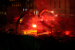 CYPRIEN GAILLARDWhat It Does to Your CitySCHINKEL PAVILLION Oberwallstrasse 1 10117 Berlim 13 SET - 21 OUT 2012 The Future is but the Obsolete in ReverseAo inÃcio da performance inaugural da exposição What It Does to Your City, de Cyprien Gaillard, não era claro para todos o que estava a acontecer não no Schinkel Pavillion, o espaço da mostra, mas no terreno em estaleiro do lado oposto da rua, onde no prazo de dois anos estará edificado o prédio de luxo no valor de oitenta e cinco milhões de euros do qual agora se iniciam os alicerces. O ambiente que se vivia na inauguração poderia compreender-se melhor − não pelo caráter lúdico da ficção mas pela exatidão dos factos − ficcionando que os visitantes da exposição tinham sido surpreendidos por uma emergência bizarra que os obrigasse a subir acima do nÃvel do solo, donde pudessem aceder ao que se passava entre os cabos de aço, tubos, blocos de betão e retroescavadoras por detrás da vedação de madeira da esquina Werderschen Markt/ Oberwallstraße. Alguns eram içados a partir das janelas do primeiro andar do espaço de exposição, usando como degrau uma caixa de eletricidade; as escadas estavam sobrelotadas e eram subidas pé ante pé, esperando um espaço livre no degrau seguinte, sem ser possÃvel que se visse o que estava adiante. Os desistentes que ficavam na rua tentavam trepar a parede lateral da igreja Friedrichswerdersche, contigua ao terreno. Quando a todos começou a chegar o som metálico de máquinas retroescavadoras em movimento e uma interpretação de Steve Reich vinda de dois xilofones situados ao ar livre num espaço adjacente ao terraço do Schinkel Pavillion, aqueles situados nos pontos mais altos relatavam a performance para os que tinham dificuldade em ver ou viam em diferido pelos visores de telemóveis elevados acima de si. Tal como na maior parte dos fenómenos, também no trabalho de Cyprien Gaillard as relações a estabelecer estão fora do núcleo visualmente acessÃvel do acontecimento. Precisamente, aquilo que centrava a performance estava eventualmente mais adiante: não nas paredes do Kronprinzengaerten (Jardim da Princesa Coroada), conforme virá a chamar-se o empreendimento imobiliário do qual o site da performance é agora o estaleiro. Essas vão ainda erguer-se do chão; só em certa medida, contudo; noutra, o que as cimentará é precisamente da mesma natureza que verdadeiramente centrava a performance: os 360º de acesso visual em seu redor. O que ativa uma cidade. O que vai restando das modas polÃticas, utopias sociais, escolas urbanÃsticas e arquitetónicas: Unter den Linden; a atual área relvada onde até há cerca de três anos estava edificado o Palast der Republic, o antigo parlamento da DDR, desmantelado minuciosamente devido à s suas componentes em amianto; o Kronprinzenpalast (Palácio da Princesa Coroada), do qual o futuro edifÃcio adaptou o nome e, visÃvel do terraço, elevada a trezentos e sessenta metros do solo e durante anos sÃmbolo do bem estar comunista, a Fernsehenturm (Torre de Televisão). Na lógica desses restos estão também os sujeitos quer da performance: três maquinas retroescavadoras em movimento entre fogo preso; quer da exposição: uma série de bicos de retroescavadoras ortodoxamente colocados sobre plintos, importados da sucata dum deserto na Califórnia. Porque the future is but the obsolete in reverse [1], a construção civil e a especulação imobiliária estão para Cyprien Gaillard na mesma categoria dos processos que provocam a falência funcional − arquitetónica ou urbanÃstica − dum bairro ou edifÃcio. A ruÃna, clássica e moderna que tem investigado indefinidamente em todo o planeta. O que está em causa não é futurologia para as polÃticas imobiliárias atuais, a gentrificação crescente dos centros urbanos ou qualquer outra tomada de posição eminentemente sociopolÃtica. Isso exigiria fazer sentido dos processos históricos e socioeconómicos implicados na ruÃna, e compreender como Cyprien Gaillard exige que se saiba o que se desprende da necessidade desde envolvimento. Até o oposto: quando afirma que o seu trabalho “começa depois dos arqueólogos terem ido embora†[2], aquilo no que insiste é a fruição duma qualidade entrópica contida nos processos degenerativos da paisagem natural, arquitetónica e urbanÃstica, abstraÃda da sua realidade cultural, polÃtica ou social. O edifÃcio, por exemplo, tal como o utiliza nas suas instalações, vÃdeos, fotografias, “acquires a life of its own, detached from its initial social function, from the history of modernism, from the architectural plan. It then becomes part of the landscape, receding into the background as if somehow unconnected to the scene†[3]. Se é essa uma das mais consequentes caracterÃsticas da sua visão, no contexto da tradição de artistas contemporâneos empenhados em refletir sobre os espaços da degradação arquitetónica e paisagÃstica, também é aà onde mais contundentemente é criticado. Onde a crÃtica aponta, contudo, é simultaneamente onde está, com igual força, um afastamento tão resoluto de consequências polÃticas, que pode questionar a pertinência que dela pode advir. Durante a performance What It Does to Your City, com a qual a exposição inaugurou, as frases que se ouviam por entre a assistência que insistia em fazer sentido da performance eram menos irrisórias do que a sua aparência pode fazer crer. Por entre o som de máquinas de construção, xilofones e a visão extravagante de nevoeiro artificial avermelhado, a imagem das lagartas Caterpillar em movimento levava alguém a perguntar se pretendiam aquelas máquinas ser dinossauros ou um outro animal pré-histórico. Não é necessário tomar uma decisão precipitada. Mas pode fazer-se a ponte à possibilidade de abordar o seu trabalho levada a cabo por Hal Foster [4], em visita à anterior e muito mediatizada exposição de Gaillard em Berlim, The R