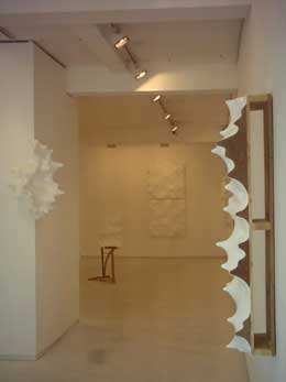 JOÃO GALRÃOYou are in my dreamsGALERIA GRAÇA BRANDÃO (PORTO) Rua Miguel Bombarda, 410 A 4050-382 Porto 03 JUN - 31 JUL 2006 “You are in my dreams” é o título da segunda exposição individual de João Galrão no espaço 552 da Galeria Graça Brandão no Porto. Vários elementos permitem estabelecer quer uma relação de continuidade, quer uma diferenciação entre os objectos/escultura/pintura apresentados na exposição de 2003, nesta mesma galeria, e esta. Destaco quatro: 1) O monocromatismo que neste caso se assume como ausência de cor. Esta foi substituída por uma cobertura de tinta de esmalte acrílica branca, ou pela cor local do gesso que veste ou constitui os objectos da exposição. Consequência da erradicação da cor é a sensação de vazio, de “nada”, o silêncio do prolongamento frontal do branco sobre branco, a imaterialidade sugerida, a osmose espacial e arquitectónica e a aceitação por parte do artista de que sem esta relação com o espaço envolvente, a qualidade corpórea dos objectos perderia todo o sentido de existência. 2) A revelação das estruturas construtivas de alguns objectos de parede produzidos a partir de paletes industriais de madeira, ou na visibilidade das estruturas de apoio da peça de chão. Na exposição anterior, o esqueleto dos objectos apenas se percebia através de um exercício de suposição que levava o espectador a questionar que tensões e forças projectavam ou engoliam as protuberâncias de gesso. 3) Uma maior amplitude da noção de tensão. Mais do que uma diferença, a intensificação de um vector já existente. A indistinção disciplinar e identitária que Paulo Cunha e Silva, em 2003, sublinhou no texto do catálogo então publicado, mantém-se. As fronteiras entre objecto pictórico e objecto escultórico não se pretendem claras. Aqui tudo se conjunta. As pinturas desejam a tridimensionalidade escultórica e as esculturas, figuras, num processo contínuo de transformação da superfície, do seu volume e do volume em movimento que é sempre aparente. Este suposto movimento de distensão/contracção é em si mesmo gerador de tensões várias. Esta noção está também presente na acentuada texturação de que foram alvo todas as superfícies, desde a peça de chão à de canto passando pelas de parede. Leonor Nazaré fala das texturas no trabalho de João Galrão como um princípio activo que reclama, de quem se aproxima curiosidade táctil, indecisão, atracção e incerteza. Tudo explode na superfície dos objectos, transformando-os numa espécie de topografia acidentada. 4) A dimensão discursiva das formas corporalizadas desmente a abstracção que pressupõe a anulação de uma intenção representativa. Este discurso revela-se também na ironia das referências. “Nothing between us” para o díptico cujas telas foram justapostas sem qualquer tipo de separação entre ambas ou “I wait for you there” para um objecto que parece ter sido fossilizado. Existe uma relação directa entre o conteúdo conceptual dos títulos e a forma como os objectos se apresentam ao observador. Por outro lado, essa discursividade prende-se com o universo musical. Na exposição realizada em Vila Nova de Cerveira – “After Hours” em 2005, as peças de Galrão tinham ganho uma estridência psicadélica e a luz que reflectiam foi sincronizada ao ritmo de músicas seleccionadas pelo autor. Nesta exposição, desapareceu a cor e a luz artificial, como já referi, mas mantém-se o ritmo e o brilho local sugerido, não pela vibração de luzes, mas pela intermitência e pulsar formal das saliências que em todas as peças criam a sensação de uma movimentação escarpada. Referências: “After Hours, João Galrão”, Vila Nova de Cerveira, Galeria Projecto, 2005. SILVA, Paulo Cunha e, “A pele das Formas”, João Galrão, Porto, Galeria Graça Brandão, 2003, p. 2. NAZARÉ, Leonor, “João Galrão”, Roteiro da Colecção da Fundação Calouste Gulbenkian [www.camjap.gulbenkian.org]
