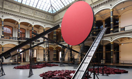 ANISH KAPOORKapoor in BerlinMARTIN-GROPIUS-BAU Niederkirchnerstraße 7 10963 Berlin 18 MAI - 24 NOV 2013 Originalmente, a Martin-Groupius-Bau, desenhada por Heino Schmieden e por Martin Gropius (tio-avô de Walter Gropius, o fundador da Bauhaus) construÃda no estilo Renascentista, abriu ao público em 1881 como Museu de Artes Aplicadas. Localizada junto à sede da polÃcia secreta nazi – Gestapo, também se encontrava ao lado do Muro de Berlim, zona que atualmente alberga a Topografia do Terror, uma exposição ao ar-livre que documenta aquela zona. Nas últimas semanas da II Guerra Mundial grande parte da casa foi destruÃda, e a sua reconstrução começou em 1978, depois de ter sido considerada monumento histórico, graças à intervenção de Walter Gropius. Em 1981 abriu ao público designada de Martin-Groupius-Bau. Anish Kapoor (Mumbai, 1954) nasceu e viveu na Ãndia, sendo filho de mãe iraquiana-judia, e pai hindu; viveu ainda em Israel num kibutz quando tinha 16 anos, e foi estudar Escultura para Londres em 1973, vindo a receber o Turner Prize em 1991. Manteve-se desde então a viver na capital britânica. Todo o seu trabalho em escultura envolve uma relação e estruturação com o espaço, e é em torno do objeto, do seu estado matérico e formal, que se desenrola a exposição Kapoor in Berlin. Espalhada por uma série de galerias em torno do átrio principal, são apresentadas 70 obras de Kapoor, produzidas entre 1988 e 2013. Metade dos trabalhos apresentados foram realizados especificamente para a exposição e essa é uma particularidade que traduz a mostra de Kapoor em Berlim: não estamos diante de uma retrospetiva, mas antes de um momento crucial no trabalho do artista. A referência a Berlim na exposição de Kapoor, e ao próprio museu, surge logo no átrio ocupado pela grande Symphony for a Beloved Sun (2013): obra-homenagem a Joseph Beuys (1921-1986), que apresentou, precisamente, em 1982, o seu estúdio, no átrio do museu. É impossÃvel fugir à História de Berlim e da Alemanha, quando no silencioso átrio do museu, Kapoor propõe uma enorme escultura composta por quatro correias transportadoras direcionadas para o céu que carregam blocos de cera vermelha, que são repetidamente atirados para o chão do átrio produzindo um som de queda e esmagamento, de morte. Este processo mecânico sonoro e desproporcional tem lugar sob a égide de um grande disco vermelho que pelas suas caracterÃsticas provoca uma total desmaterialização do espaço arquitectónico, e que simbolizando o sol pode ter dois significados: a suástica adotada pelos nazis, ou o Sol, do deus hindu Surya, sÃmbolo de bons auspÃcios ou agouros. É possÃvel encontrar outras possÃveis influências de Kapoor na construção desta obra. No The Weather Project de Olafur Eliasson (apresentado no Turbine Hall da Tate Modern) há semelhanças estéticas e formais na representação do Sol. Ou ainda Kapoor pode ter sido inspirado pelo construtivismo de El Lissitzky, que foi por sua vez inspirado na Victory over the Sun de Malevich, uma “ópera futurista†apresentada no Luna Park, em São Petersburgo. A teatralidade desta ópera relaciona-se com o ato performativo proposto por Kapoor, tratando-se assim de um teatro escultórico em processo. Numa perspetiva existencial, o peso e a leveza resumem as esculturas de Kapoor. Numa perspetiva filosófica, a de Bachelard, o vazio e o cheio, na ideia de que um não é intelÃgivel sem o outro, resume a inteligibilidade do trabalho de Kapoor. Já os materiais – ou a matéria objetual – utlizados por Kapoor são os denominadores principais destes opostos e também eles se confrontam, pois tanto são naturais como artificiais: pedra, plástico, resina sintética, terra, aço, cimento, madeira e cera. As esculturas em pedra, de 1997, transportam o vazio e relembram os buracos negros, tal como o aparente buraco negro no chão Descent into Limbo (2013); os grandes objetos de resina, Gethsemane (2013), mostram as entranhas mais fundas; Apocalypse and the Millennium (2013), em terra e resina, apresenta a destruição final; as obras em cimento, em formas arcaicas, lembram o mundo natural das conchas incorporadas nas rochas no mar. The Death of Leviathan (2011-2013), em PVC castanho, ocupa três galerias numa enorme e leve estrutura de plástico maleável, representado o bÃblico monstro do mar Leviathan utilizado por Thomas Hobbes como metáfora do poder do Estado. A cor vermelha, muito usada na sua terra natal, a Ãndia, onde é utilizado um pó vermelho brilhante nos objetos decorativos dos templos indianos ou das estupas budistas, é aplicada por Kapoor em objetos cortantes perfurados com instrumentos de madeira, que cria uma espécie de sala de tortura, como em Up Down Shadow (2005) ou no enorme sino que roda lentamente. O uso do vermelho permite mostrar outras formas através do pigmento, tal como acontece em Shooting into the Corner (2009), em que um canhão dispara bolas de cera vermelha para um canto da sala, manchando as paredes, numa violência sangrenta. Os espelhos em aço polido e brilhante são alterados na sua forma e criam um espaço através da ilusão: são concânvos ou convexos, como em Non-Object (Door), 2008, Non-Object (Oval Twist) , 2013, Non-Object (Square Twist), 2013. Em Vertigo (2008), nos efeitos de reflexo do visitante ou no espaço que o envolve acontece a distorção, é igualmente criada uma sensação de vertigem que faz lembrar as imponentes esculturas de Richard Serra. A ilusão ótica é uma ideia que está presente desde o inÃcio no trabalho de Kapoor, como em When I am Pregnant (1992), aqui apresentada, em que uma protuberância pintada de branco sobresai da parede branca. E neste sentido, o próprio artista resume e esclarece perfeitamente esta perspetiva: “For me, illusion is more true and more rich in ideas than the real, art is about many things that are not before our eyesâ€.