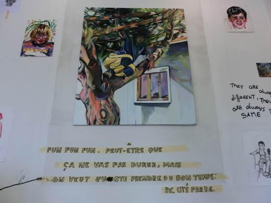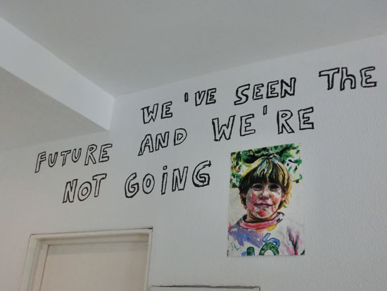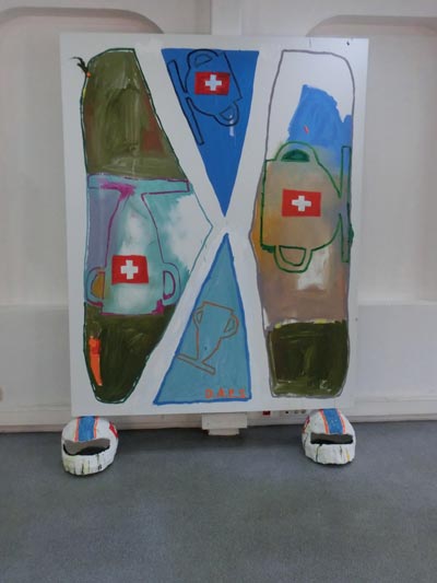 COLECTIVAPrimavera RaraCENTRO COMERCIAL PALLADIUM Av. da Liberdade, 1/7 - 2º Andar Lisboa 15 MAI - 08 JUN 2014 After a time, you train yourself that once the work is out of the studio, it’s up to somebody else how it gets shown and where it gets shown. You can’t spend all your time being responsible for how the work goes out in the world, so you do have to let go. [1] Não é o caso desta exposição, um momento raro no contexto artÃstico atual. Um espaço que foi dado a um conjunto de artistas para, numa espécie de Primavera Ãrabe Lisboeta, darem o seu grito, já que, para este projeto, lhes foi dada carta branca. Poucos quiseram gritar, mas houve vozes que, ainda assim, se conseguiram fazer ouvir. Trata-se de uma exposição que não é uma exposição, com um curador que não quer ser curador, num espaço de exposição que não é espaço de exposição, com artistas que... são artistas. Esta será talvez a forma mais clara de introduzir o não-conceito de Primavera Rara, agora em exposição no Centro Comercial Palladium, em Lisboa. João Chaves, mentor do projeto, trabalha como consultor e diretor técnico independente desde 2007 e, mais recentemente, como produtor de exposições. Faz questão de frisar que não é curador e que o seu nome surge associado à exposição pois parte de sua iniciativa e é a sua empresa de consultoria técnica nas artes visuais – Balaclava Noir - que a produz. Convidou seis artistas e incluiu duas participações de projetos de fora do circuito a apresentar trabalho ou intervir no espaço de antigas lojas do Palladium. Assim, quer em trabalhos colaborativos, quer individualmente, Tiago Alexandre, De Almeida E Silva, LuÃs Lázaro, Horácio Frutuoso, Sara & André, VÃtor Serrano, e os projetos Retina Urbana e T- RORISTA, são apresentados em espaços cuja leitura é realizada através do enquadramento das diferentes montras do mÃtico centro comercial. Uns, como é o caso de Tiago Alexandre, assumem perfeitamente o espaço e integram-no na escolha da(s) obra(s) e na forma de apresentação; outros, a maioria, por razões variadas, simplesmente apresentam ou adaptam o trabalho ao espaço, sendo o resultado, por vezes, algo conflituoso. O facto de se estar num centro comercial, literalmente, “a ver montras†é, por exemplo, bem aproveitado por VÃtor Serrano, que se autorretrata arrumado, sentado e pronto a ser levado num saco de plástico. Com sentido de humor, aproveita para se lançar ao público do Palladium com uma breve apresentação de uma temática que lhe é querida, a questão do género, do corpo, da sexualidade, em imagens que deixam escapar, aqui e ali, mais do que a Mapplethorpe, referências ao trabalho de Wolfgang Tilmans. Destaca-se o trabalho de Sara & André, que continuando a sua série “Fundação Sara & Andréâ€, convidaram CecÃlia Corujo para visitar as suas infâncias e a partir de uma série de documentos providenciados, como postais, recortes de revistas e fotografias, desenhar, pintar e criar visões do futuro, como é o caso da capa do livro da série World of Art da editora “Hudson & Thamesâ€, intitulado Works by Sara & André, já na sua 5ª edição. “We’ve seen the future and we’re not goingâ€, o tÃtulo da peça, assim como outras duas citações presentes na instalação são referências diretas à dupla McDermott & McGough e ao seu trabalho. Não é possÃvel deixar de reparar que o material usado pelo DJ na inauguração continua no seu lugar, na montra ao lado do trabalho de Sara & André. O set tocado é, assim, assumido como mais do que uma atuação de celebração da abertura da exposição, passando a ser um momento performático, que deixa os seus despojos/vestÃgios no espaço expositivo. É ainda de relevar o trabalho apresentado por Tiago Alexandre e De Almeida E Silva, que se apresentam numa montra conjunta, onde a temática do desporto os une, apesar de exibirem projetos individuais com sugestões completamente diferentes. Tiago Alexandre apresenta em primeiro plano, numa prateleira, cinco raquetes de plástico de cores diferentes intervencionadas; um desenho e uma escultura reminiscente do trabalho apresentado na última Bienal de Cerveira e depois no Carpe Diem, em Lisboa. Do outro lado da sala, as pequenas raquetes são convocadas através do som de uma bola de ténis a ser batida que é sobreposto a um loop que mostra MC Daleste, um cantor e compositor do chamado “Funk Ostentação†brasileiro, ou mais precisamente paulista, no momento em que é assassinado em palco durante uma atuação no dia 7 de julho de 2013. Já De Almeida E Silva, apresenta uma pintura de grande formato equilibrada sobre dois capacetes de Fórmula 1 feitos em gesso, criando uma espécie de área de culto. Mais próximo da montra, surge, criando um triângulo, um terceiro capacete. Este, com uma pequena bandeira com uma insÃgnia que nos remete para a pintura, faz ainda ponte com um desenho suspenso, num plano perpendicular à pintura. D.A.E.S. faz uma alusão aos desportos motorizados de elite no que parece ser uma metáfora que os pretende cruzar com o contexto artÃstico atual e com o processo criativo do artista, numa corrida em busca da glória. Por último, destacam-se os projetos T-Rorista e Retina Urbana, que apresentam trabalhos que ilustram mais explicitamente o que o tÃtulo da exposição pressupõe: um movimento revolucionário, uma manifestação, uma palavra de ordem capaz de mover multidões. T-Rorista apresenta oito t-shirts que juntas em grupos de quatro completam a imagem dos regicidas Alfredo Costa e Manuel Buiça. Quer sejam entendidos como assassinos ou como uma espécie de mártires, são figuras incontornáveis quando se fala do inÃcio do fim da monarquia em Portugal e da implantação da República. Numa outra perspetiva, o projeto Retina Urbana (visÃvel na sua totalidade em retinaurbana.blogspot.com), realizado entre maio e junho de 2008, é recuperado e apresent