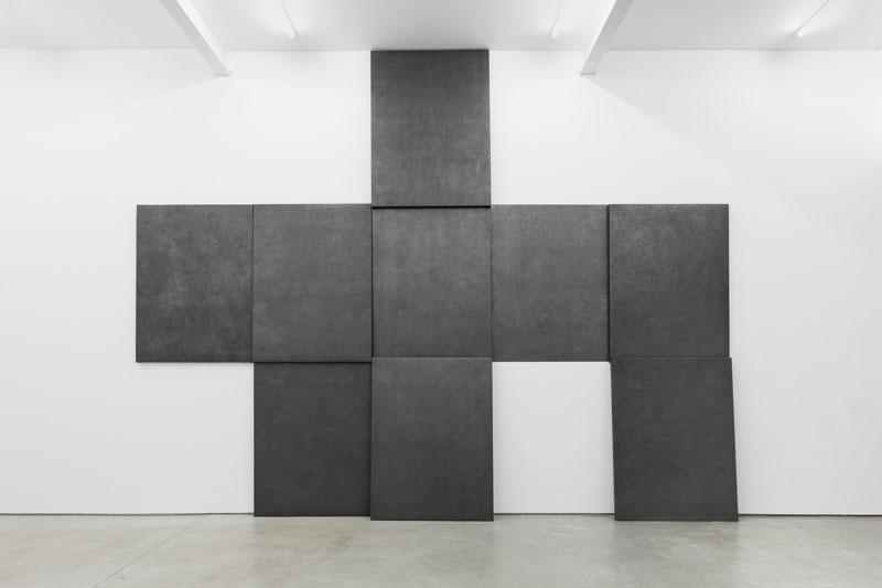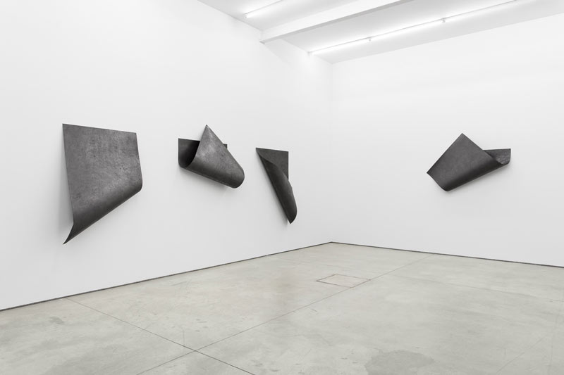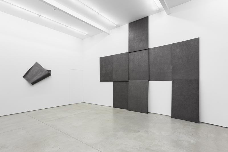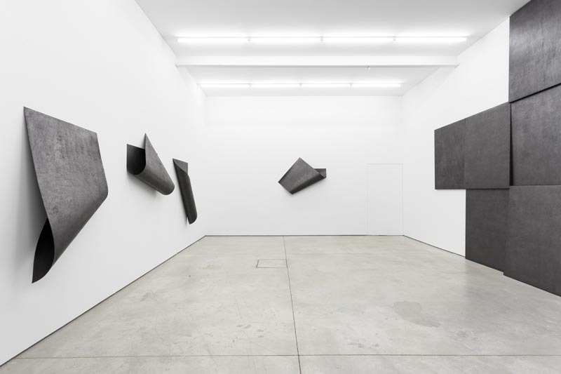 DIOGO PIMENTÃOCollinear BreathGALERIA MÚRIAS CENTENO (LISBOA) Rua Capitão Leitão 14/16 1950-051 Lisboa - Portugal 04 JUN - 26 JUL 2014 Tal como em exposições anteriores, as obras expostas em Collinear Breath revelam uma inquietação permanente em relação à prática do desenho, extrapolando os seus limites e convenções a outras dimensões e processos. Ainda que papel e grafite continuem os materiais por excelência, omnipresentes na prática de Diogo Pimentão, esta supera a simples prática do desenho, num exercício ambíguo e artificioso, que oblitera qualquer fronteira entre desenho, escultura e performance. A entrada no lugar de exposição e primeiro confronto com as obras provoca um momento de tensão e dúvida (acerca do material, acerca do peso, da categorização…), ansiedade apenas resolvida com a observação muito próxima de cada uma das obras. É esta relação de proximidade, intrínseca ao desenho (na sua feitura e na sua leitura), que nos recoloca em posição familiar e nos permite recuperar o fôlego. Agora, a curta distância, são visíveis todas as marcas, traços, sulcos e incisões, resultado do compromisso e esforço físico do artista, da repetição dos gestos e de um profundo e experimental entendimento do material utilizado. Cada inscrição sobre a superfície monocromática do papel reflecte uma determinada acção e um gesto determinado. Todos estes gestos somados compõem a invisível e imaginada performance que conferiu peso e forma a cada uma destas obras. É este processo de realização, o fazer, o elemento fundamental da sua abordagem, demonstrando interesse maior na forma de representação que na coisa representada. À condição ou dimensão minimal dos seus monocromos de grafite, produto também do rigor e imaginário conceptuais de Diogo Pimentão, acresce uma dimensão corporal e de contacto que dotam os seus trabalhos da capacidade extraordinária de aliar uma imediata experiência sensorial (visual e plástica) a uma exigente experiência estética e intelectual. Collinear Breath apresenta dois núcleos distintos de obras. Da série Documented expõem-se quatro peças de parede (grafite e papel) que, num ilusório jogo entre matéria e maleabilidade, contrabalançam peso, fisicalidade e espaço. O segundo grupo de obras, um políptico constituído por papéis engradados como telas (Fascia), encostados à parede num mosaico de frágil equilíbrio, e por um desenho feito directamente na superfície da parede (Between (cognate#1)), evoca diversas referências da história e teoria da arte de forma tão aberta como delicadamente subjectiva. A escolha deste adjectivo - colinear - para o título da exposição reitera a ideia de percurso consciente e determinado na obra de Diogo Pimentão, onde se reconhece essa linha recta comum, intersectando a cada instante os planos do desenho, da escultura e da performance. Andreia Poças [A autora escreve de acordo com a antiga ortografia] ::: Diogo Pimentão (Lisboa, 1973) vive e trabalha em Londres.