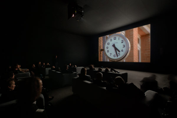 CHRISTIAN MARCLAYTHE CLOCKMUSEU COLEÇÃO BERARDO Praça do Império 1499-003 Lisboa 05 MAR - 19 ABR 2015 O que distingue uma obra cinematográfica de uma instalação vídeo? Não é o suporte, nem a utilização de material de arquivo, tão comum em documentários; será a duração? Se este factor não é por si suficiente para fazer essa distinção, é sem dúvida um elemento a ter em conta. Jacques Aumont [1] considera (baseando-se em outros autores) que o cinema tem dispositivos formais próprios que permitem ao espectador concluir que está a ver um filme; nomeadamente os pontos de vista da câmara ou a narrativa. O que dizer então de uma obra que têm inúmeros registos de diferentes pontos de vista ou reune variadas narrativas? The Clock (2010) tem a duração de 24 horas em tempo real e a sua exibição em sala de cinema comercial é, se não impossível, de uma complexidade tão grande que dificilmente um distribuidor teria tamanha ousadia. Mesmo a sua apresentação em galerias de arte ou museus, sempre mais permissivos com os limites dos objectos artísticos que exibem, não é de todo fácil. Esta obra tem uma componente informática que lhe permite estar sempre certa com as horas reais da cidade onde está a ser exposta (tem cinco cópias em distribuição de um total de seis, cada uma estará certa com o seu local de exibição). Todo o filme é como se fosse um relógio em si mesmo: estamos sempre a vê-los dar horas ou personagens a observá-los sejam de parede ou de pulso ou até de bolso. O trabalho de montagem é exímio e cria continuidade através dos diferentes filmes, jogando com a nossa “suspension of disbelief”, mesmo se sabemos o que estamos a ver. As imagens não são manipuladas, mas o som é. A montagem sonora cria uma linha narrativa contínua, subvertendo o som do material original e alterando muitas vezes o sentido do excerto que estamos a ver, num processo de apropriação cheio de humor e ironia. Os excertos têm frequentemente pouca resolução, mas tal como nos abstraímos dos relógios e da contagem obsessiva do tempo, também nos abstraímos da qualidade física da imagem. Num texto publicado no Público de 6 de Março, dá-se conta de todo o processo: a recolha de material foi efectuada através da internet; Marclay acredita que não é necessário pedir os direitos de autor das imagens, pois os detentores desses direitos só se insurgem se a obra onde são incluídas as imagens for de alguma forma ofensiva e não tiver qualidade. Falta mencionar que a ser feito o pedido de direitos, o eventual pagamento pela cedência de tamanha quantidade de imagens certamente impossibilitaria a existência da obra (mesmo que houvesse lugar a cedências gratuitas e a imagens já no domínio público). Claro que é mais fácil e menos oneroso retirar as obras da internet, mesmo com pouco resolução do que pagar os direitos e passar por todos os trâmites burocráticos. Afinal, na era do HD e da hiper definição, que charme tem uma imagem com grão. Os excertos dos filmes contidos em The Clock são de variadas origens e com diferentes durações, e voltamos ao mesmo filme sempre que o artista o entende. Há sequências temáticas em diferentes fragmentos como por exemplo por volta das 16h30 vários filmes mostram personagens femininas a retocar a maquilhagem e a pôr perfume, seguido de uma sucessão de filmes de guerra. Existe em toda a obra um aumento da tensão ao aproximar da hora certa e uma descompressão imediatamente após, o que cria picos que guiam emocionalmente o espectador, jogando com o desfecho, que dificilmente veremos, mas pelo qual ansiamos. Aqui Marclay maneja muito bem as questões que já Jauss levanta na sua obra “Literatura como Provocação à Teoria Literária” [2] e que seria a obra base da estética da recepção: de que o espectador leva para a sua interpretação da obra (ou o seu visionamento neste caso) o seu horizonte histórico de expectativas. Também Aumont foca esta questão chamando-lhe sistema de expectativas. Ora aqui o nosso horizonte de expectativas não é o conhecimento do mundo, mas sim o conhecimento efectivo que temos de determinadas obras com que Marclay nos confronta e com cujos reenquadramentos narrativos nos espanta ou frustra. Sente-se aliás algumas agitações entre os expectadores durante este ou aquele trecho, indicando as diferentes afinidades de cada um. Marclay assume as diferenças entre filmes como apenas um apontamento transversal ao processos de montagem cinematográfico. Segundo Gilles Deleuze [3], é a montagem que transforma a imagem-movimento em imagem-tempo. É à montagem que incumbe determinar a duração. Ela dá uma imagem indirecta do tempo. É a determinação do Todo, da Ideia. The Clock é uma homenagem ao processo de montagem e por isso ao cinema. Não porque seja uma obra erudita na sua assumpção de cinematografia, mas sim porque replica um dos trabalhos mais emocionantes de um filme, a sua última escrita, a montagem. O trabalho de Marclay é como um puzzle, montando as peças, experimentando a ver se encaixam. Casablanca pode estar a seguir ao Regresso ao Futuro, porque para Marclay mais do que filmes, são matéria. São como papéis que ele recorta e cola como lhe apraz. Como diz Helmut Lang na Artforum de Janeiro “There is no reason to be blocked by material.”