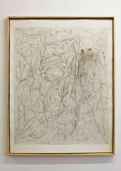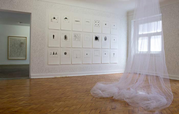 Encontram-se vestígios de ossos, penas, linhas que lembram ampulhetas e resquícios de cabelo, entre outros motivos que aludem para o conceito de "vanitas". Sente-se uma ideia de desconstrução do corpo que remete para a efemeridade da vida. Nas paredes deparamo-nos com insectos desenhados a grafite por José Barrias e que surgem como intrusos. A expressão plástica utilizada por este mantém a crueza do desenho, eliminando vestígios de textura e cor, mantendo o estigma do inacabado. São também cobertas algumas paredes com garatujas infantis que não superam as obras expostas, sendo apenas um elemento de distracção da verdadeira essência da exposição.