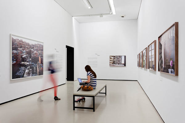 Começar a exposição com as primeiras fotografias sobre a Nova Iorque dos anos 30, a obra desenvolvida principalmente pela fotógrafa norte americana Berenice Abbot, não podia ser um feito anedótico. A fotógrafa, que chegou a ser assistente de Man Ray e de Eugene Arget na Paris dos anos 20, começou a deslizar o seu olhar pela identidade dos espaços através das suas construcções, a arquitectura como um signo dos valores de um lugar e o seu reflexo na sociedade. A exposição “Construyendo Mundos”, que nestes dias podemos contemplar na Fundación ICO em Madrid e até 6 de Setembro, é uma das mostras referência da 18ª edição da Photoespaña. Os espaços e a mão do homem, através principalmente da evolução arquitectónica no século XX e XXI, são um reflexo do devir da ideologia e da ideia de progresso e desenvolvimento. A evolução do capitalismo a um capitalismo financeiro é outro referente, o trespasse dos eixos do poder e seus efeitos na depressão das cidades, outro espelho. Fazer um percurso pelas salas também é fazer um percurso cronológico. Os autores compilados são de uma enorme transcendência: Walter Evans, Lucien Hervé, Bren e Hilla Becher, Hiroshi Sugimoto, Thomas Struth, ou Andreas Gursky, só para nomear alguns dos eleitos nesta selecção de olhares. Nesta mostra o curador da exposição (The Barbican Center em Londres) quis reflectir a evolução do tempo moderno, a relação entre a arquitectura e os valores que a seguram, mas não apenas essa referência, também a evolução através do olhar do fotógrafo desde uma visão fascinada do objecto, como no caso de Abbot, a um olhar totalmente crítico com o objecto e as suas consequências, como é o caso do jovem fotógrafo Iwan Baan. São várias gerações de autores, em quase 100 anos de vida, que captaram as linhas heterodoxas ou ordenadas dos edifícios com um sentido que está mais além do evidente. O urbanismo coloca-nos muitas perguntas para lá da própria fachada. Slavoj Žižek, numa das suas intervenções em 2009, no The Birkbeck Institute for the Humanities em Londres, o discurso que deu sobre Arquitectura e ideologia, voltava a mostrar como o imaginário identificado por um determinado estilo respondia claramente a uma ideologia. Eram claros os exemplos do neoclassicismo hitleriano ou a própria construção classicista de Stalin, longe da mais revolucionária construtivista dos primeiros impulsos renovadores da revolução soviética. Žižek expressava em “Eles não sabem o que fazem: O sublime objeto da ideologia” (1989), a essencialidade da ideologia, que nunca mente e como que se introduz em nós consolidando a ideia de hegemonia (poder) que um grupo dominante tem frente ao resto. A ideologia, como parte essencial da construcção da hegemonia, é a forma de pensar sobre algo. Desenvolve-a desde a ideia de “point de capiton” (ponto de acolchoamento) [1] de Lacan. A ideologia, para sintetizar, responde já não a um significado claro que contém um significante (rompe desta forma o sentido fechado de Saussure), antes o significante move-se num campo aberto, não clausurado. Referenciamos muitos significantes, ou podemos desde muitos significantes, ou formas, criar um significado. Retomando as ideias de Lacan, Žižek percorre a importância das metáforas e das metonímias, ou seja, o conjunto interrelacionado de significantes (de formas diversas) que podem chegar a identificar algo (dotá-lo de um significado) não com um só nome disponível (o significante, ou forma), antes com o nome de outra coisa ou coisas. Perdeu então o seu significante primigénio para lhe somar mais formas ou significantes ao primeiro significante. Michel Foucault desenvolve o seu pensamento sobre os pilares de poder e hegemonia, e sob a ideia da multipolaridade a partir de onde se exerce esse poder, dota de enorme importância um dos polos desse campo multipolar: o espaço [2]. Os espaços também são lugares de onde se expressa o poder. Claro que a urbe, a arquitectura ou as artes são contextos onde a hegemonia se expressa, de forma provavelmente não tão evidente, mas por essa mesma razão, mais eficaz. Os arranha-céus ou as grandes torres de vidro, ou os grandes centros comerciais e de congressos, hotéis, costumam localizar-se em centros económicos ou em espaços onde a transacção económica (o valor do capital) está mais visível. Não é inocente encontrar interessantes ou chamativas propostas arquitectónicas em espaços que se identificam com o progresso material, como aeroportos ou estações ferroviárias de alta velocidade. Dotar, portanto, de significado uma forma, ou melhor, aplicar-lhe uma ideologia (um campo de ideias preestabelecidas) que se identifica com um poder hegemónico, não tem que ter um letreiro clarificante para que possamos entender (sob uma percepção metafórica, ou metonímica) que é a expressão de um tipo de progresso que funciona, “o capitalista”. A relação do significante e o significado, como vemos, não é conclusiva, é um contexto de relações que nos predeterminam de alguma maneira a identificar a ordem económica imperante como “positiva” através de um ou mais dos polos. A exposição mostra isso, mas também e mais interessante, o sem fim de ramificações que o significante (o espaço) gera nos nossos sentidos e as contradições do “progresso” ou “desenvolvimento” que se reflectem nessas formas. Também, como reage o ser humano perante essa ordem, ou perante as mudanças, na relação com espaços arquitectónicos que supuseram, em muitos casos, uma contradição à tese antes mencionada, a lógica do progresso. É destacável o trabalho do fotógrafo sul africano Guy Tillim e as suas fotografias de edifícios que constituíram na sua época um exemplo de hegemonia e progresso (os exemplos de desenvolvimento africanista na nova arquitectura dos anos 70 em Moçambique) e actualmente de crise e caos humano. Nessas co