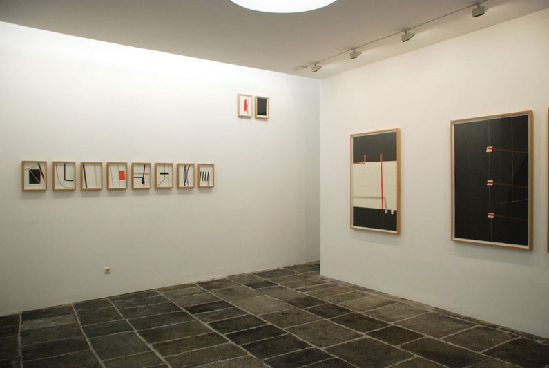 Na segunda exposição do artista no Arquipélago dos Açores, o trabalho artístico gravita em torno da exploração da recta, para além do jogo de formas quadrangulares e rectangulares, oferecendo um conjunto de declinações dispositivas, intensivas e cromáticas. O respeito da tradição da pintura e da divisão disciplinar das práticas artísticas gera, na obra de Loureiro, um trabalho aprofundado e consequente das superfícies, constituídas ora por tela ora por papel, exercício que corresponde, na sua pesada simplicidade, ao contributo do artista, voluntário ou impensado, para a disciplina que elegeu como sua. A procura de Loureiro não se adequa a qualquer finalidade programática (ou não fosse o seu mais recente manifesto, Sinapsismo [1], percorrido por uma ironia fina), visando antes encetar uma busca quase interminável - ou não existisse a morte - tendo em vista um equilíbrio tão precário quanto produtivo. Trata-se de compor uma tela para descortinar um universo: “Vejo o processo de pintar como o abrir de um conjunto de cortinas: vamos tentando chegar a qualquer lado, mas o mais interessante disto tudo é não chegar a lado nenhum.” O percurso de José Loureiro corresponde à própria definição de vocação: “Nunca me passou pela cabeça usar outro tipo de médium. É absolutamente suficiente”. Essa certeza que queria ser pintor, afirmada desde uma decisão primeira, sedimentada pela prática e fundadora da própria possibilidade de produção artística, soube resistir à tentação do multimédia e à estigmatização da pintura que vigorou na última década do século XX. “Existiu uma grande pressão; existiu e há uma grande má vontade em relação à pintura. Acho isso idiota e absurdo, nunca me atemorizou”, declara, assertivamente. A minúcia do pintor está patente nos equilíbrios que cada desenho engendra, sendo retomado, nesta ocasião, o motivo da grelha, caro ao artista desde o início dos anos noventa – vejam-se as suas palavras cruzadas em grafite e guache, reinventadas e transformadas até 1995. Sensivelmente nesta altura, os círculos surgiam como nova obsessão pictórica, motivo trabalhado e pensado extensivamente, chegando-se à utilização de papel vegetal arquitectónico para melhor calcular estratégias de autonomização dessas formas, de afirmação pura da sua representação e dos espaços de indeterminação que produzem, sem qualquer pretensão de fazer apelo a outra disciplina que não a pintura, essa que é, para o artista, o único palco onde os confrontos e as tréguas se materializam. É que, na sua actividade, são as formas e matérias que surgem e pedem resolução. Face às leituras eróticas a esferográfica de 1990, aos objectos parcelares que se saturavam em naturezas mortas povoadas por manchas pastosas, à apropriação de iconografia popular e pop na qual a mão era novamente chamada a pronunciar-se, a pintura actual de Loureiro dá-se sob a forma de linhas rectas ou riscas, termo que lhe é particularmente caro: “linhas, riscas, gosto muito da palavra risca. A risca é suficientemente complexa, sem querer dar um ar muito complexo à palavra complexa, mas é suficientemente rica para se estar toda a vida a trabalhar nisso”. O óleo, material régio da sua actividade, dispõe-se em composições que se pretendem o mais bidimensionais possível, lembrando que, em tempos idos, esse foi o móbil que sustentava a possibilidade de uma pintura pura. A justificação das virtudes do óleo tem também, para Loureiro, uma dimensão inerente à prática: “Nunca é necessário rasgar uma tela, pode-se sempre sobrepor até ficarmos satisfeitos. Tem essa vantagem, a de se poder sobrepor, para além de se poder apagar infinitamente uma tela, que se torna, quase, um suporte infinito”. Recorda, a título de exemplaridade, a pintura que fez em 2005, em Sines, completamente transformada quinze dias antes de uma exposição na Capela da Misericórdia, deixando a obra em desadequação com um texto que João Miguel Fernandes Jorge tinha escrito para o evento. Desadequada, nunca inutilizada, porque esse texto encontra a sua pertinência na pintura submersa pela composição final. A pintura primeira fica assim salva, invocável por palavras que a testemunharam: “O que ficou escrito foi sobre o que ficou por baixo” [2]. 3ª Feira, dia de Natal, é acompanhada por um excerto da obra O Bosque (2015) de João Miguel Fernandes Jorge, não porque estas telas se imponham como comentário a qualquer outra produção artística, não porque uma exposição seja redutível a um título, ou porque a pintura pudesse ilustrar uma teoria ou manifesto, mas porque elas visam, como a poética das palavras, do papel maculado ou do pigmento aplicado, fazer apelo a algo próximo do que se propôs outrora sob o signo do Belo: a experiência e registo de modalidades de existência, a materialização de procuras, a dignificação imanente ao gesto artístico. Pintura e desenho são essas vias paralelas nas quais Loureiro enceta a interminável procura de uma mesma substância, inesgotável, inexaurível, que, sem se prestar a uma captação definitiva, deixa o campo do diálogo em permanente espera para novas investidas - desafio que Loureiro aceita, fazendo apelo à sua via de constituição de mundos: pintar.