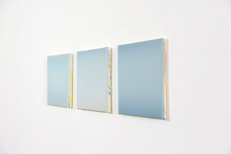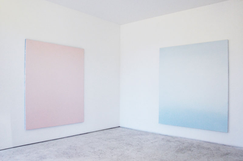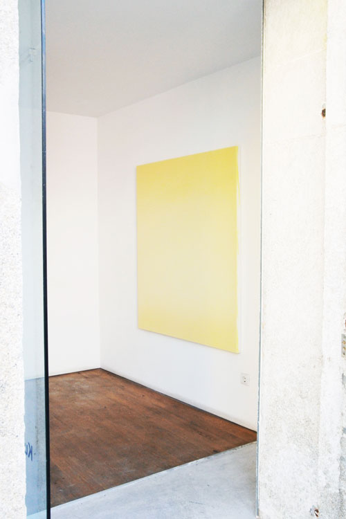 Observando-as separadamente, verifica-se como a variação dos formatos entre cada pintura proporciona impressões e experiências distintas. Aquelas que apresentam dimensões mais reduzidas detêm uma maior característica de objetos pela relação que, fisicamente, estabelecem com o espetador. Em relação às maiores, uma delas chegando a alcançar os 200x170 cm, mostram-se avassaladoras e interpelam quem as contempla com uma força que prendem o olhar e a atenção. Não obstante, apesar destas variantes, todas comunicam entre si e são cativantes e sedutoras. As paredes brancas da Kubikgallery e o seu percurso labiríntico parecem conferir o envolvimento necessário às obras do artista, não permitindo que estas se percam no espaço. Cada peça pode ser devidamente observada e sentida, sendo que as cambiantes cromáticas que compõem todo o trabalho são transmitidas de forma harmoniosa, através de uma simplicidade na escolha da cor e subtileza na variação do tom. O efeito que a obra induz no olhar é o mesmo que ocorre com a luz e a cor, sendo estes dois elementos e duas grandes forças que movem o artista. Nesta medida, as pinturas de Sérgio facilmente podem assemelhar-se a registos de luz. Através da tinta e da tela, vê-se produzido aquilo que Wolfgang Tillmans concebe no seu trabalho mais recente [1]. Entre estes dois artistas há uma certa proximidade nos resultados visuais que nos suscitam e na sensibilidade da produção artística. Contudo, os autores distinguem-se claramente na motivação que os conduz e no meio que utilizam. Tillmans, como a maior parte dos artistas que procura captar a luz e a sua manifestação através da cor, utiliza a fotografia, o mais fiel modo de captação. Apesar disso, a pintura é uma prática artística que sempre procurou expressar esse mesmo elemento tão importante e que constitui toda a imagem. É pela escolha deste caminho e na sua dimensão mais abstrata, que Sérgio prova a possibilidade de trabalhar a luz de modo singular e exímio. O seu trabalho é, precisamente, um exemplar de pintura abstrata, no qual pode ser sentida uma aproximação à obra de Rothko, influência que o jovem artista assume e com quem partilha a valorização da cor sobre a ideia de qualquer registo do real. Posto isto, Sérgio apresenta, de modo inovador, uma espécie de luz pictórica, um produto da sua imaginação despoletado pela observação da luz e da cor. O resultado é, por tudo isto, especial, singular e valioso. Também particular é a forma como se apresentam as telas. Estas, suportes que concedem às peças o caráter tridimensional de completos objetos artísticos, apresentam nas laterais o rasto das tintas que assinala o fim do gesto do processo de produção. Deste modo, manifesta-se um vestígio da ocorrência, do momento da ação e cada peça contém uma inscrição do seu próprio tempo. Em relação às pinturas em papel, diferenciam-se pelo que suscitam no espetador. Através de margens brancas que se aproximam de uma ideia de molduras, podem ser interpretadas como janelas para a criação artística de Sérgio, para o mundo do artista, do seu imaginário, talvez até do seu sonho. Esse caráter onírico que se revela acompanha, na realidade, toda a exposição. O encantamento das peças, da relação entre cada uma e as que a precedem e sucedem, manifesta-se quase como poesia ou música. Em simultâneo, as emoções do espetador são despertadas. A cor contribui para isso mesmo, pois não é só uma impressão provocada pela luz quando se reflete nos corpos, mas também estimula reações, sentidos e emoções. Algo que esta obra potencia ao explorar a cor deste modo tão sólido e consistente. O artista explica o seu trabalho [2] numa dimensão mais profunda, como fruto da sua condição no mundo, a qual se resolve na pintura. É através do suporte, do óleo e da aguarela, que, nas várias obras, o artista expande a sua existência. O trabalho emerge, assim, como um reflexo da sua vivência ou, até, como uma extensão dele próprio, manifestando-se através de um resultado que, suscetível de múltiplas interpretações, facilmente se relaciona com o espetador, este último convidado a fazer parte de uma plena experiência sensorial e estética. E se, como Sérgio acredita, a pintura, no seu estado mais pleno, é o inefável, podemos também entender esta Solitude como um estado onírico ou transcendental. Como uma oportunidade de, por instantes, abandonarmos a nossa realidade física e nos deixarmos ir, nesta contemplação, para uma outra esfera do mundo e de nós mesmos. É esta particular possibilidade que, para além de conferir imenso valor a cada pintura, torna a exposição tão cativante e importante de ser visitada.