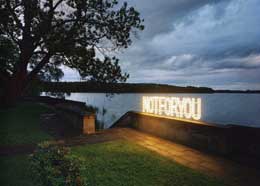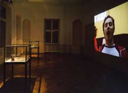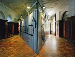 COLECTIVAThree Colours – BlueGROß LEUTHEN 09 JUL - 10 SET 2006 “Three Colours – Blue”, é uma exposição colectiva que ocupa todo o castelo Groß Leuthen situado em Spreewald, na margem de um amplo e belo lago, a cerca de uma hora de Berlim. Esta exposição, é a primeira de uma trilogia inspirada na obra do realizador Krzystof Kieslowsky, “Three Colours: Blue, White, Red”. Kieslowsky desenvolveu esta obra (a última finalizada antes da sua morte) identificando cada um dos filmes com uma das cores do estandarte da Revolução Francesa. As cores, Azul, Branco e Vermelho, significaram para o realizador, a Liberdade, a Igualdade e a Fraternidade. Blue expõe a expressão individual (objectiva e subjectiva) nos diversos graus de relacionamento que cada ser humano tenta estabelecer com outros, independentente da sua condição ou origem e do lugar do mundo onde se encontra. Da forma como podemos ser livres. O conceito da exposição, a liberdade criadora e as suas formas de expressão, transforma-se num dédalo de dialécticas individuais que se confrontam com três premissas fundamentais apresentadas pelo curador: Punição, Vigilância e Proibição; Género e Desejo; Liberdade e Direitos Humanos. O curador Mark Gisbourne atribui um espaço de liberdade às doze propostas que oscilam entre o diálogo com a arquitectura do castelo e do lugar, e o monólogo, em alguns casos menos atractivo, criando situações muito diferenciadas. A instalação de Monica Bonvicini, é um dos momentos em que esse diálogo surpreende. A artista esventra de forma clara e desconcertante o espaço expositivo, libertando-o dos objectos que lhe são apropriados, as obras a expor. A sala que a artista escolheu (com uma janela fronteira ao lago) está liberta. À beira do lago, surge instalado um painel luminoso em que se pode ler, NOT FOR YOU, como uma advertência catalisadora (um aviso?), criando uma situação crítica sobre o espaço e as regras inerentes ao seu uso, e em simultâneo uma chamada de atenção para o lugar onde se encontra a sala, o castelo e a nossa relação com estes. A dupla de artistas, Langlands & Bell, apresenta “Who´s Afraid of Blue, White and Red?, uma obra poderosa e muito eficaz no contexto da exposição. O título, estabelece a primeira marcação dos diversos cruzamentos que vamos encontrar a partir da utilização da linguagem (as cores, as cifras, as palavras). Numa referência directa ao título da trilogia de exposições, recupera simultaneamente a presença crítica de uma outra obra, datada de 1966, da autoria de Barnett Newman, “Who´s Afraid of Red, Yellow, and Blue?”. A primeira aproximação a este trabalho surpreende-nos num dos óculos da fachada do castelo. Uma bandeira exibe cifras e palavras monossilábicas, sobre uma quadrícula azul, vermelha e branca com matizes rosa e cinza denunciando um território. No primeiro andar, a instalação ocupa todo o espaço da sala pintado de vermelho e azul (incluindo as vidraças das janelas) contendo um vídeo de grandes dimensões que sobrepõe sucessivamente cores, palavras e signos, como uma network visualmente activa e veloz que se torna por vezes ilegível, aludindo à profusão dinâmica da informação. Num outro espaço menos óbvio para o visitante, a cave húmida e menos cuidada, Gregor Schneider apresenta desenhos e fotomontagens do projecto “Black Cube”, não realizado como obra finalizada para a última Bienal de Veneza (2005). O projecto não foi autorizado por razões geo-políticas trazendo a concretude da realidade global. Não sendo uma obra nova, confronta o espectador de uma forma directa com o problema da censura da liberdade, e da equidistância, por vezes difícil de determinar, entre a potencialidade criadora, politizada ou não, e a dimensão constritora da política e religião no mundo contemporâneo, na esteira de temas como a vigilância, proibição, liberdade e direitos humanos. Na mesma linha de questionamento e reflexão, “Revolution – Patriotismo”, é o título da instalação de Costa Vece com uma forte presença visual e simbólica. A relação do espectador com esta obra é de ambiguidade e desconforto perante a presença de um muro de chapas metálicas encimado por arame farpado, projectores de vigilância, grafitis, imagens pintadas do autor, como um revoltoso, empunhando uma metralhadora. Uma referência a lugares e vivências ligados a questões como a imigração, a exclusão e a revolta, a indignação frente à indiferença e ao desenraizamento. Aqui a palavra é utilizada com uma mensagem simples e directa, um apelo ou uma exortação, num dos lados da instalação pode ler-ser a seguinte frase: we never forget. Vasco Araújo, apresenta o vídeo “Far de Donna” e duas vitrinas da série “L’Inceste”, conseguindo uma montagem perfeitamente integrada na arquitectura e ambiente do castelo, mas apartada das normas tidas como convencionais, num subtil desafio aos códigos morais que não excluem figuras como o licencioso, o libertino e a consciência de que a liberdade é um material inadaptado à forja das convicções morais estabelecidas. Se as duas vitrinas iluminam o pecado do incesto, “Far de Donna” é o alçapão sem fundo. A narrativa apresenta um jovem rapaz que descobre uma potencialidade particular na voz, alto tenor, como um Castrati. Nesse momento da sua vida, a sua mãe reduz-se na sua potencialidade humana ao perder a voz, amputação maior que a privará da linguagem pela palavra, pelo som fonético que pode ser apenas um som de desespero ou um esgar de amor. Um deles torna-se o espelho e o outro a imagem que que lhe dá o sentido pela visualidade. A difícil construção da identidade está aliada a um sinal subtil e discreto sobre os diversos rostos da vulnerabilidade a que somos sujeitos. O tempo e a memória, o desejo e a sobrevivência estão presentes na obra, “survivor (at the lake)”, de AK Dolven, que estabelece uma rel